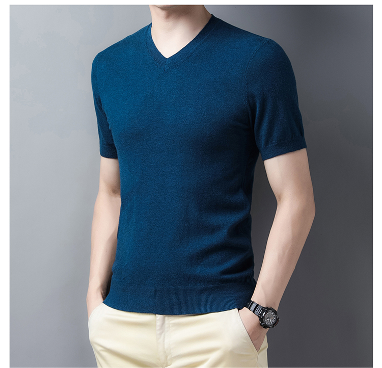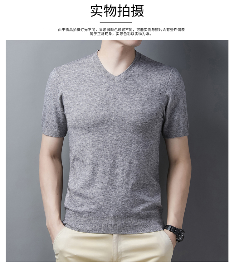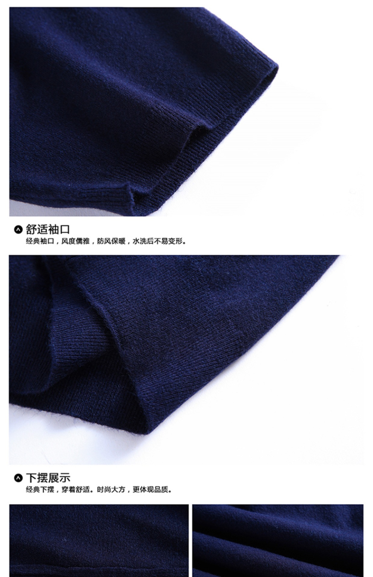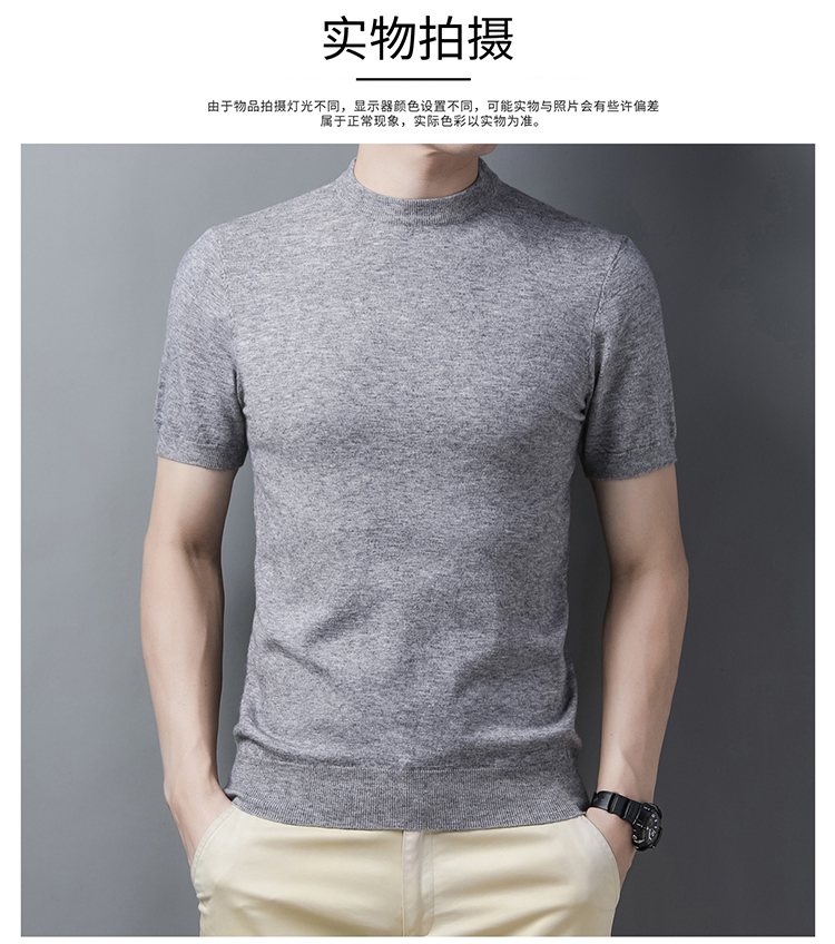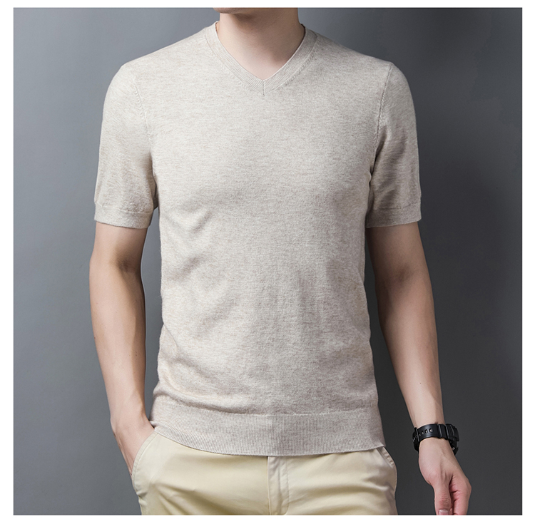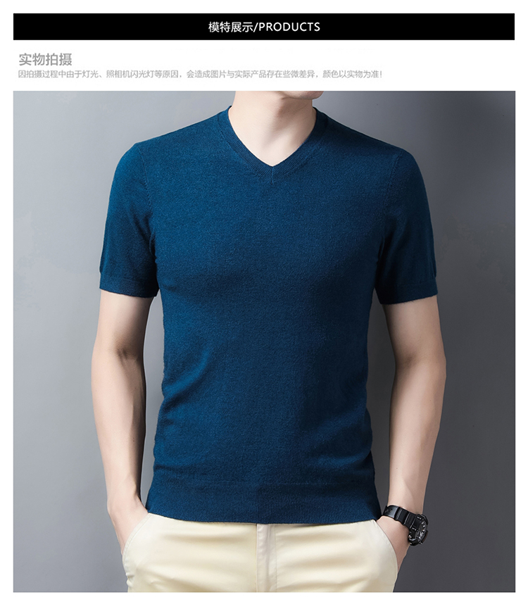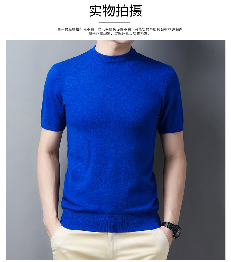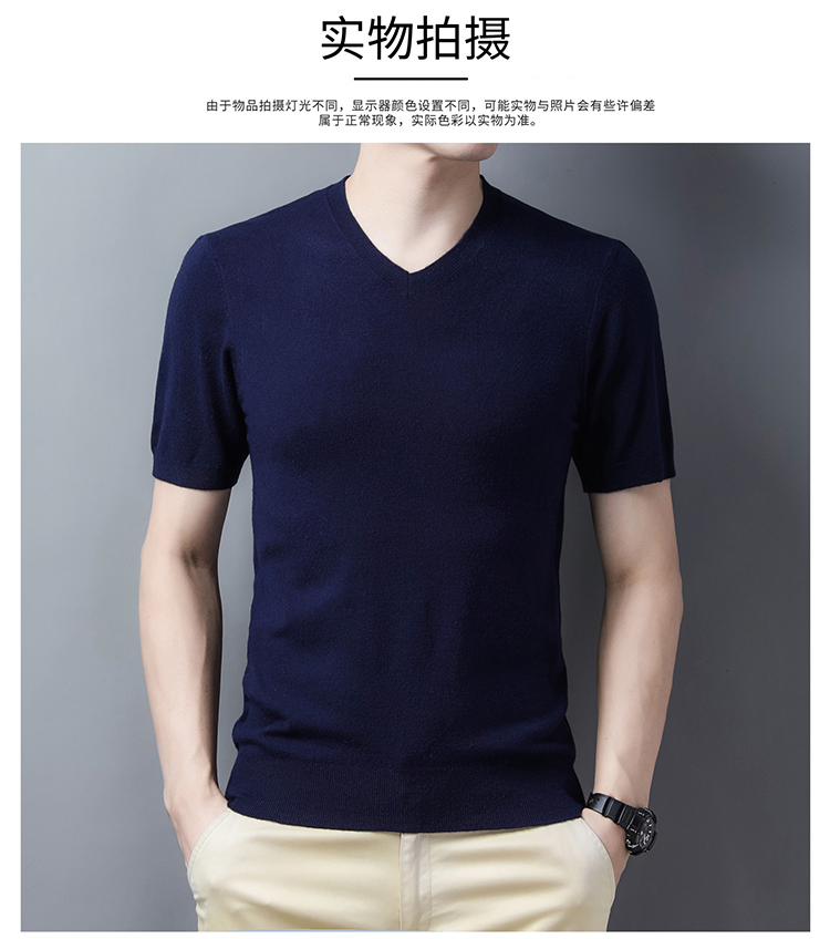 鄂尔多斯市100%羊绒衫男半袖针织打底衫春季中青年韩版套头羊毛衫