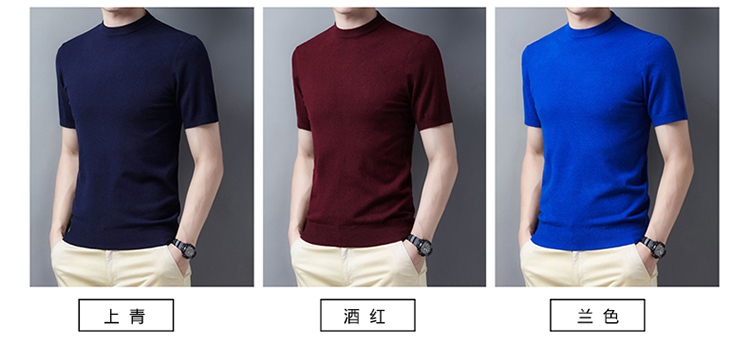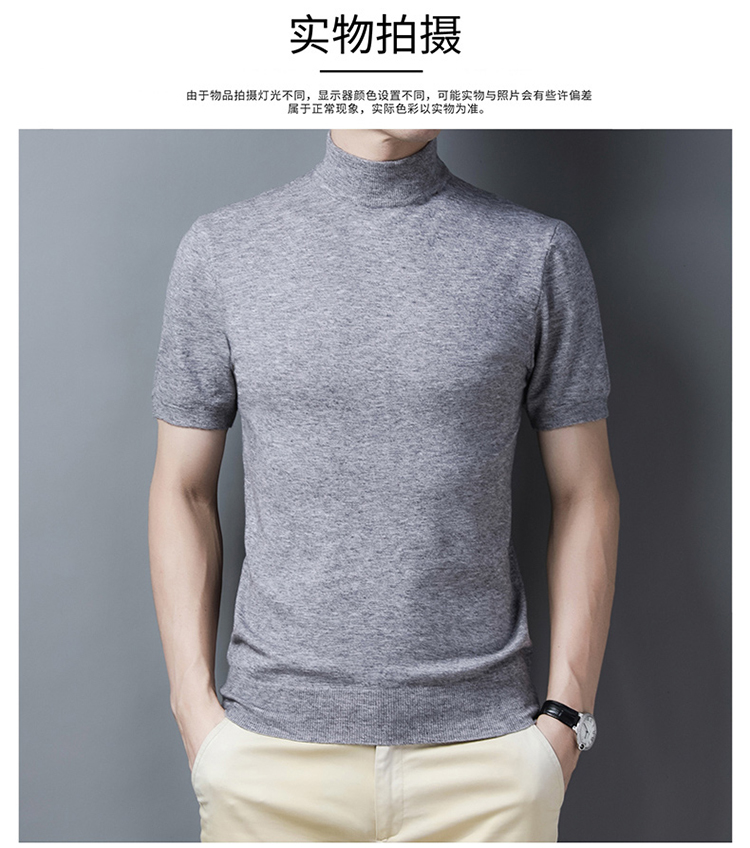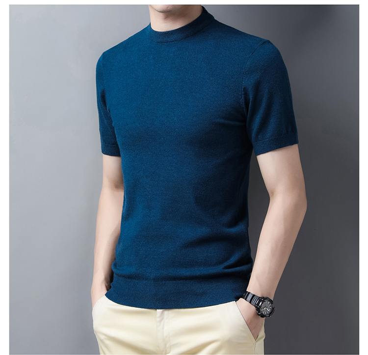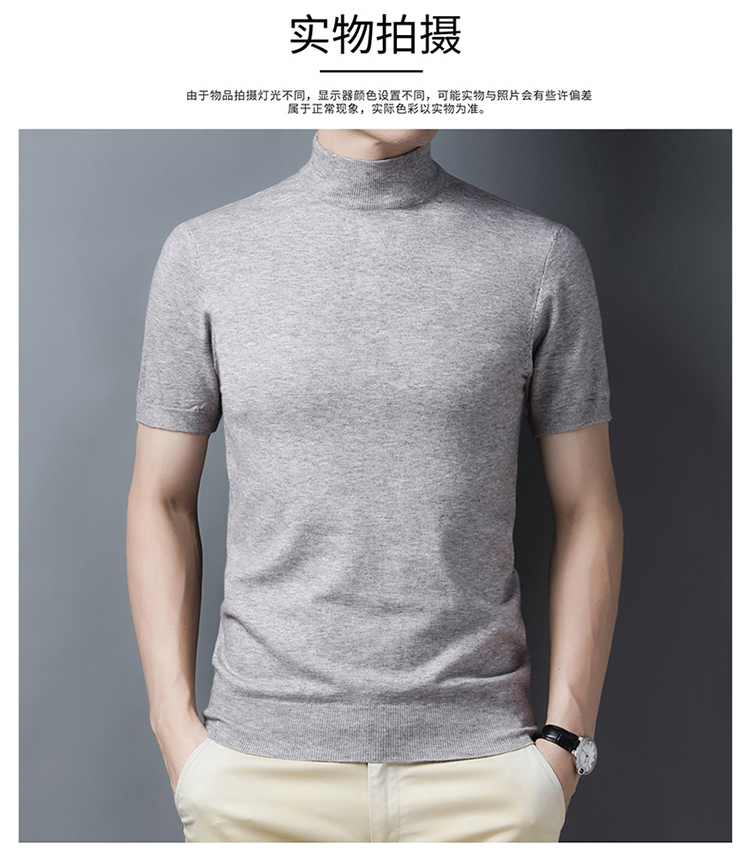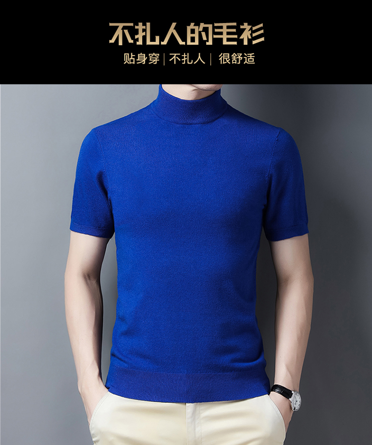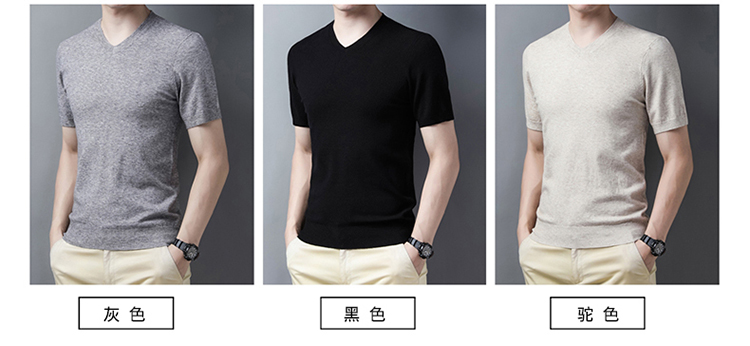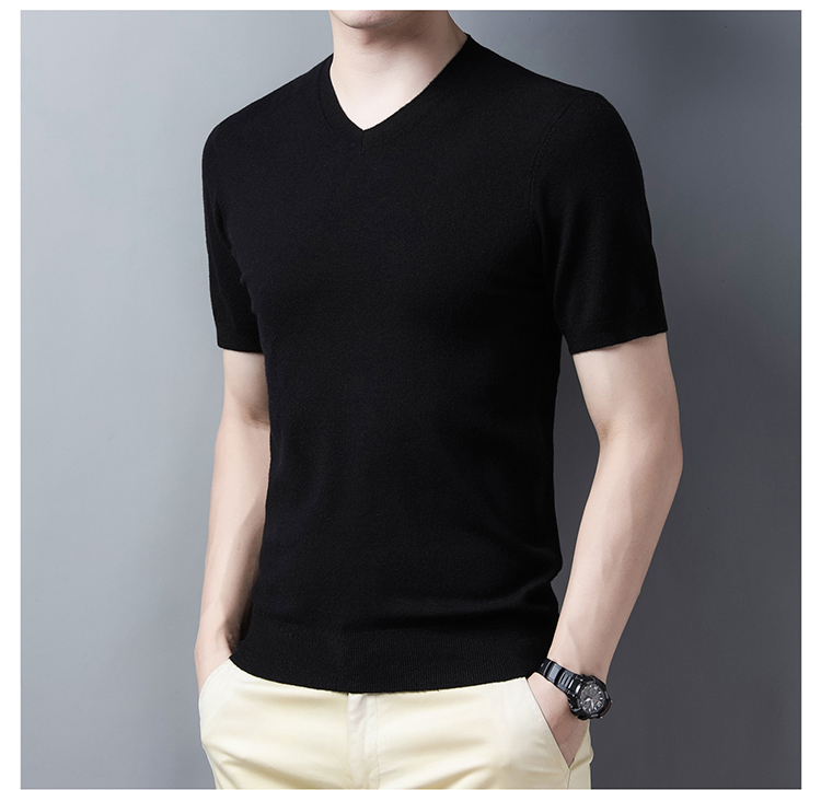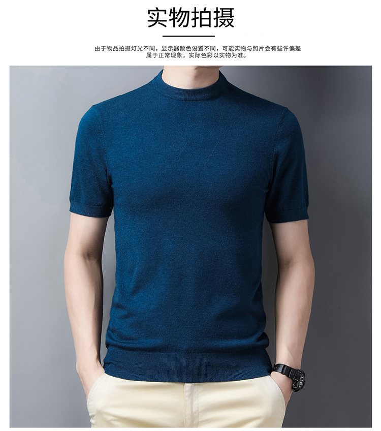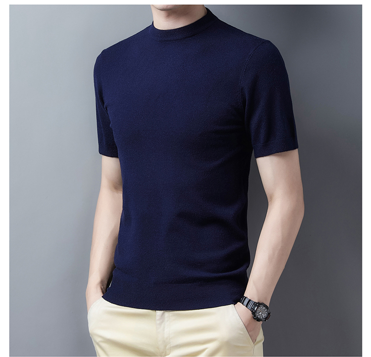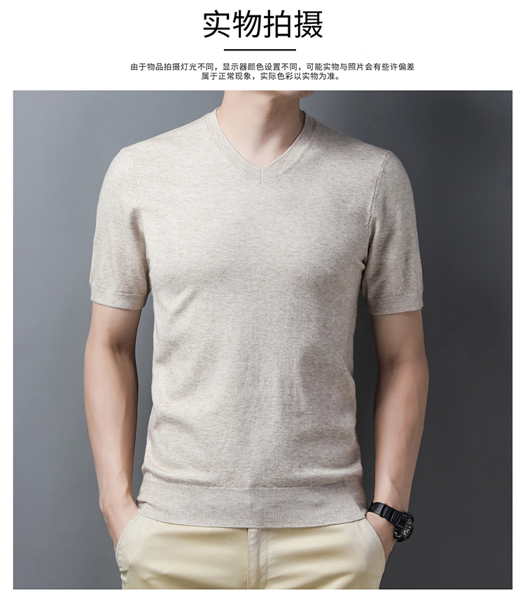 鄂尔多斯市100%羊绒衫男半袖针织打底衫春季中青年韩版套头羊毛衫