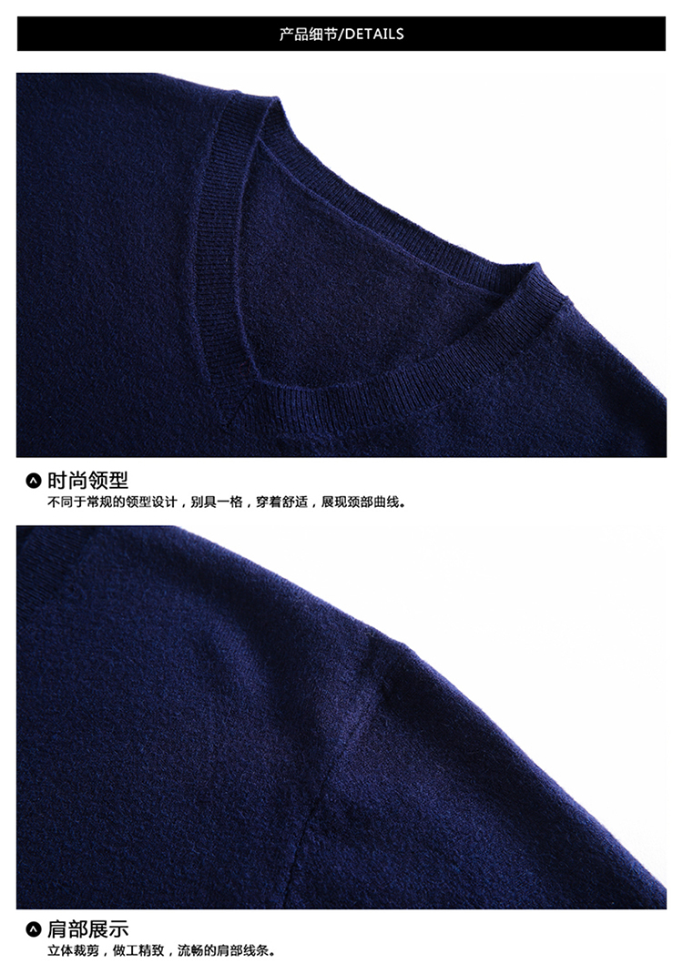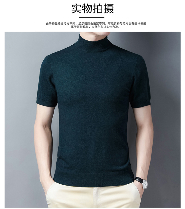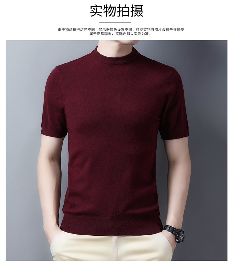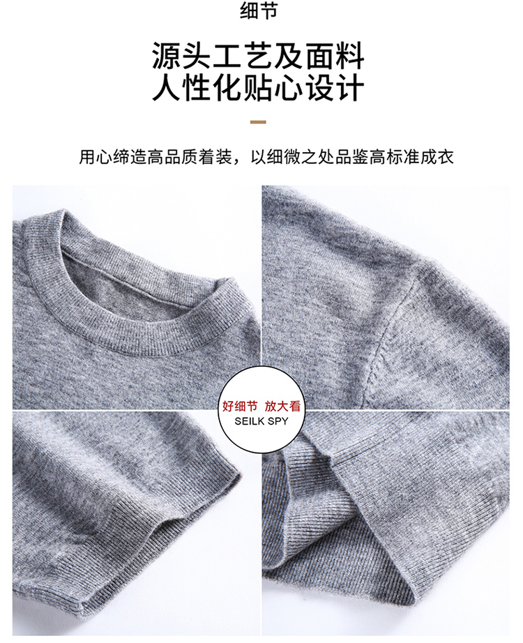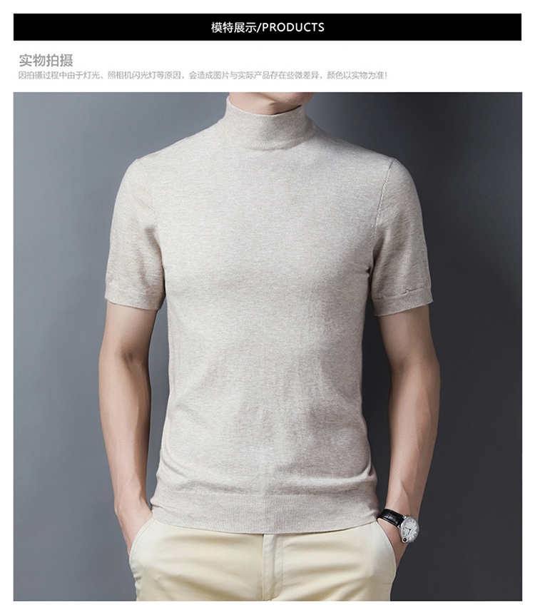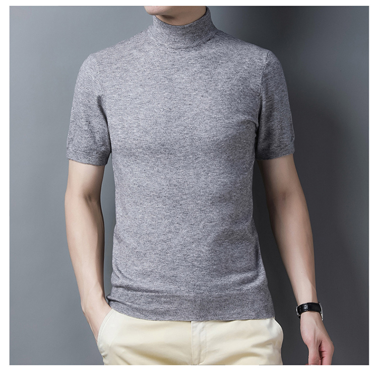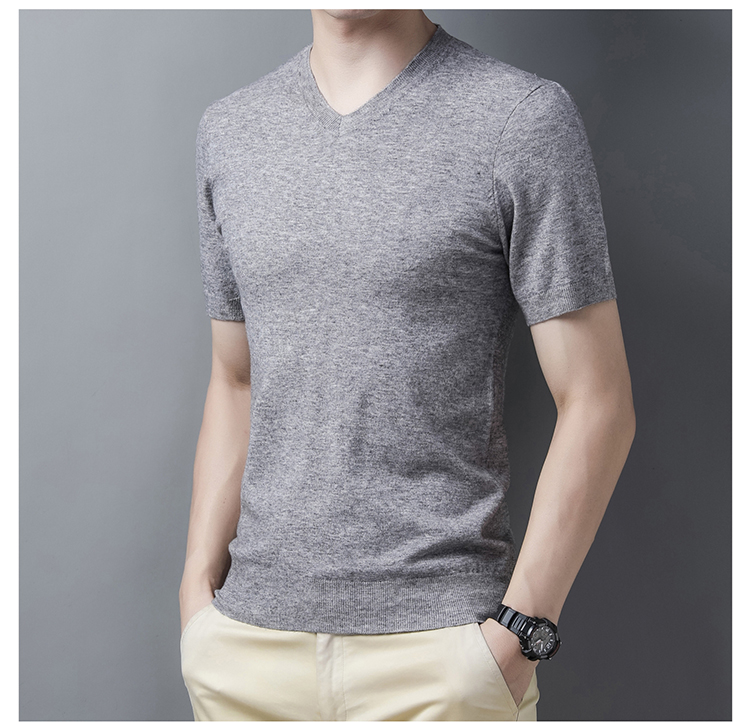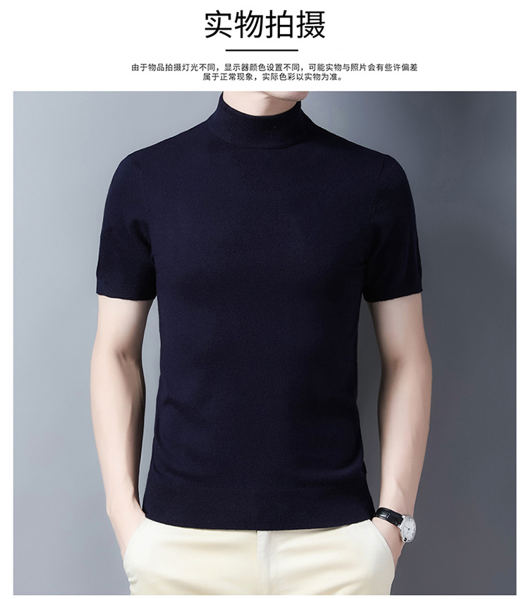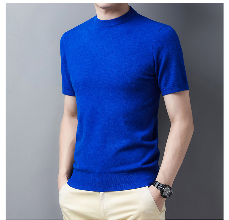 鄂尔多斯市100%羊绒衫男半袖针织打底衫春季中青年韩版套头羊毛衫