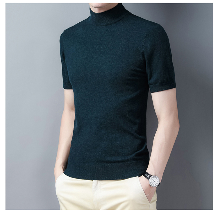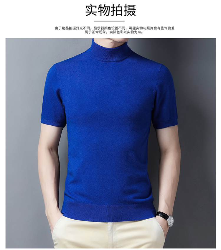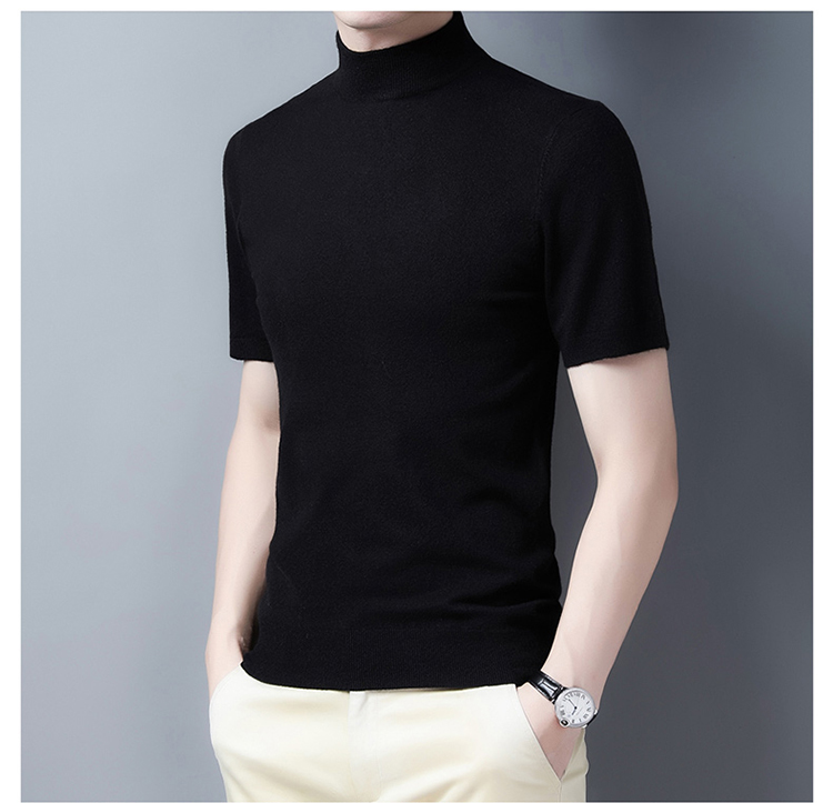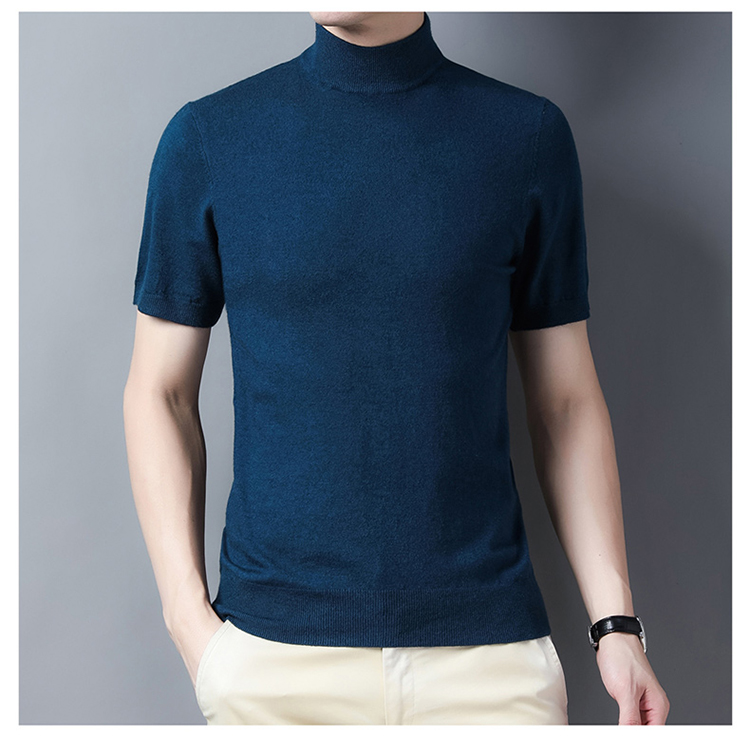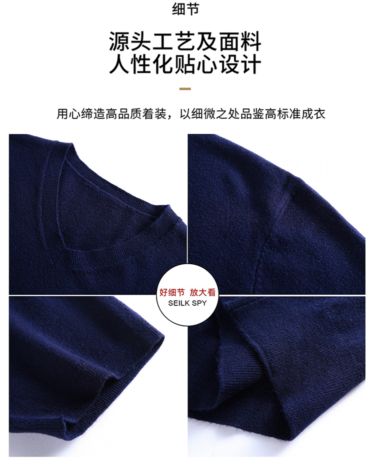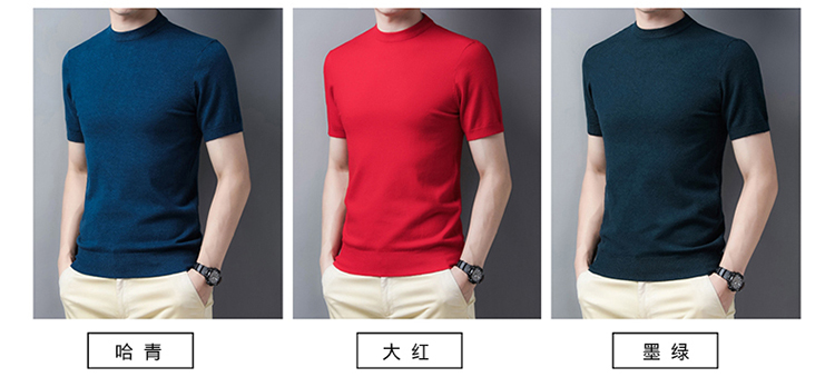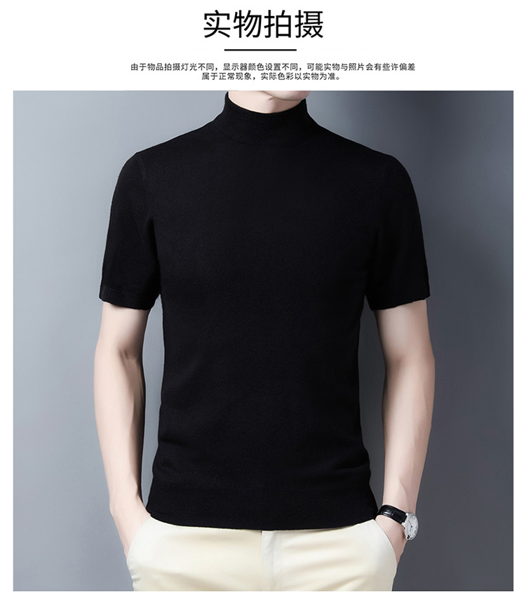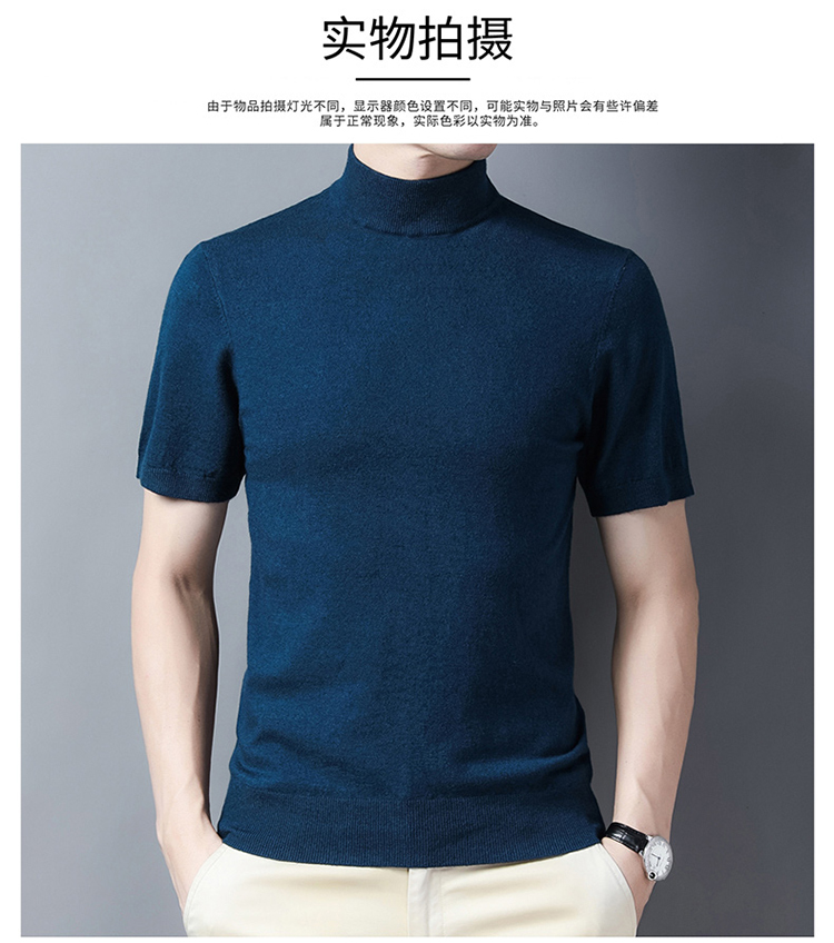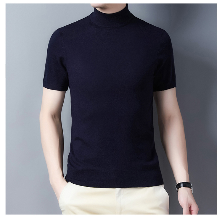鄂尔多斯市100%羊绒衫男半袖针织打底衫春季中青年韩版套头羊毛衫