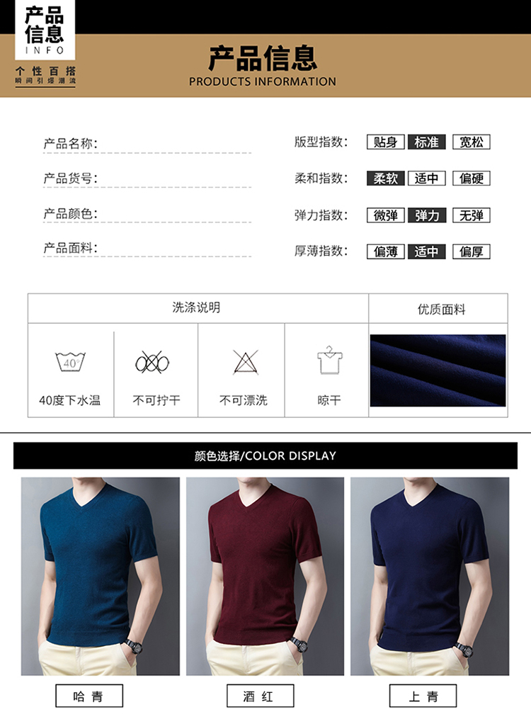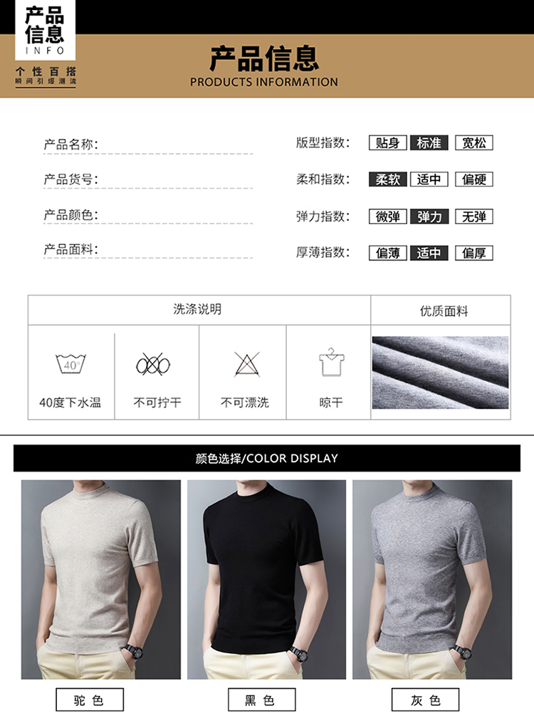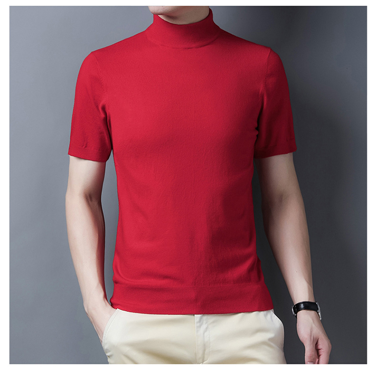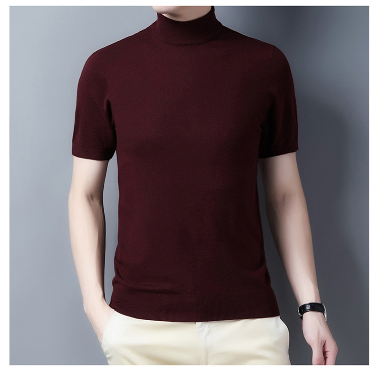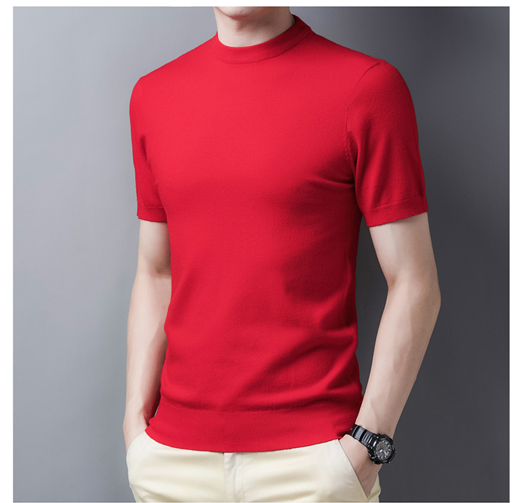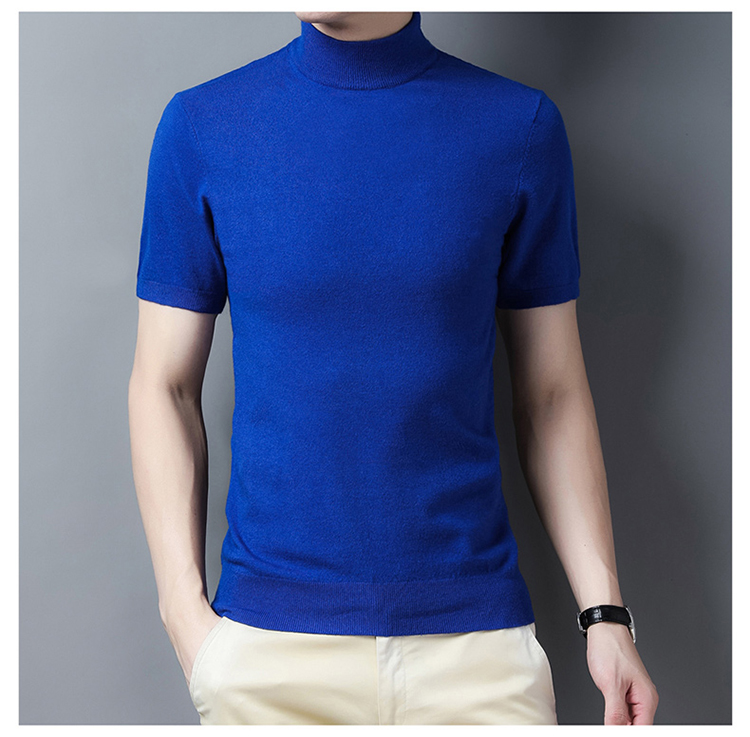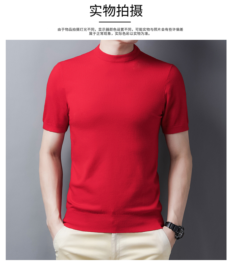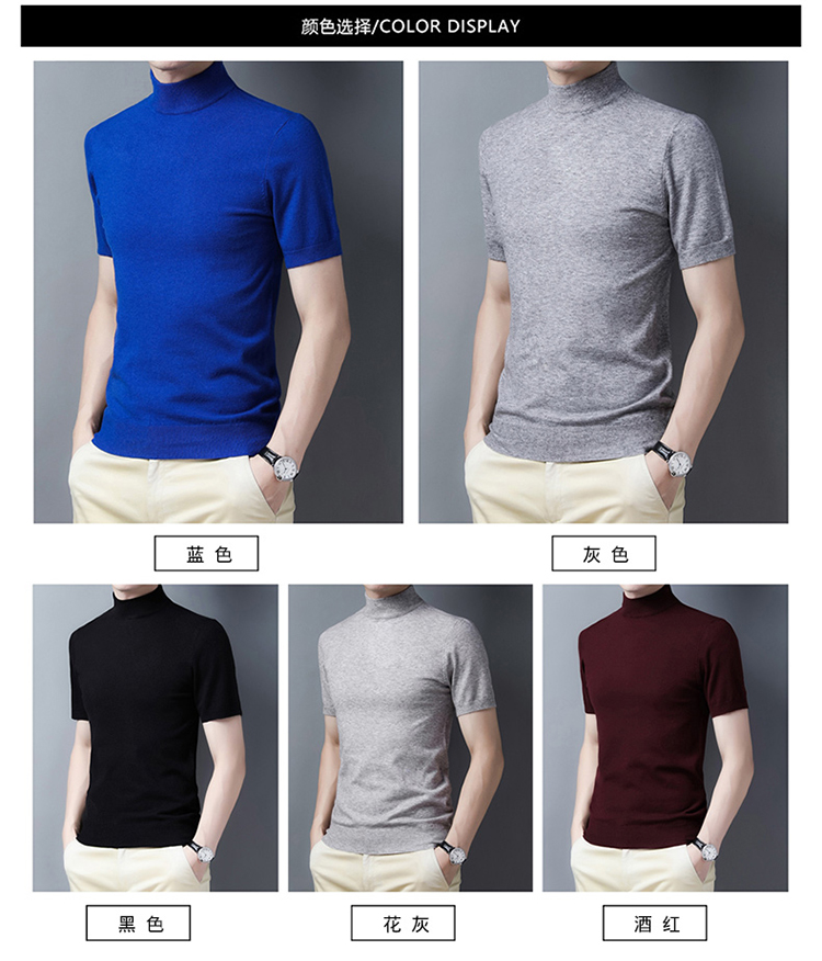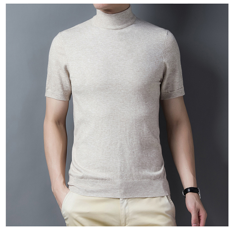 鄂尔多斯市100%羊绒衫男半袖针织打底衫春季中青年韩版套头羊毛衫