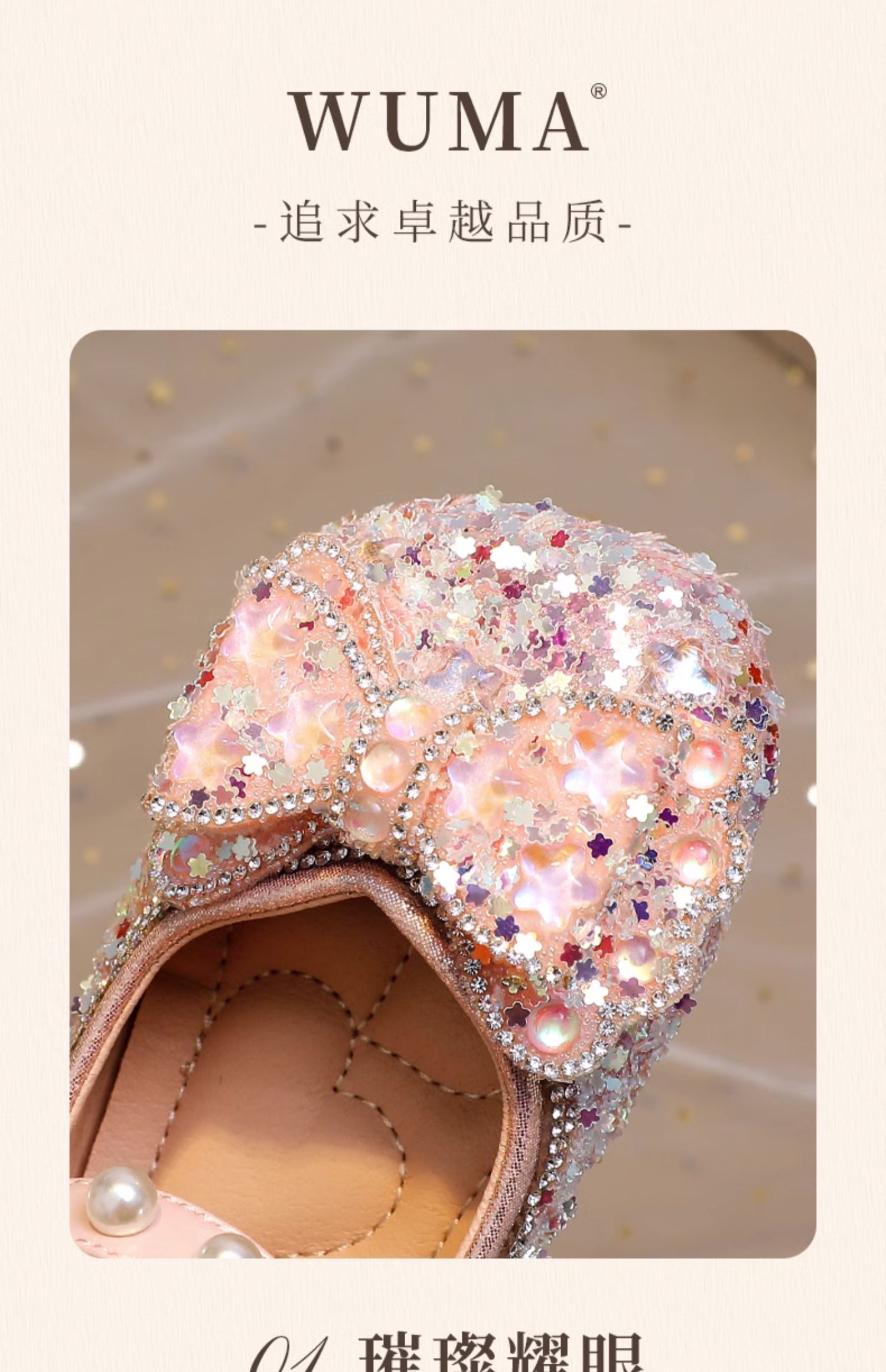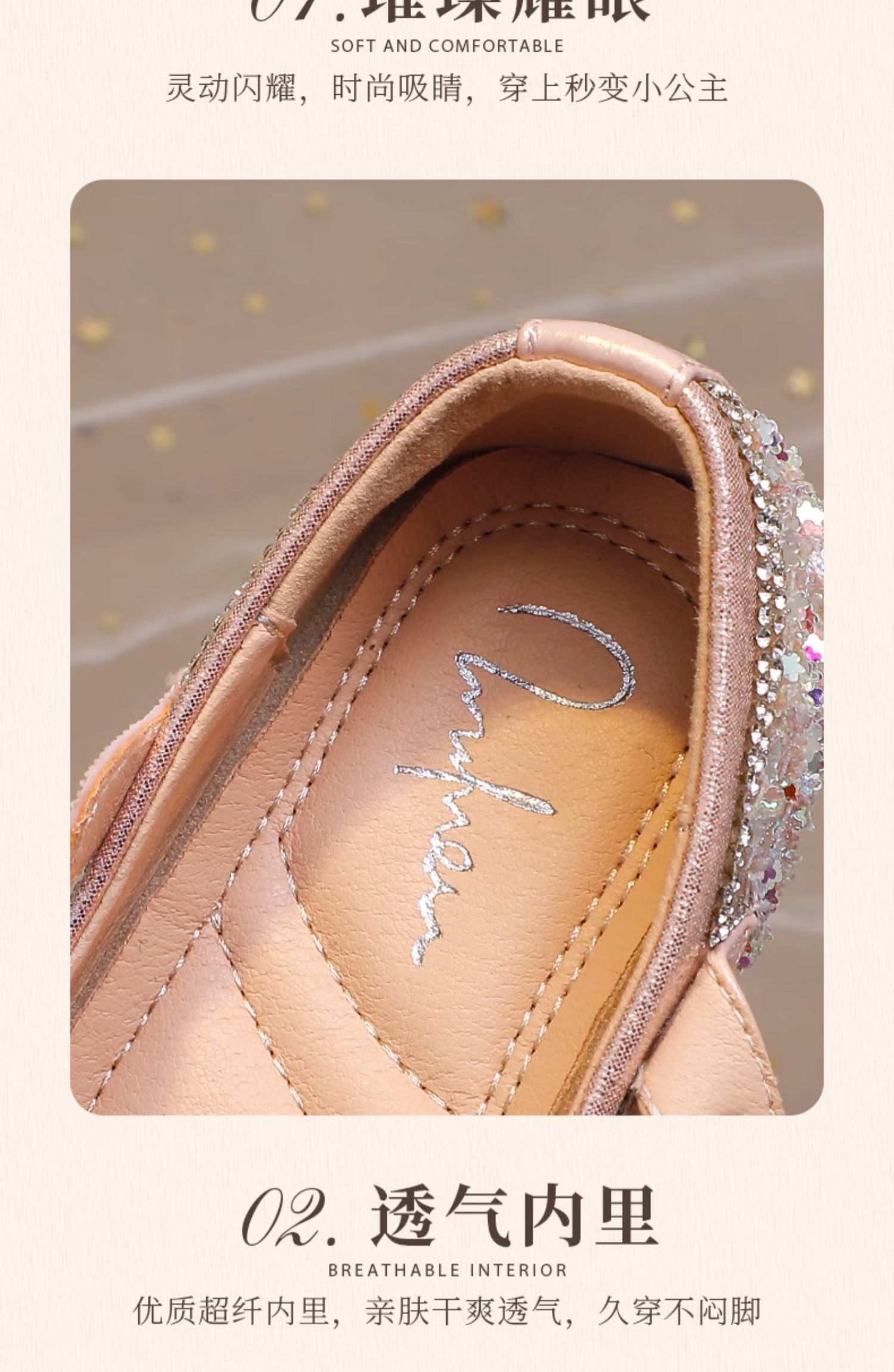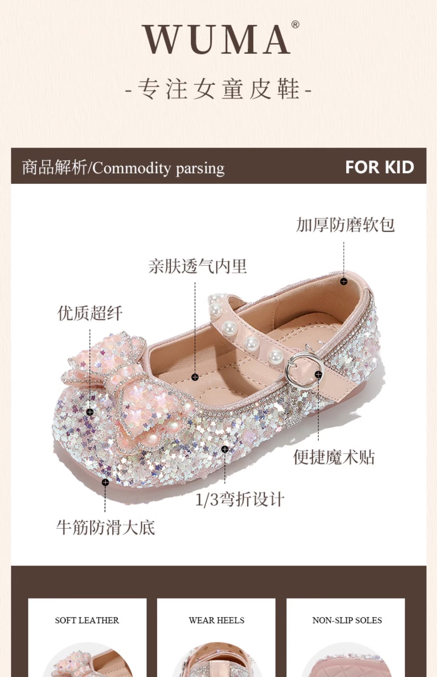 舞玛女童鞋子儿童公主鞋2025新款宝宝秋款水晶小皮鞋水钻闪亮单鞋