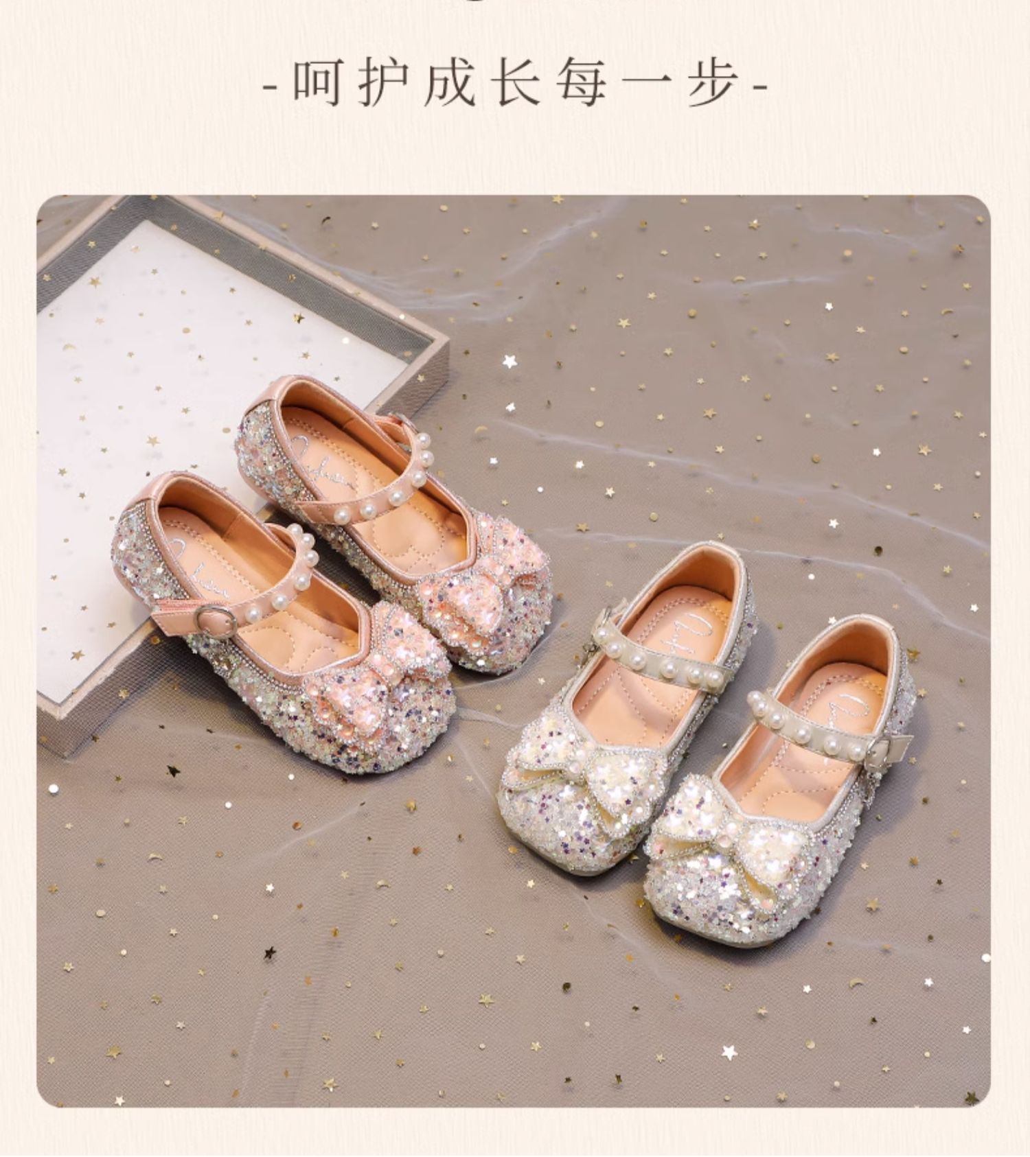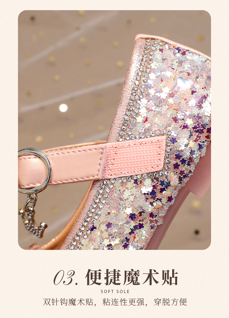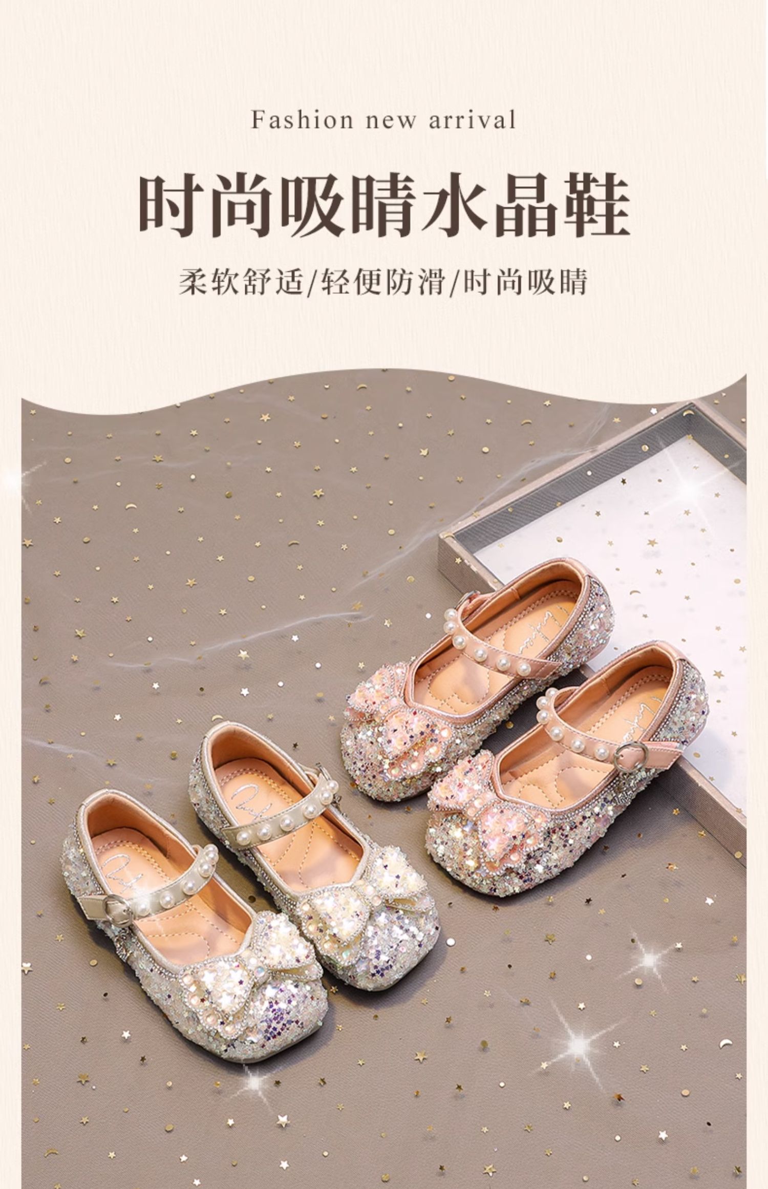 舞玛女童鞋子儿童公主鞋2025新款宝宝秋款水晶小皮鞋水钻闪亮单鞋