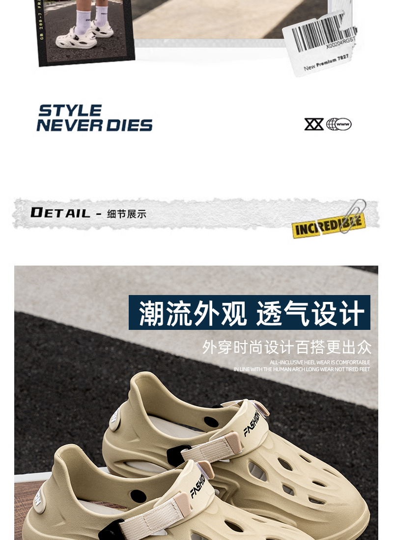 洞洞鞋男款夏季外穿2025新款厚底防滑防臭透气凉鞋沙滩运动拖鞋男