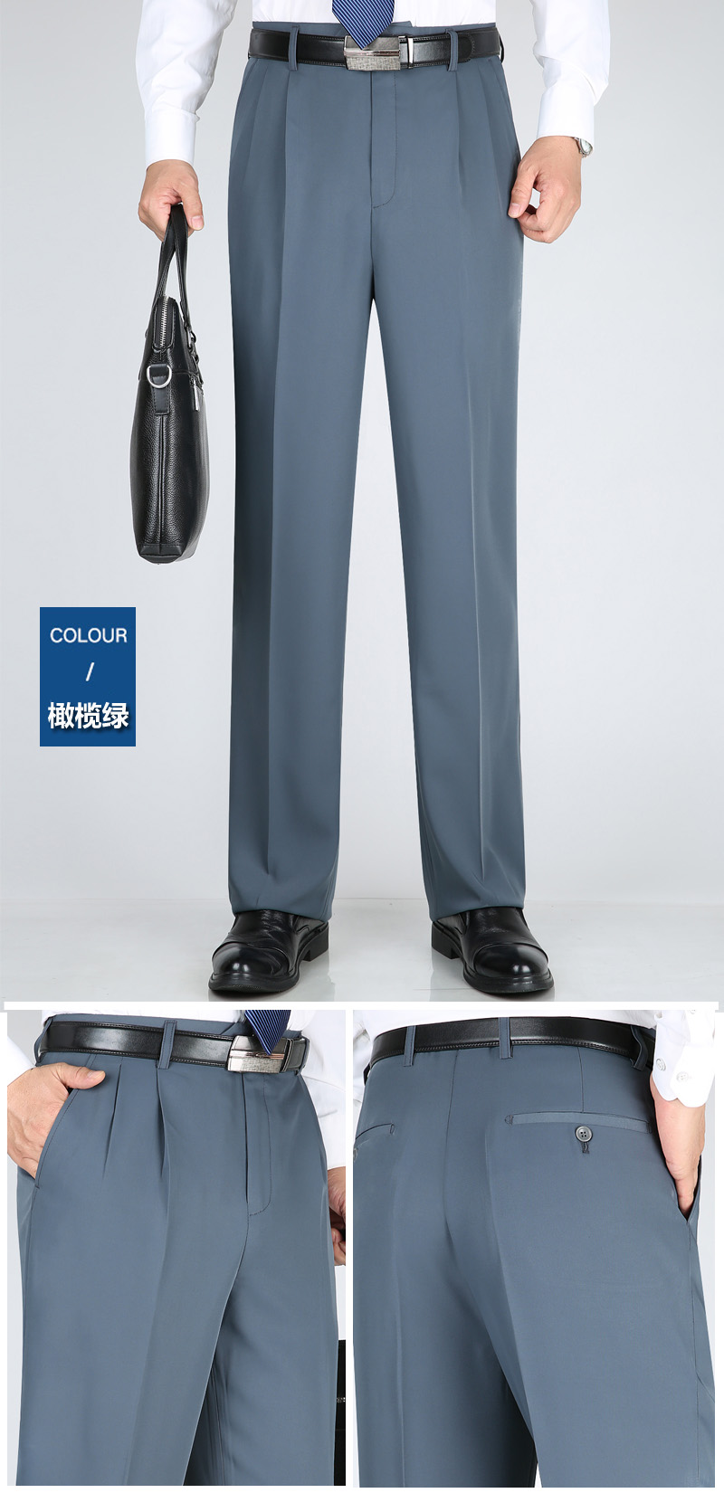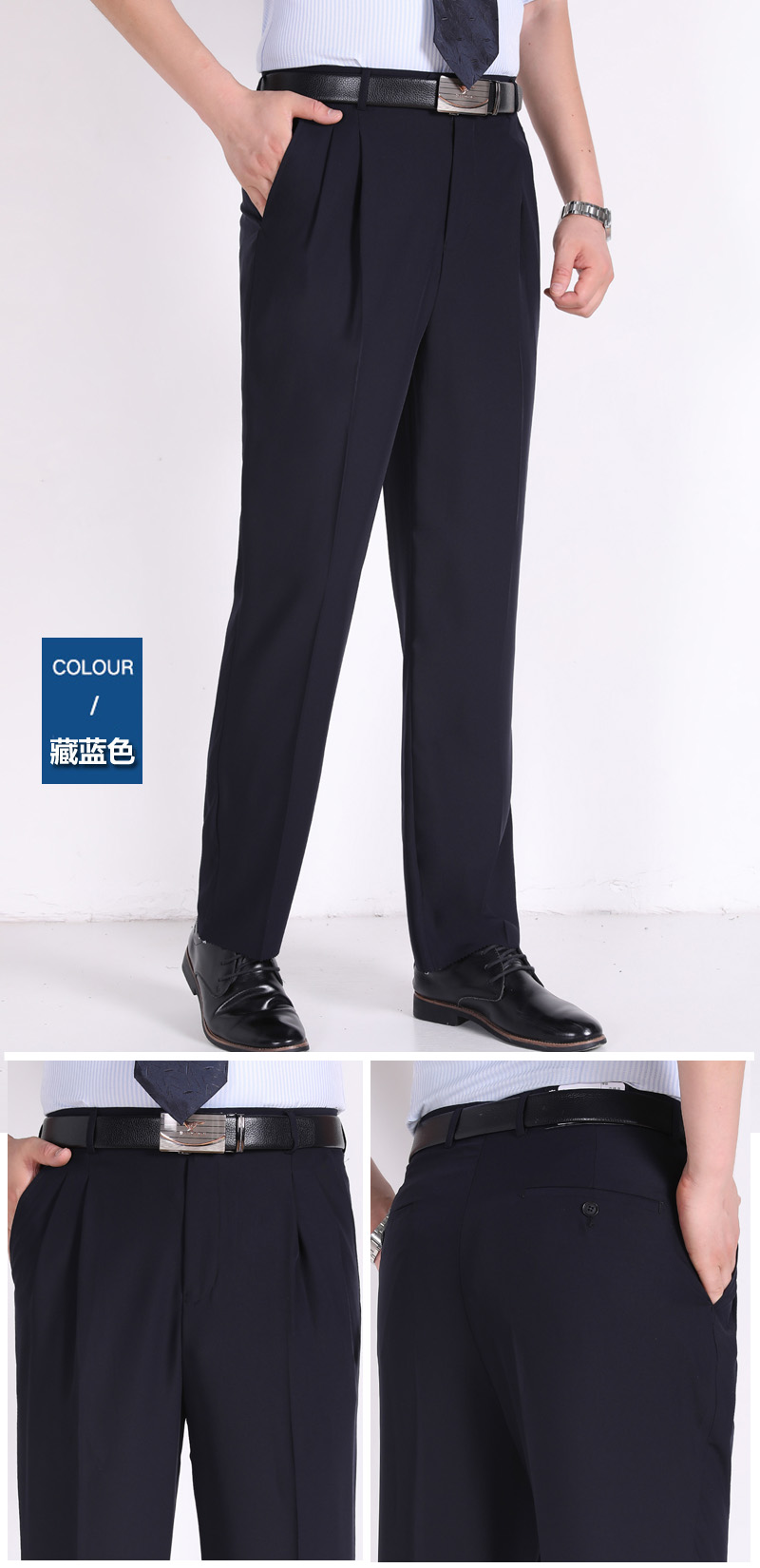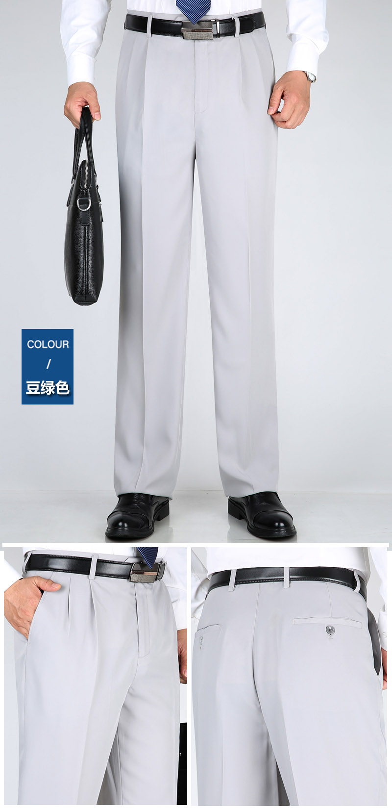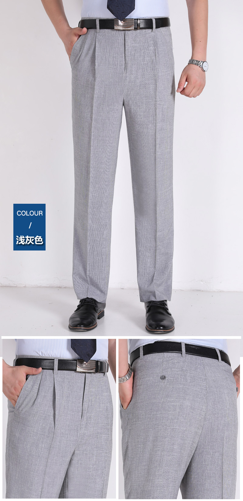 皮尔卡丹桑蚕丝免烫双褶西裤加肥加大码中老年高腰深裆爸爸男裤子