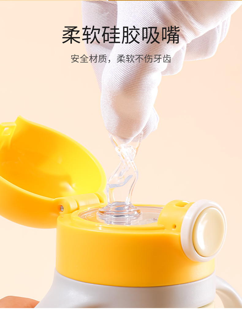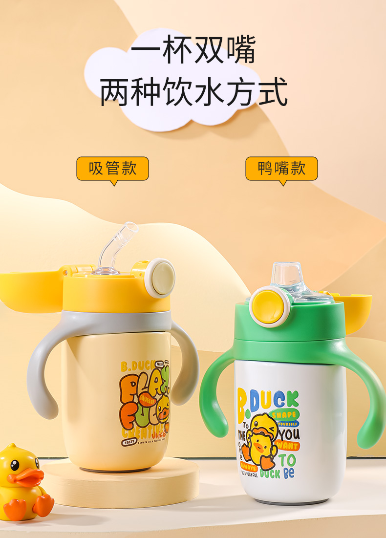 B.Duck鸭鸭学饮保温杯一杯双盖含咬吸奶嘴双吸嘴重力球水杯含背带