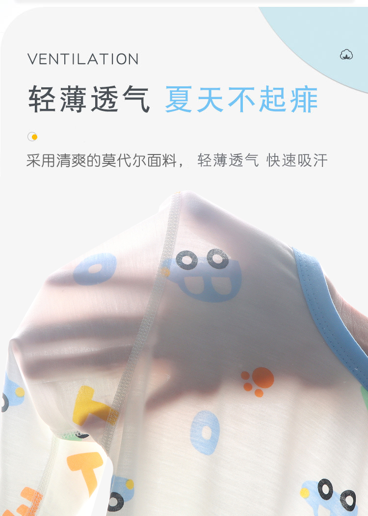 儿童睡衣男童女童莫代尔家居服夏季薄款宝宝九分袖空调服2025新款