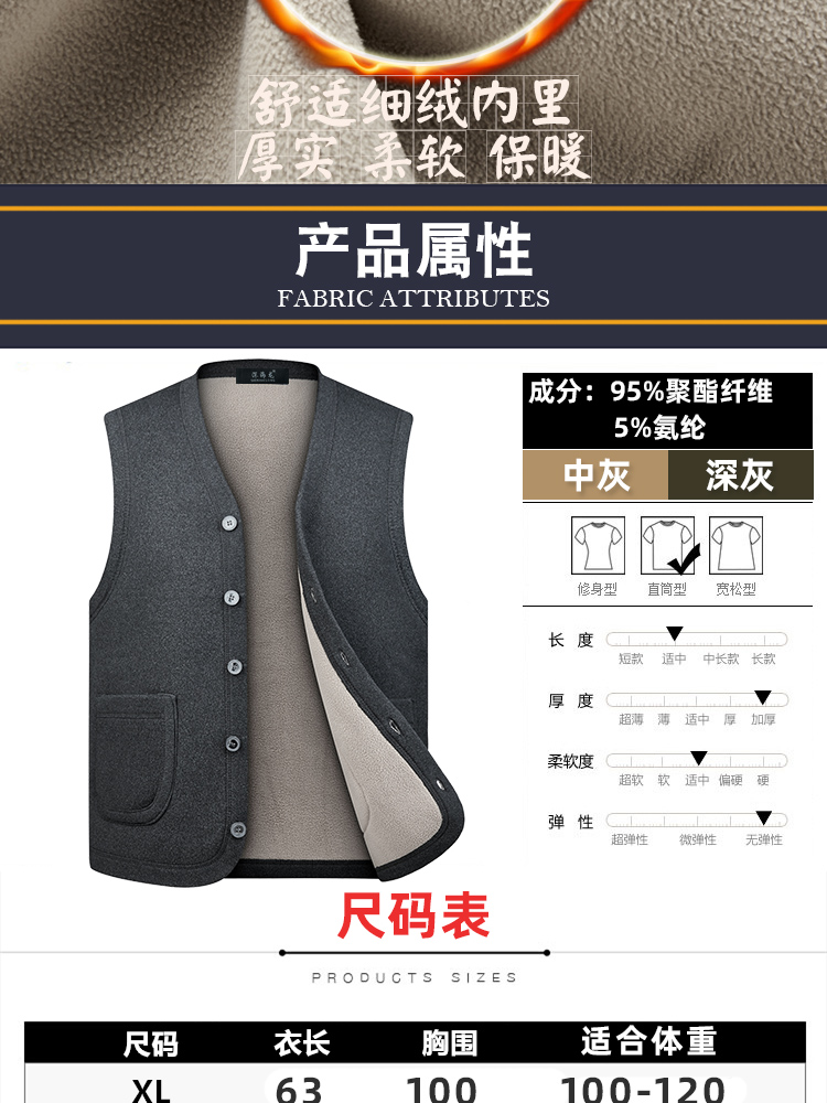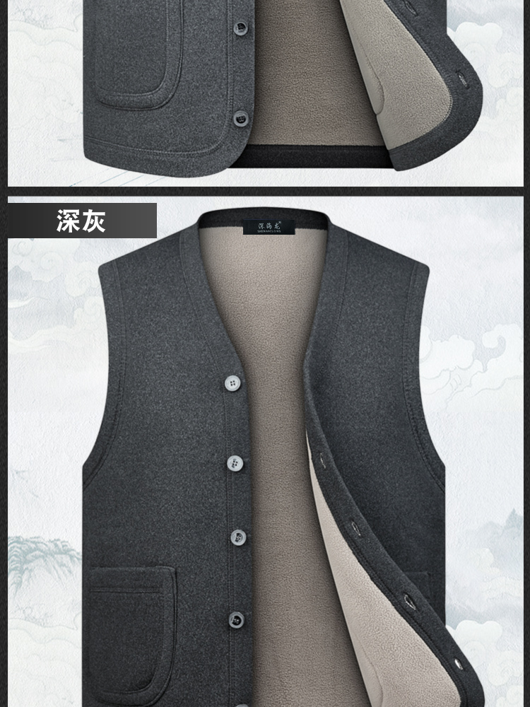 加绒保暖衣秋冬季爷爷马甲中老年男士加厚坎肩爸爸内穿打底棉背心