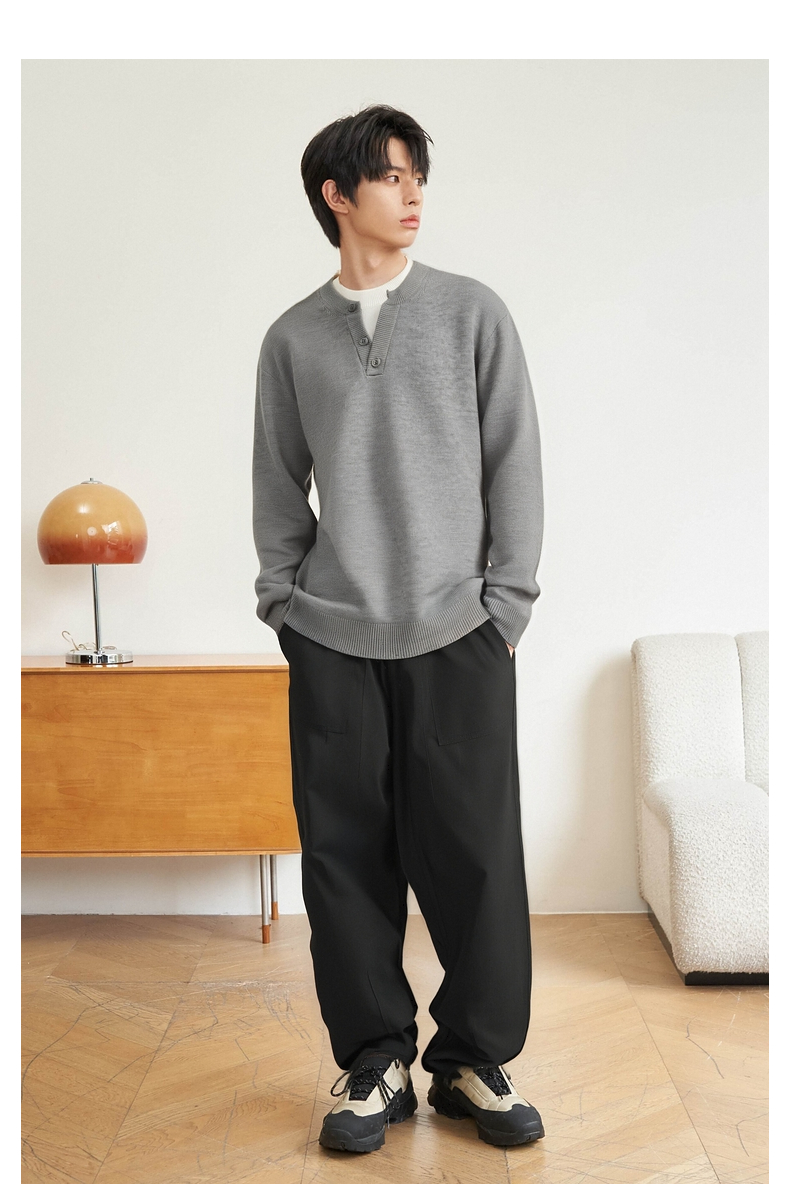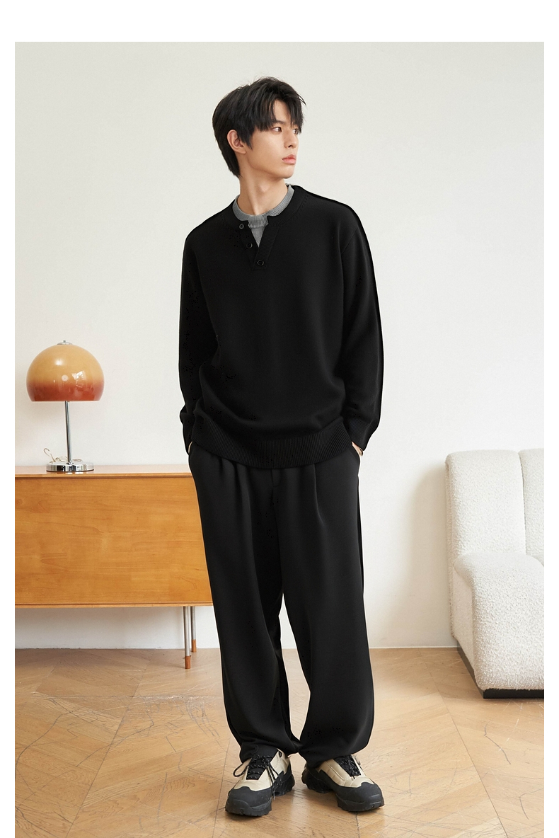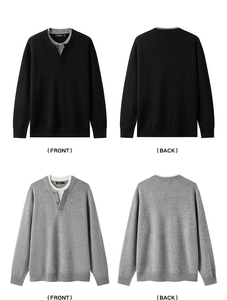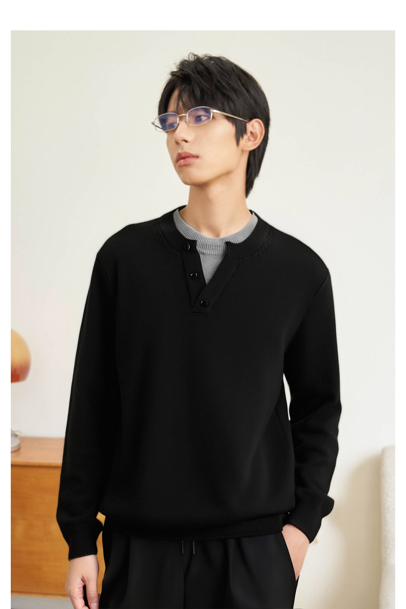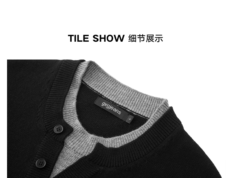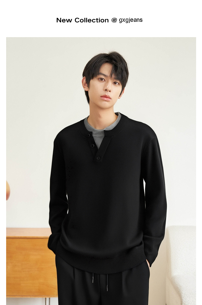 gxg.jeans男装 多色假两件半开襟休闲毛衣针织衫男 25年春新品
