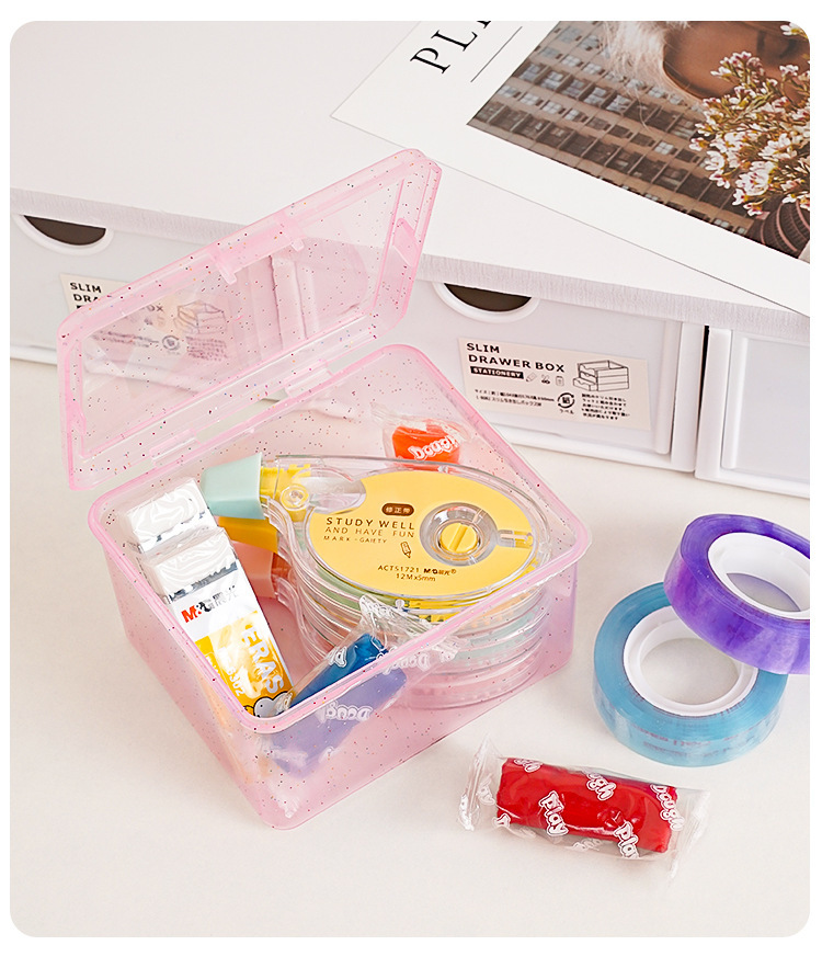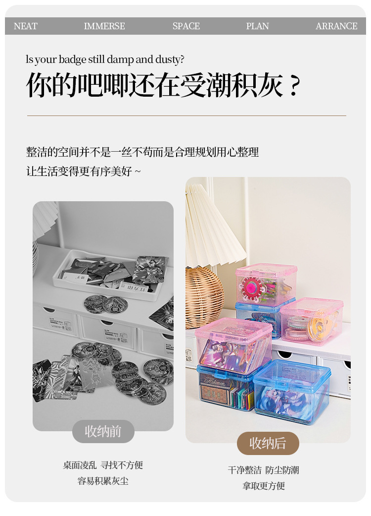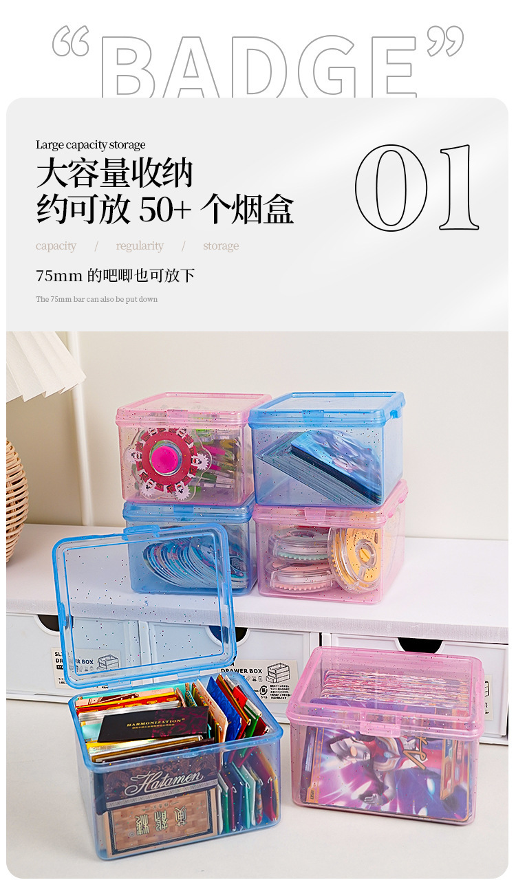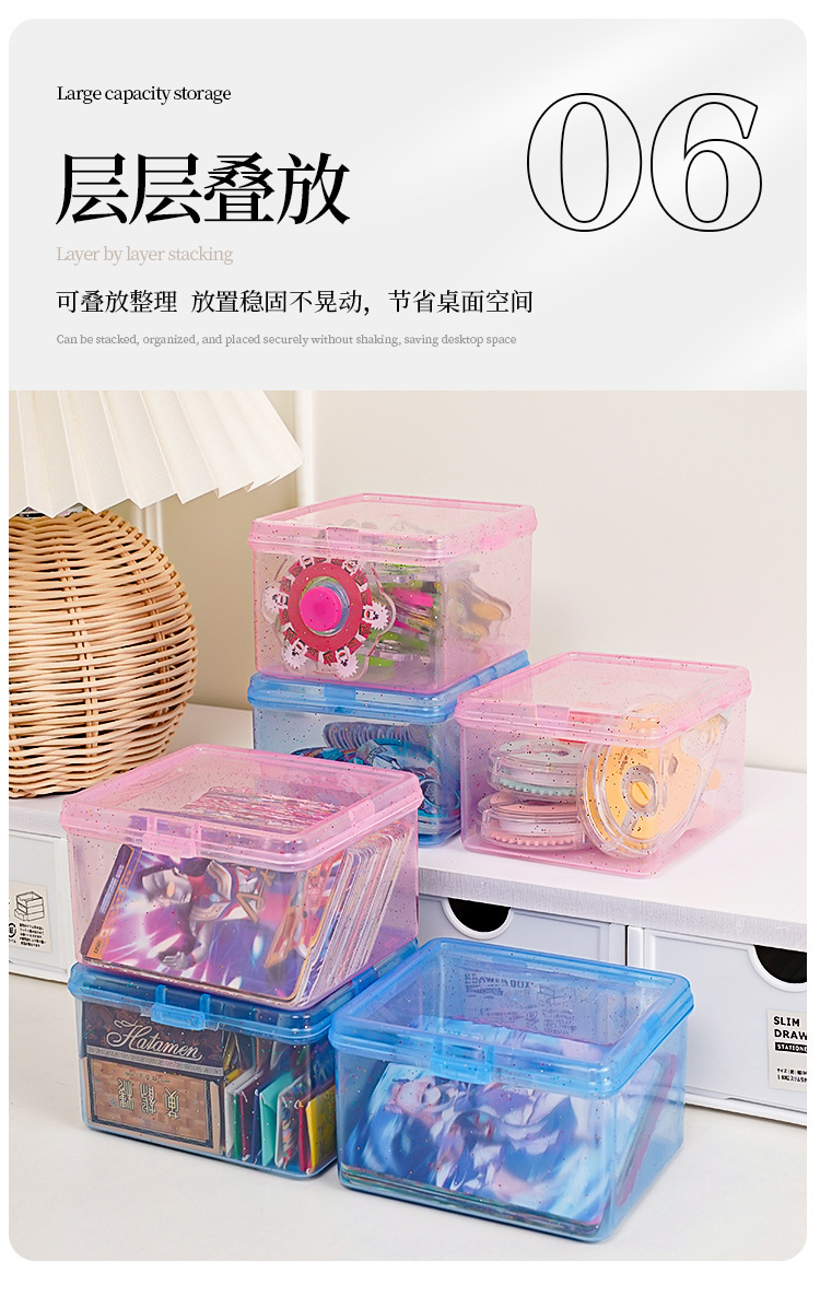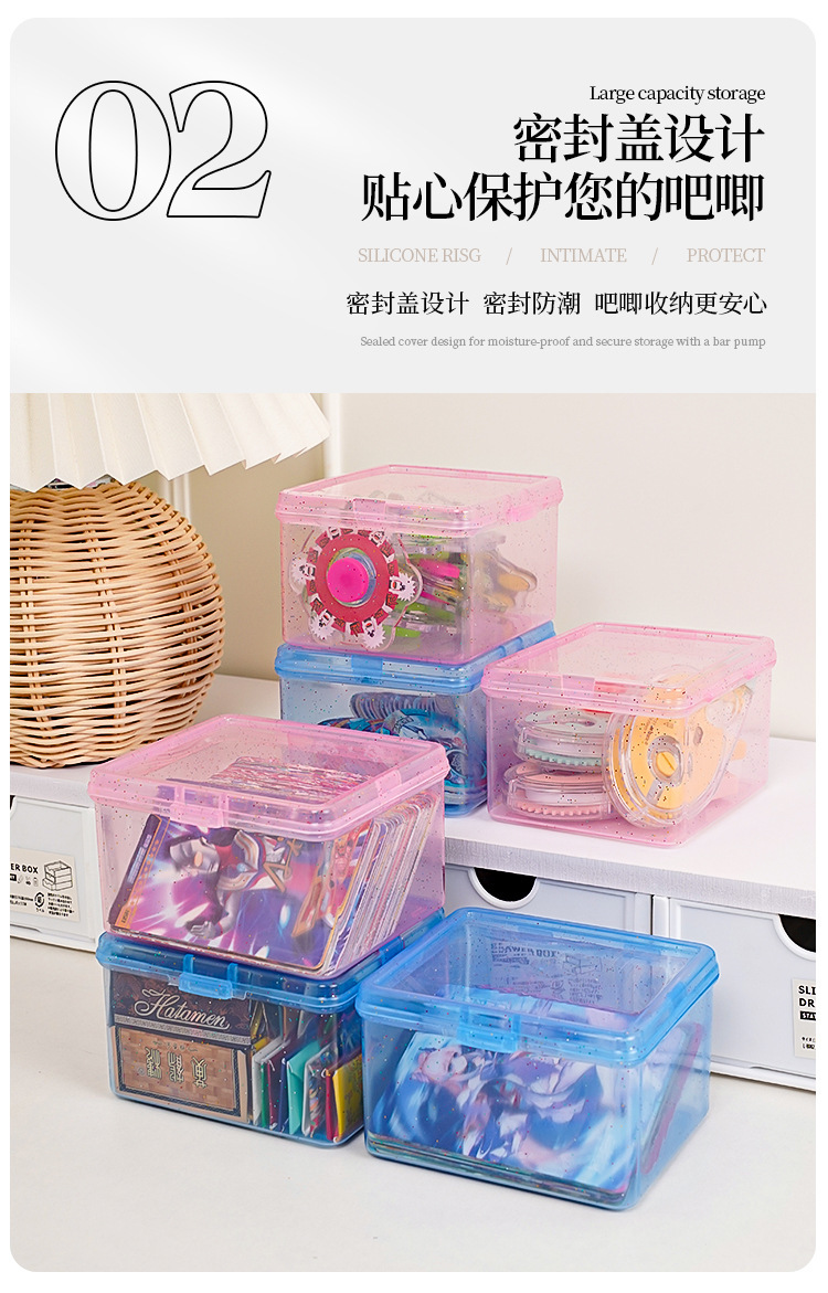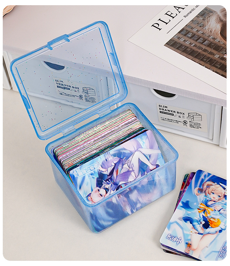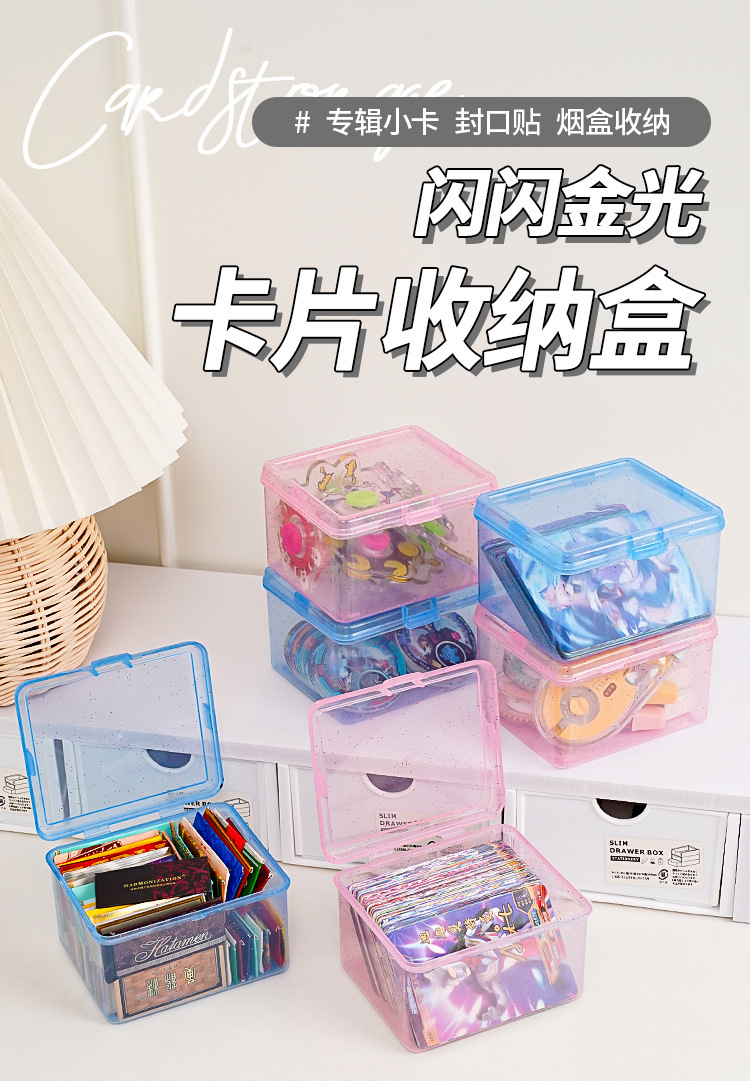 卡片收纳盒透明防尘带盖儿童小卡零钱整理盒多功能桌面杂物储物盒