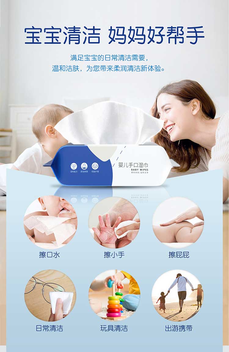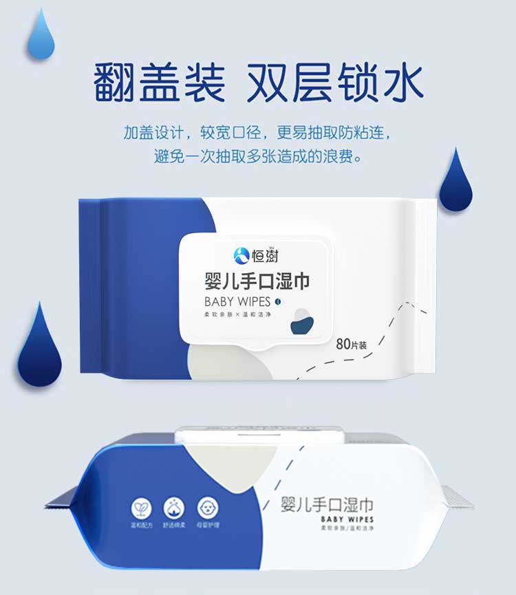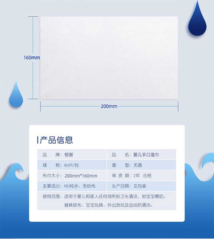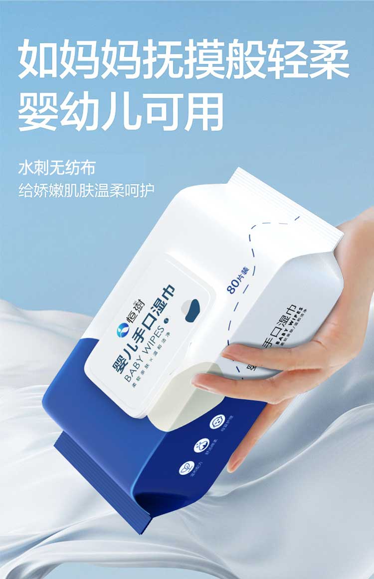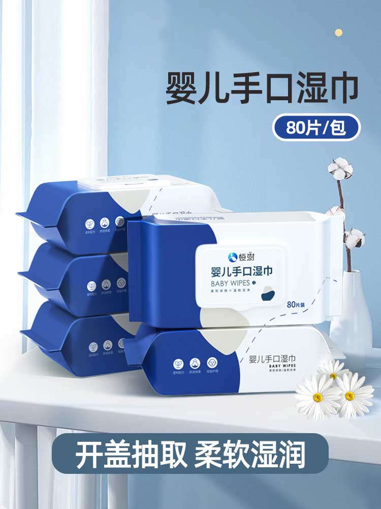 恒澍湿巾纸新生婴儿手口专用屁宝宝幼儿童湿纸巾家用加大包装80抽