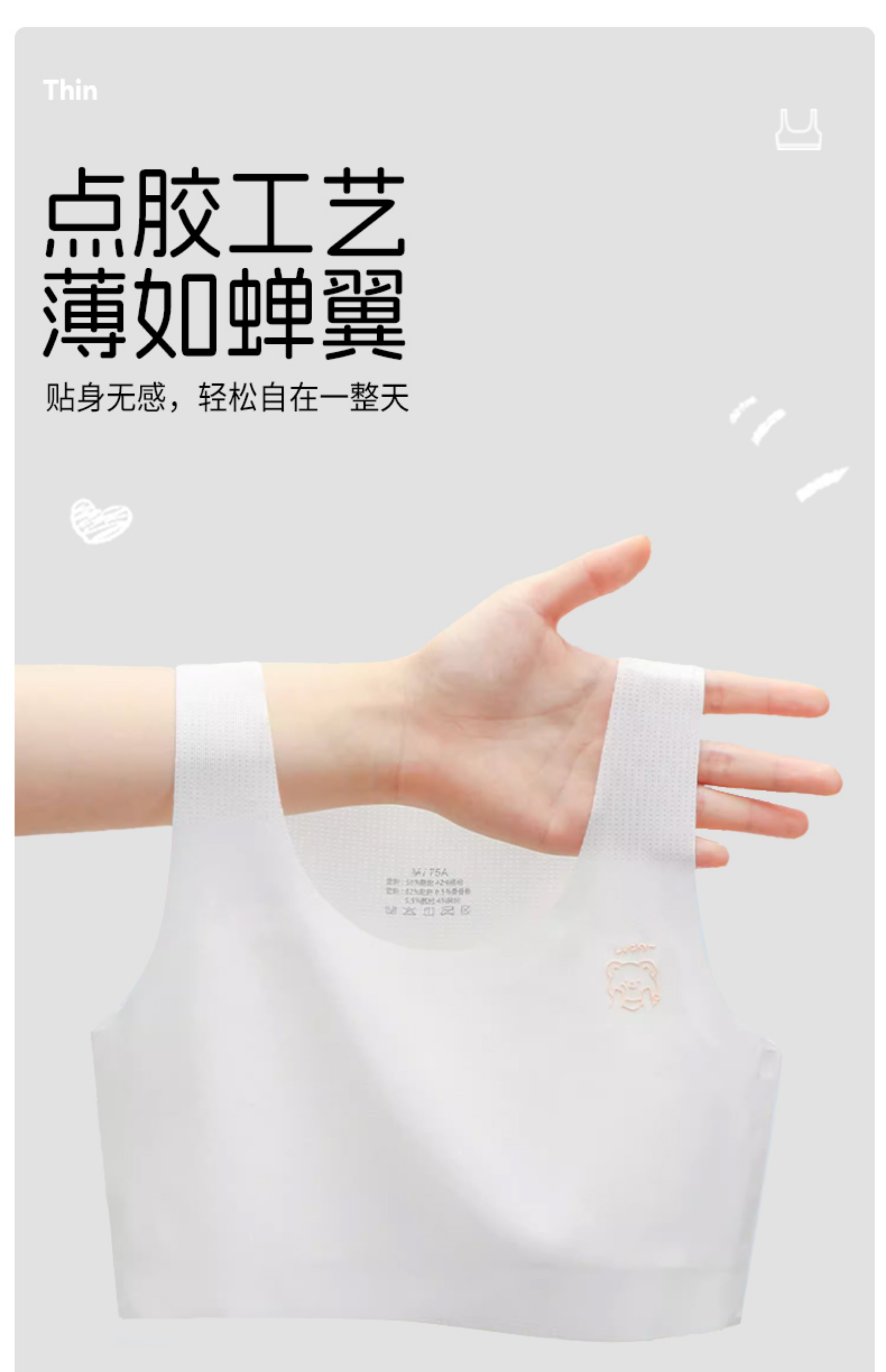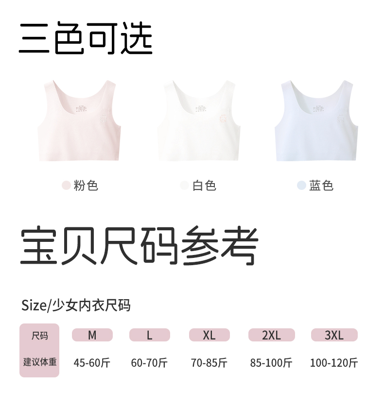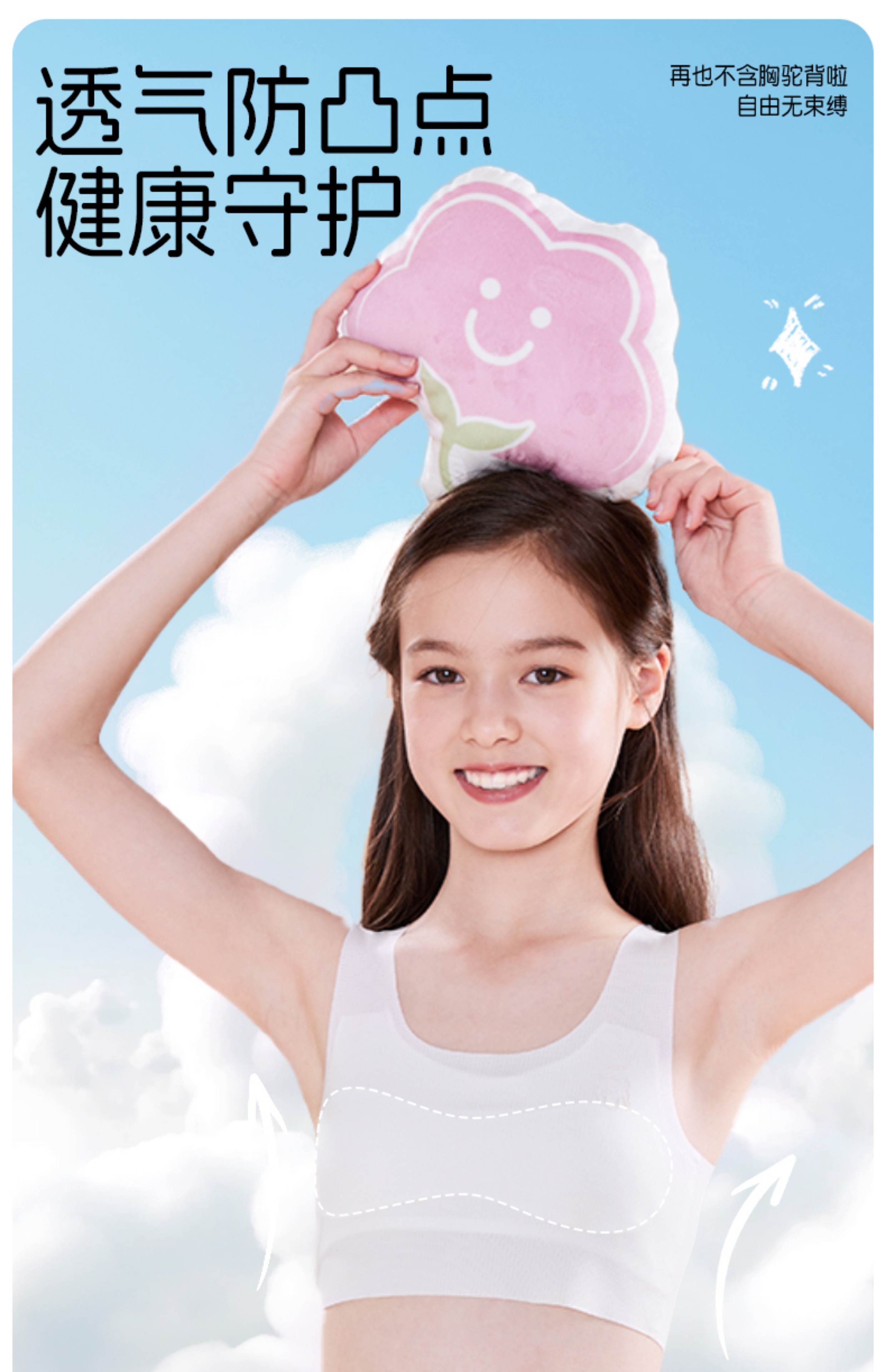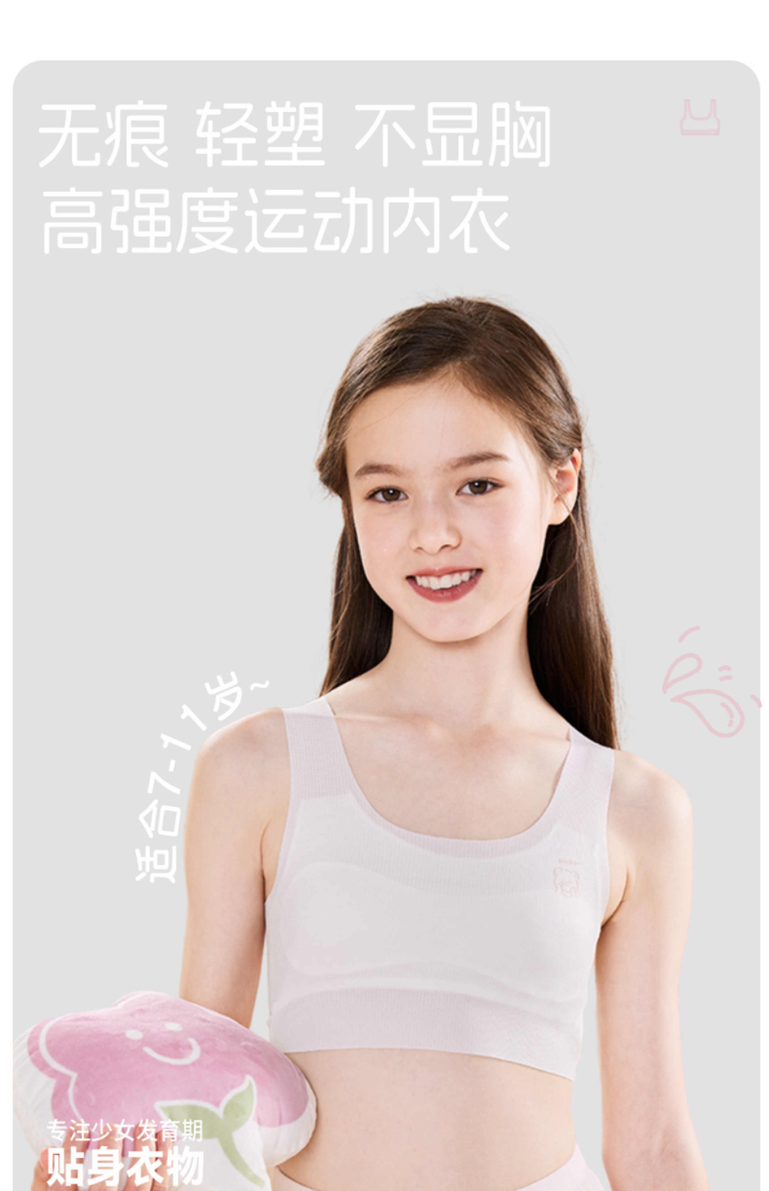 YIKUO忆括发育期少女一阶段女孩内衣儿童防凸小学生背心女童文胸