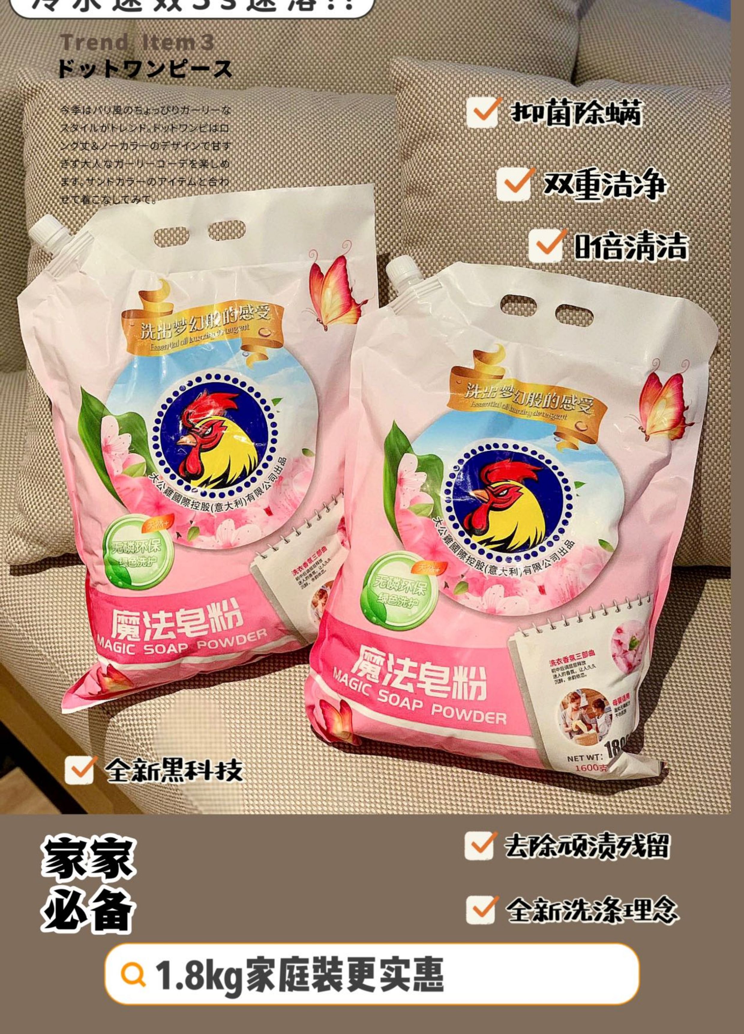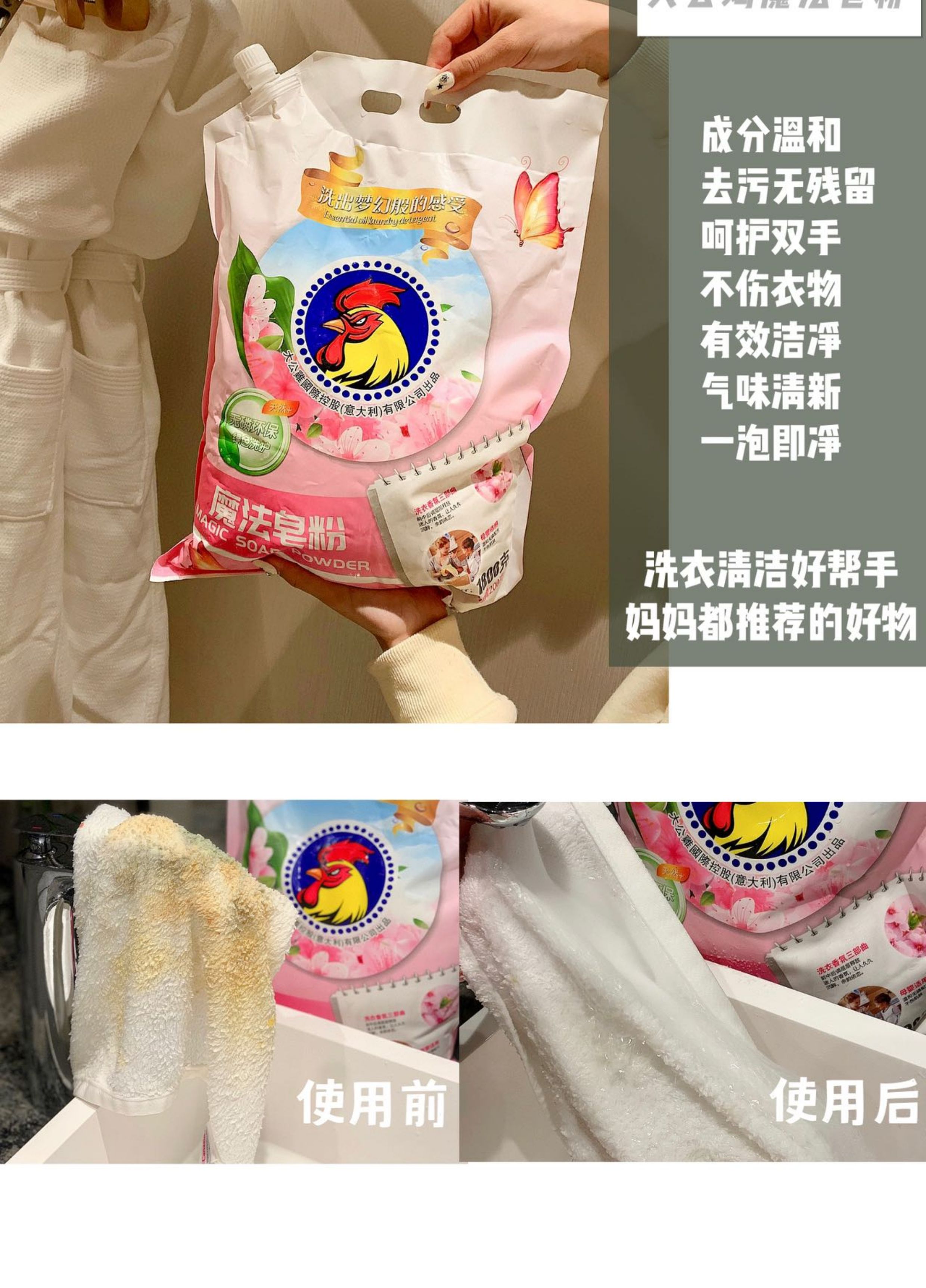 粤涤大公鸡天然浓缩皂粉持久留香强力去污洗衣粉家庭装大袋正品