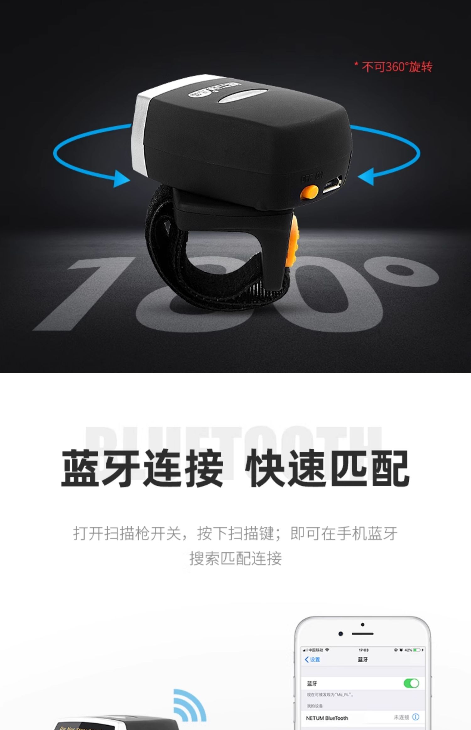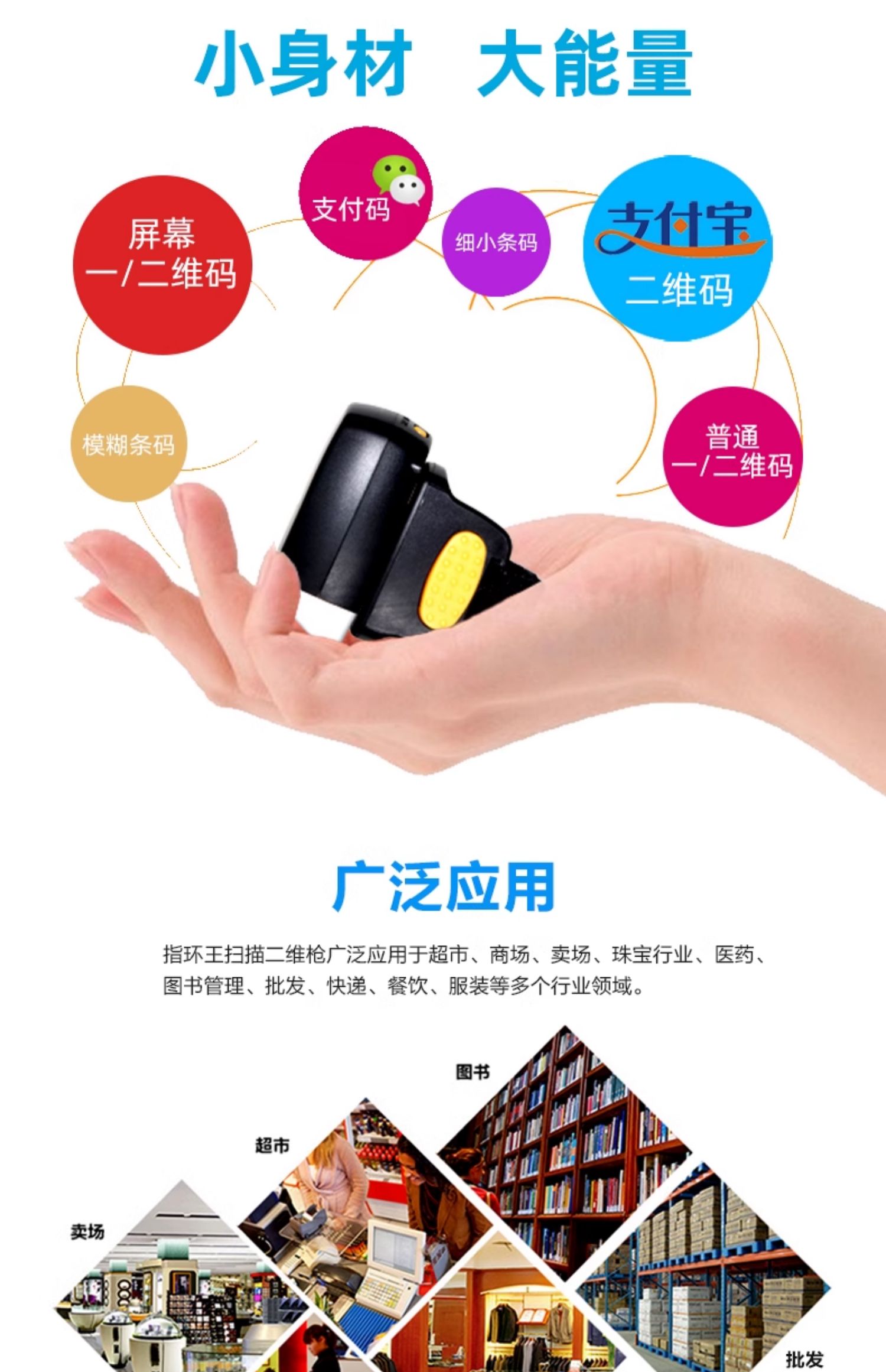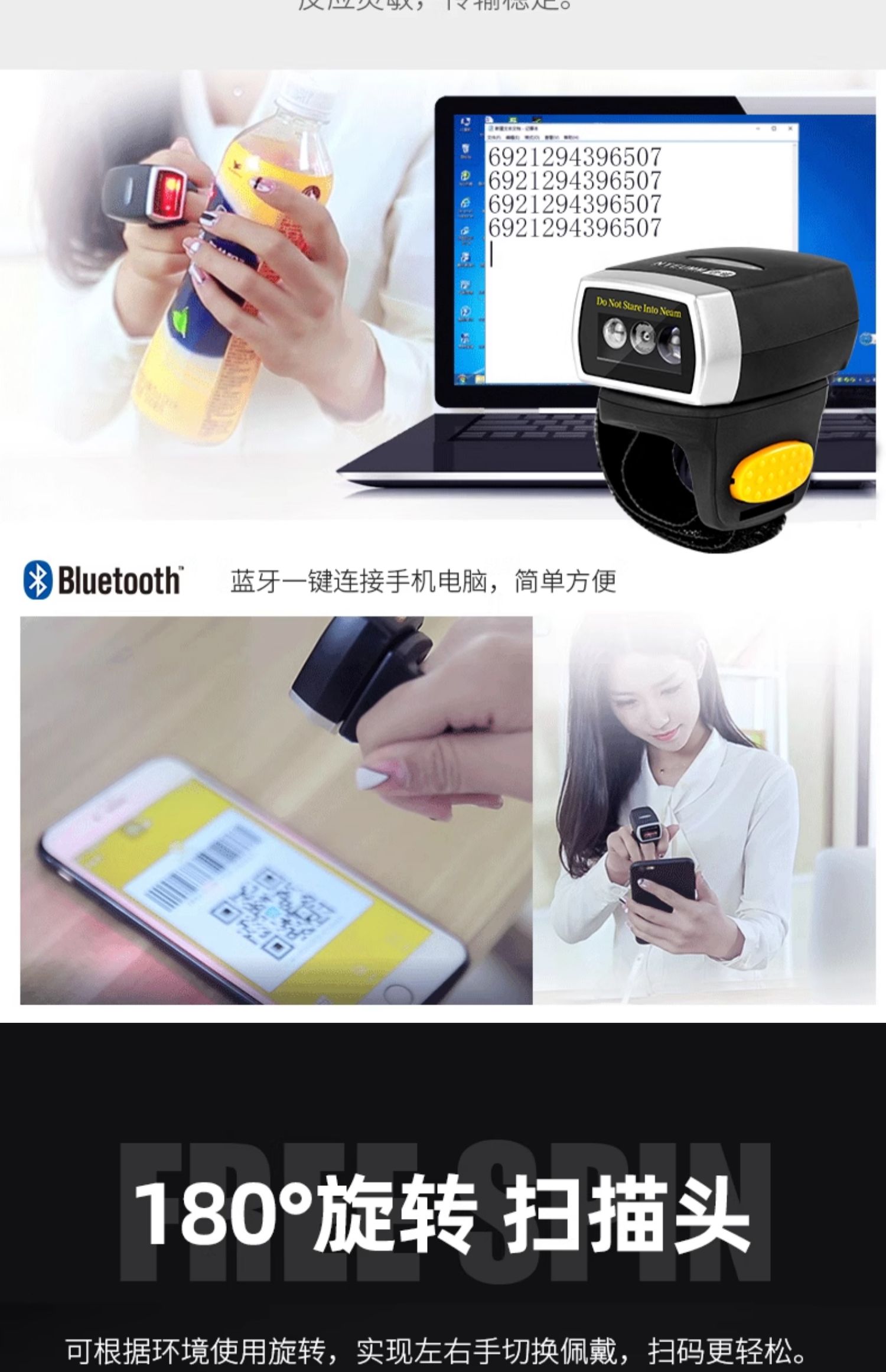 逊镭扫码枪一二维码蓝牙迷你无线扫描器手机屏幕支付便携式扫描枪指环王便携式手持快递巴枪货物盘点扫描器