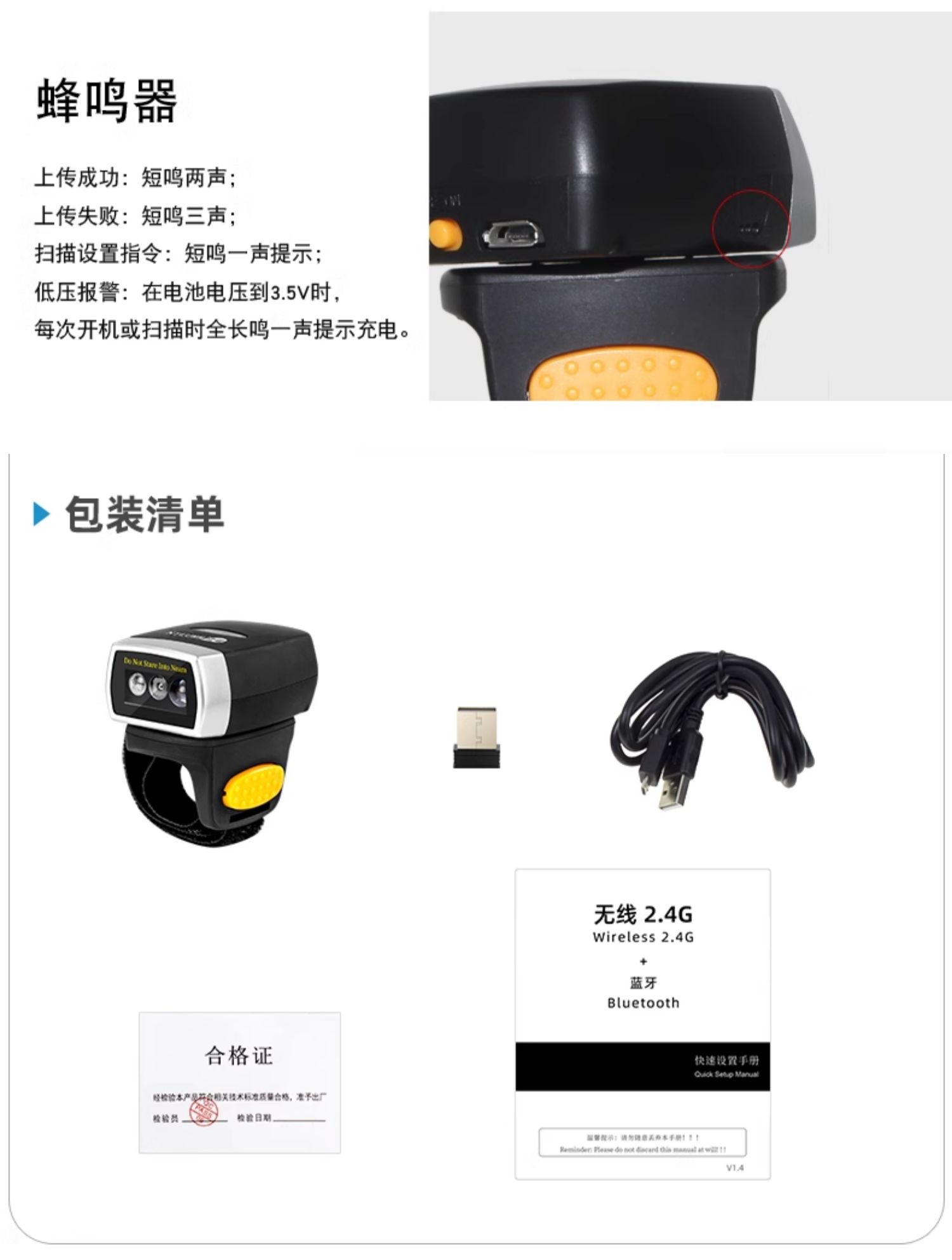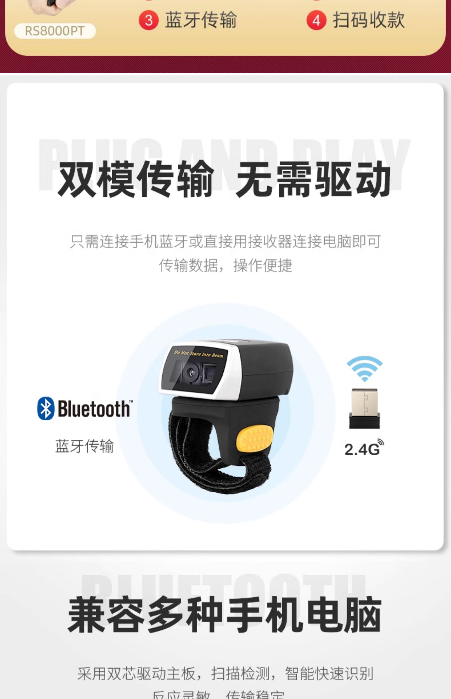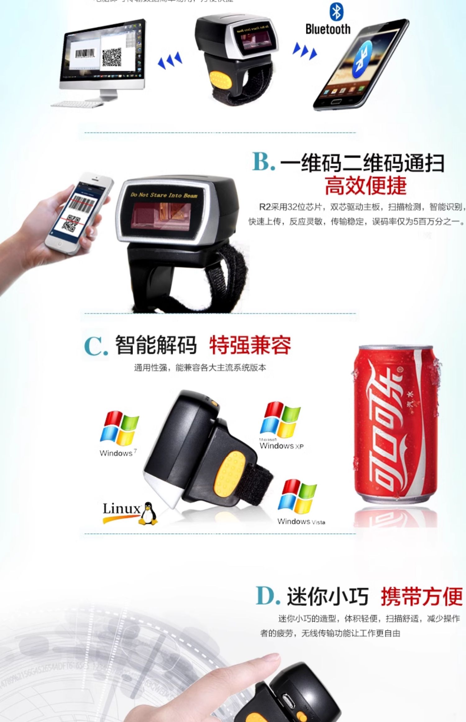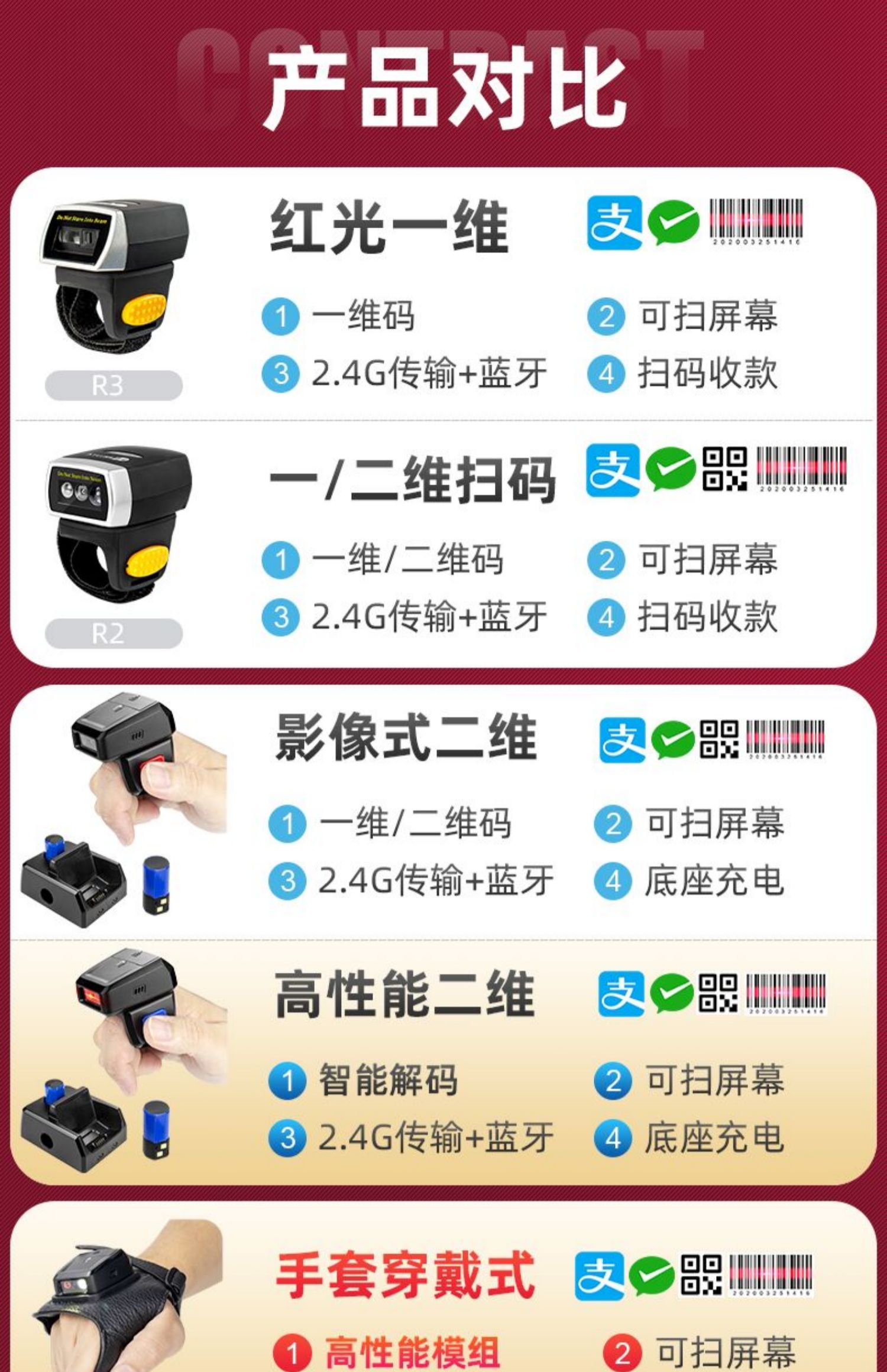 逊镭扫码枪一二维码蓝牙迷你无线扫描器手机屏幕支付便携式扫描枪指环王便携式手持快递巴枪货物盘点扫描器