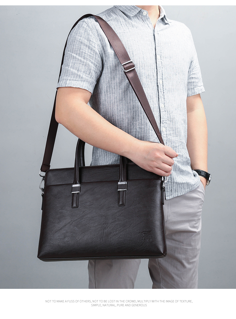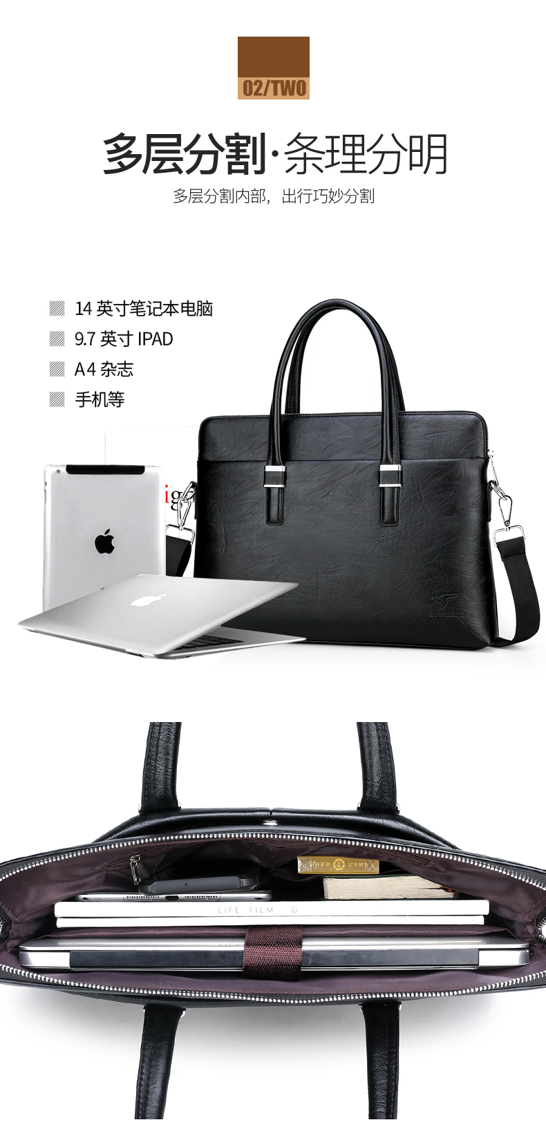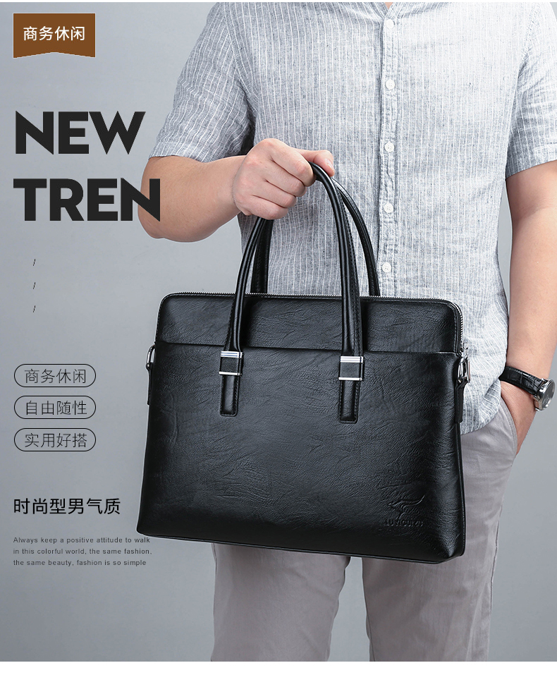 男包手提包商务大容量公文包电脑包休闲单肩斜跨包办公文件包横款