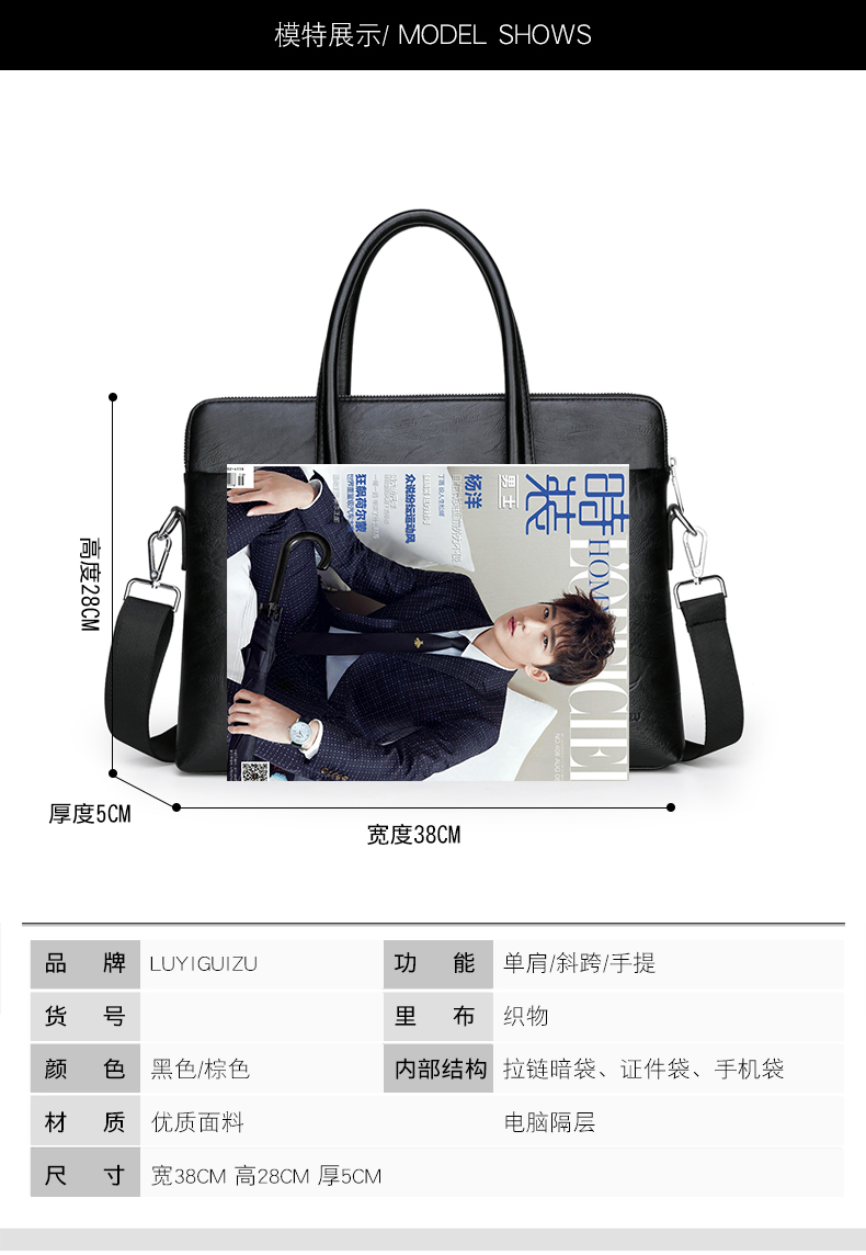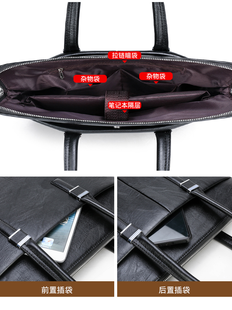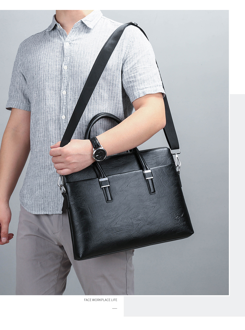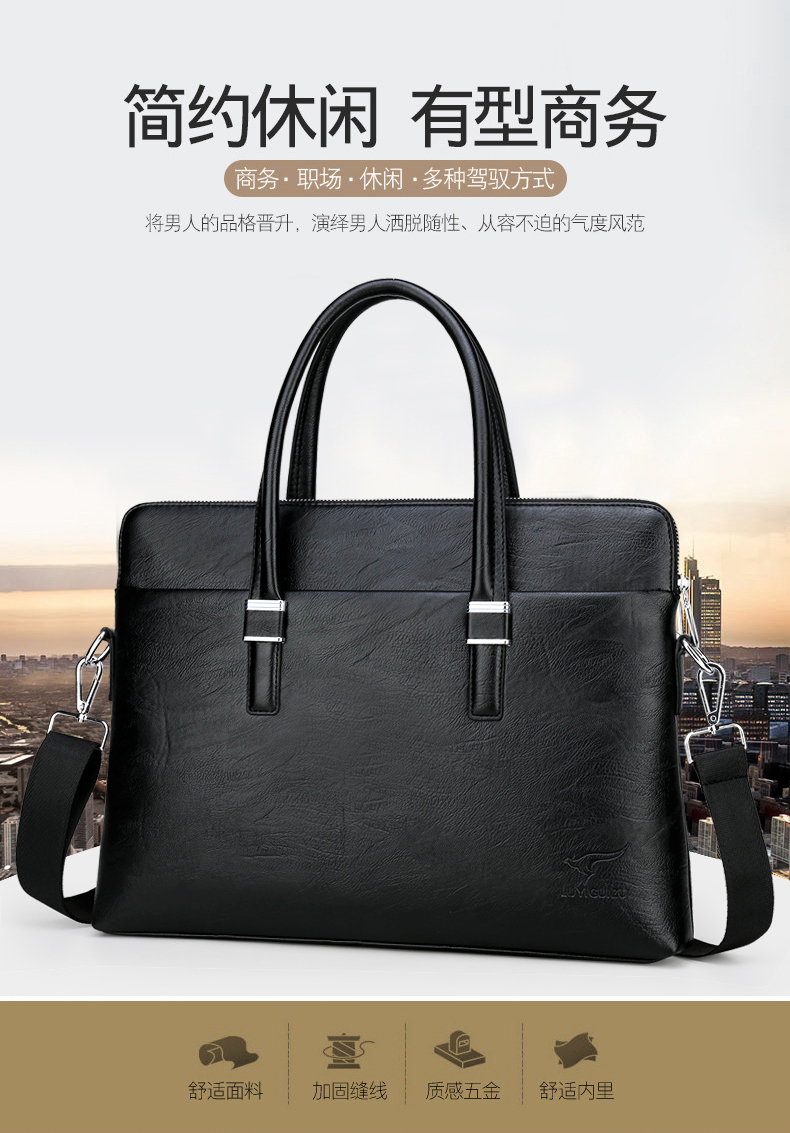 男包手提包商务大容量公文包电脑包休闲单肩斜跨包办公文件包横款