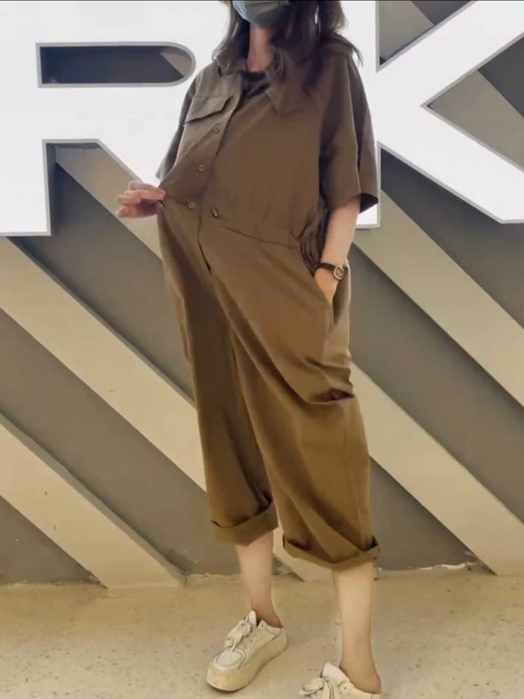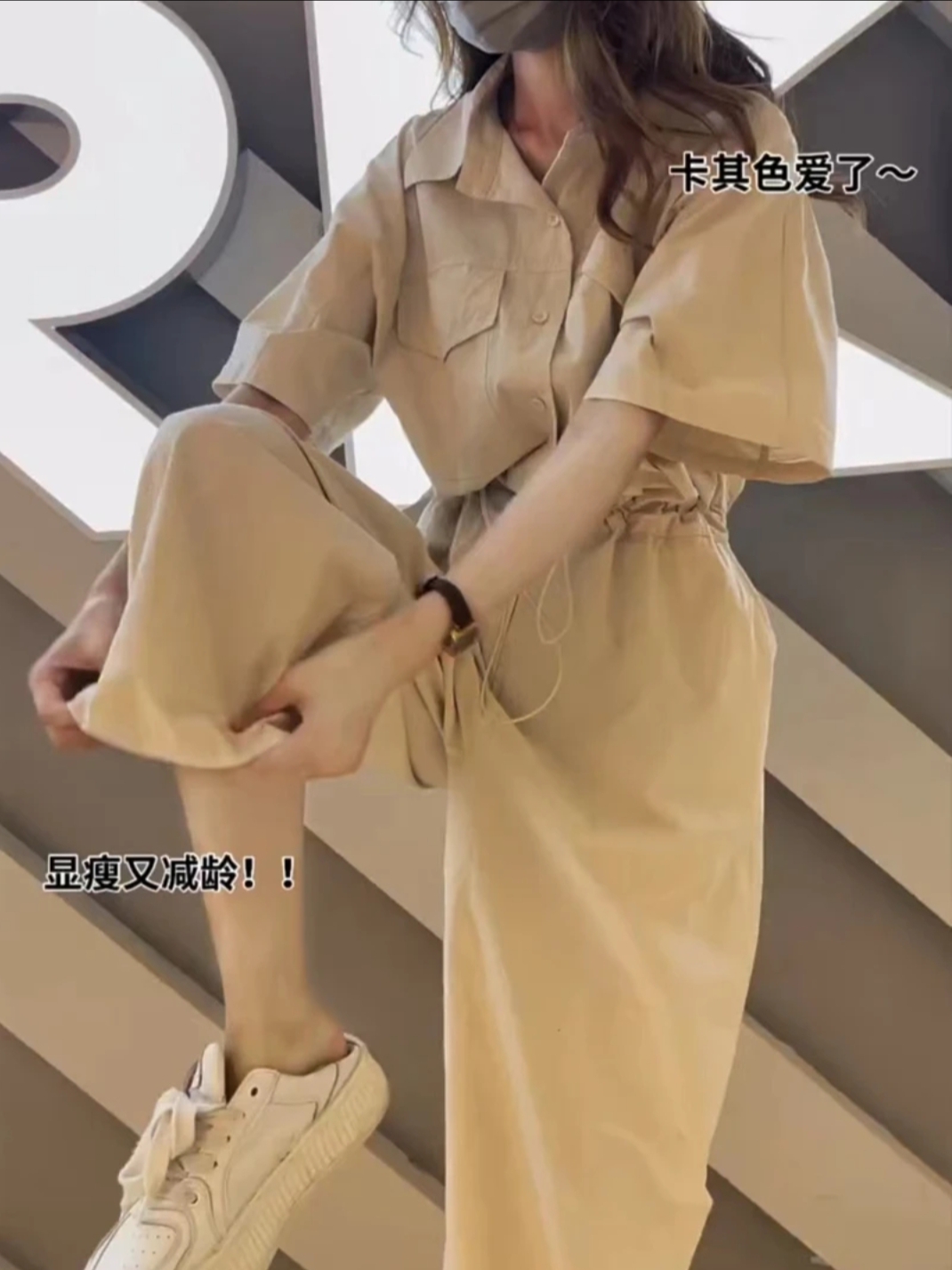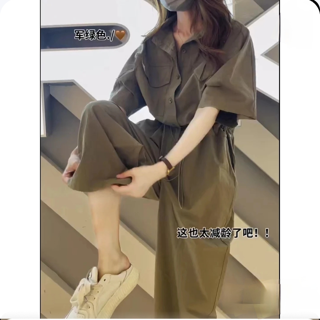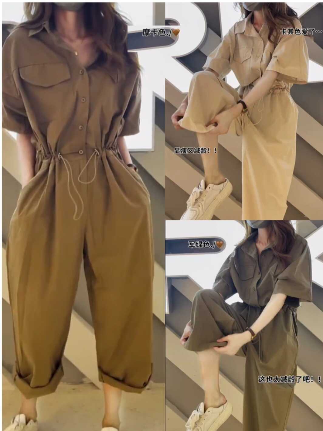 2024夏季新款设计感炸街收腰工装连体裤女韩版减龄直筒连身衣裤子
