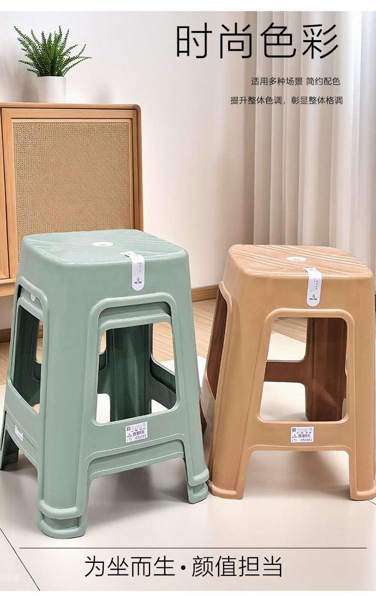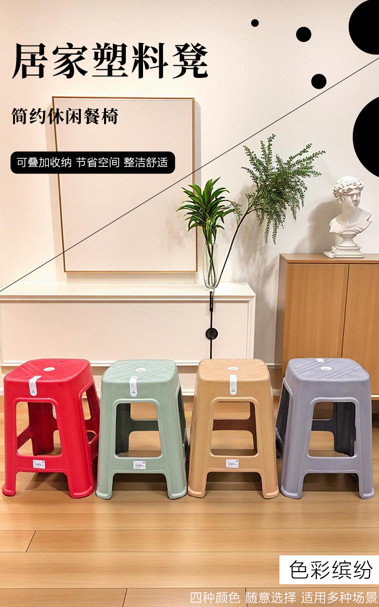1-10个装特厚熟胶加厚承重强塑料凳子高板凳客厅家用防滑成人方凳