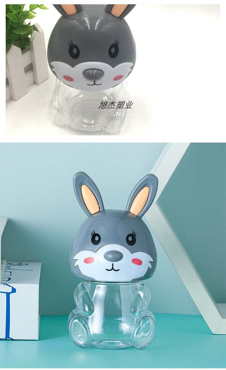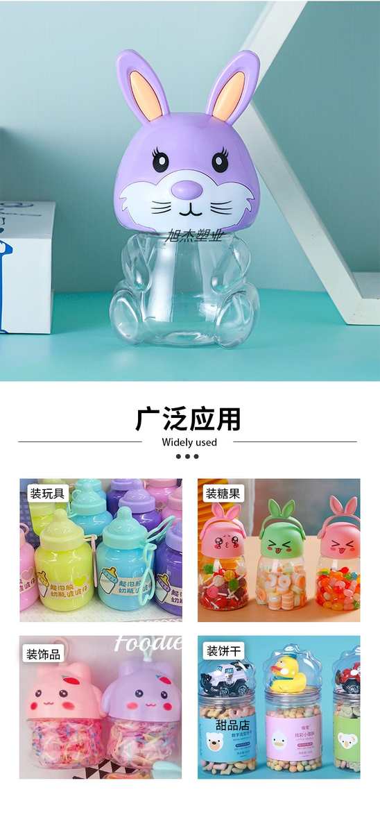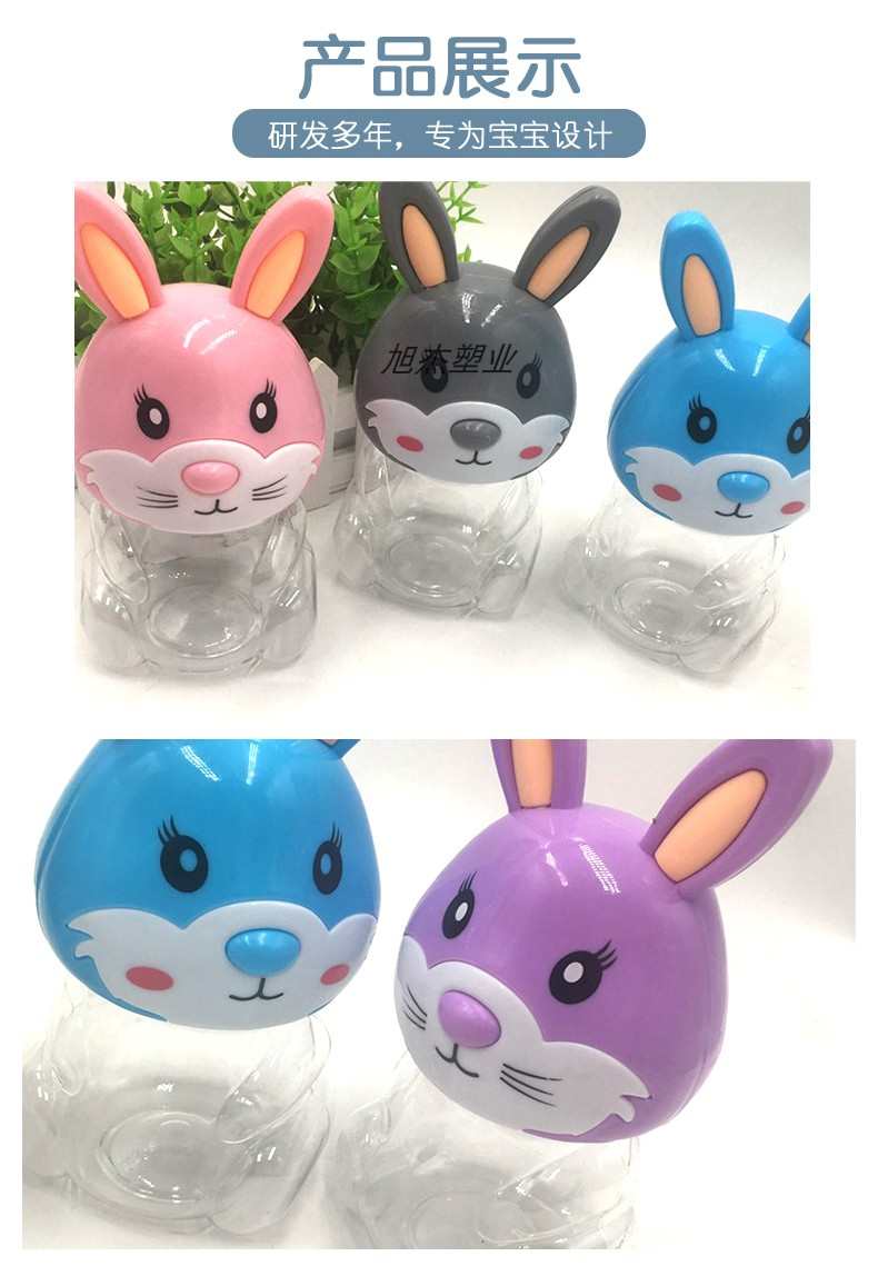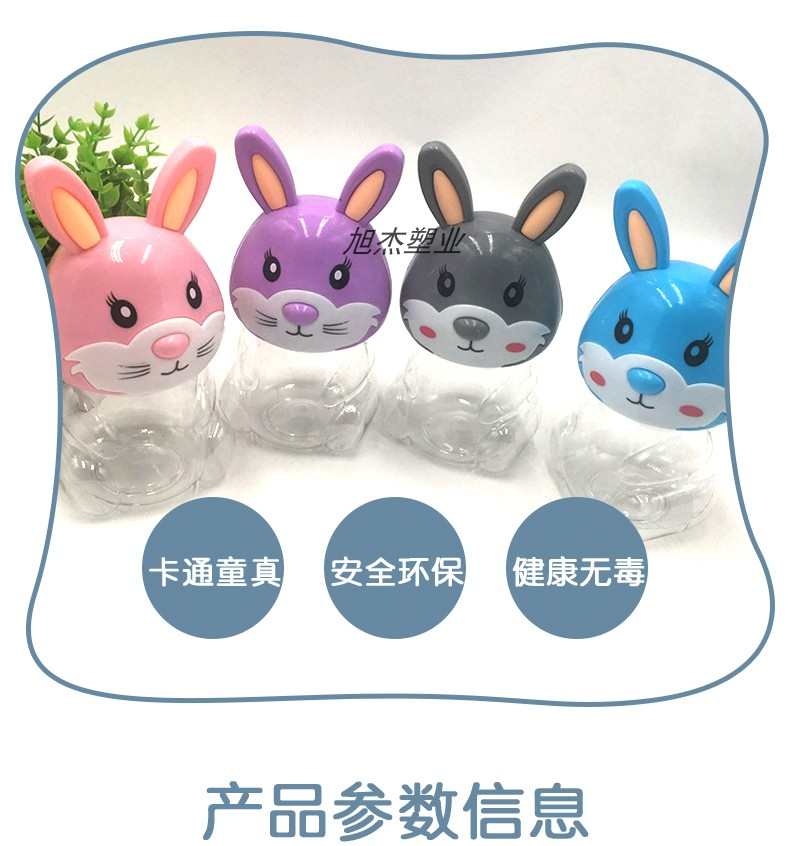PET可爱兔子卡通透明塑料包装收纳罐食品级零食瓶子包装手提密封
