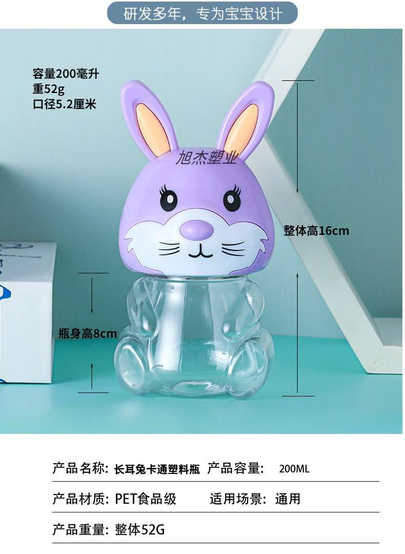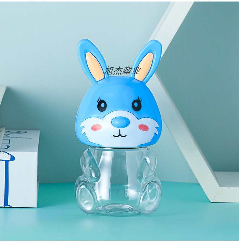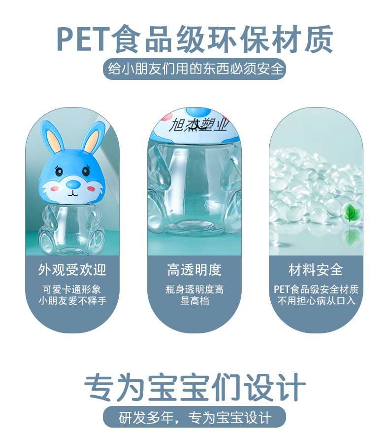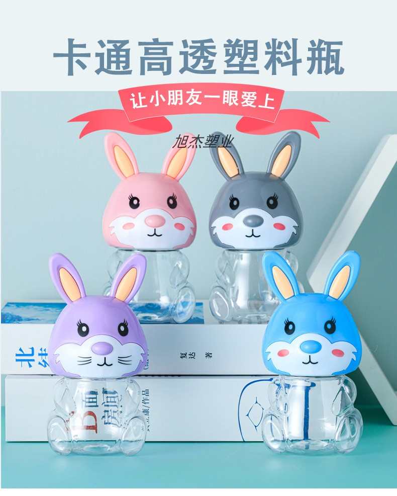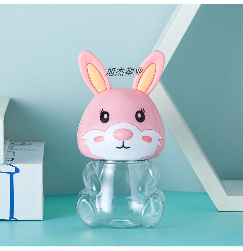 PET可爱兔子卡通透明塑料包装收纳罐食品级零食瓶子包装手提密封