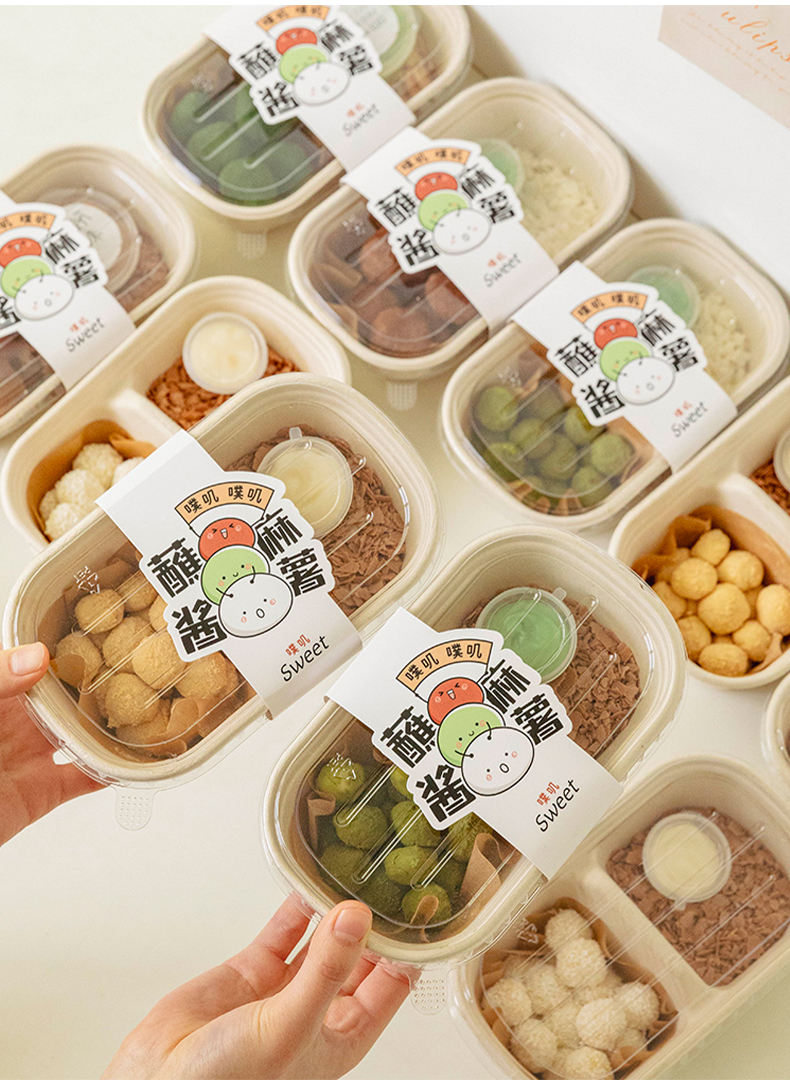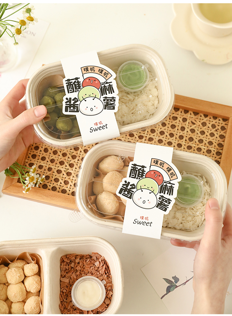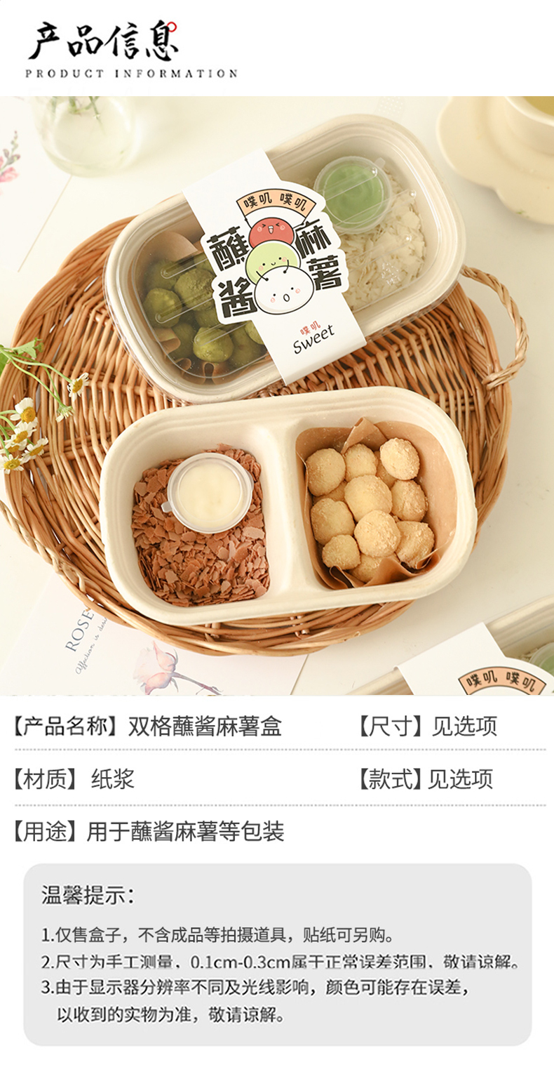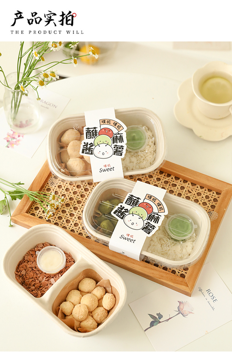 网红糯叽叽蘸酱麻薯包装盒打包盒子麻糍奶盖糕点双格纸浆点心包装