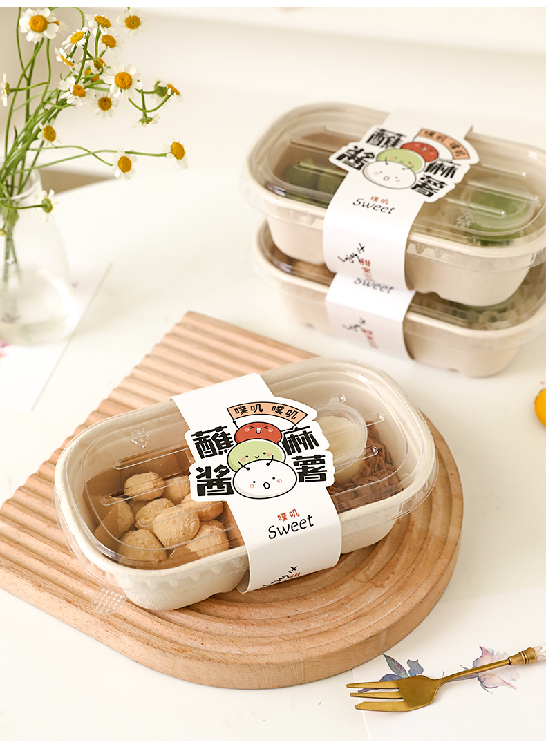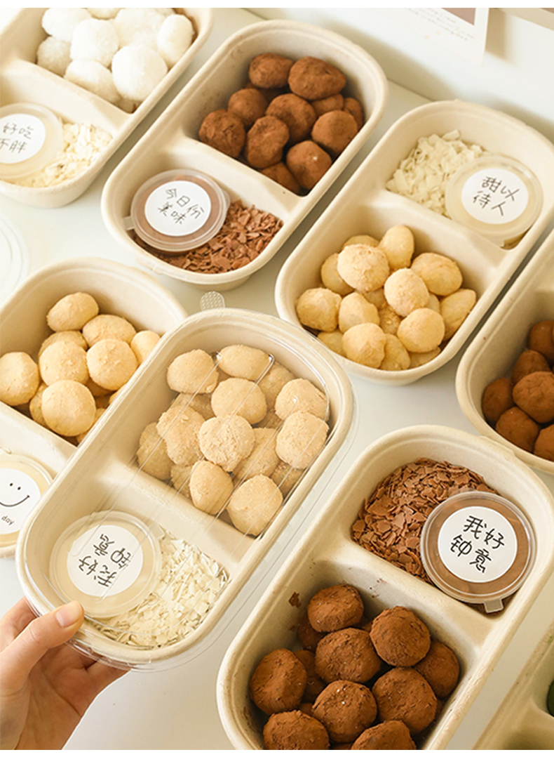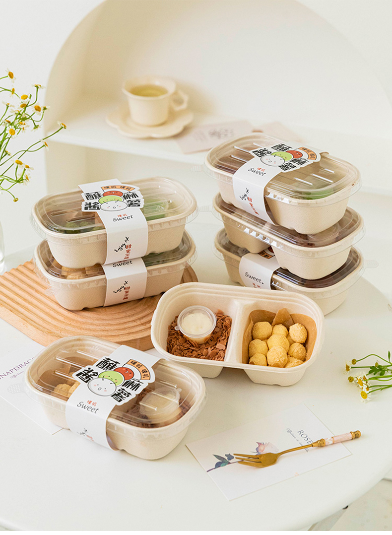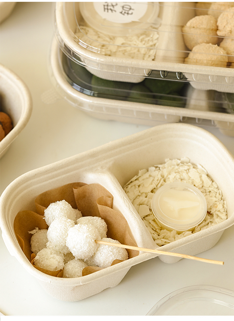 网红糯叽叽蘸酱麻薯包装盒打包盒子麻糍奶盖糕点双格纸浆点心包装