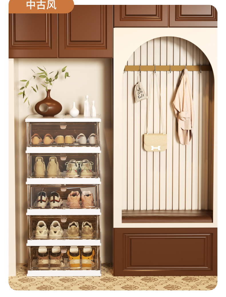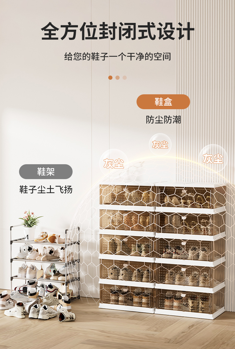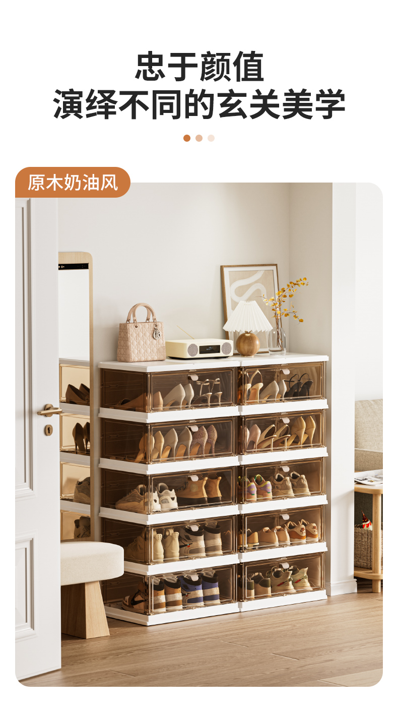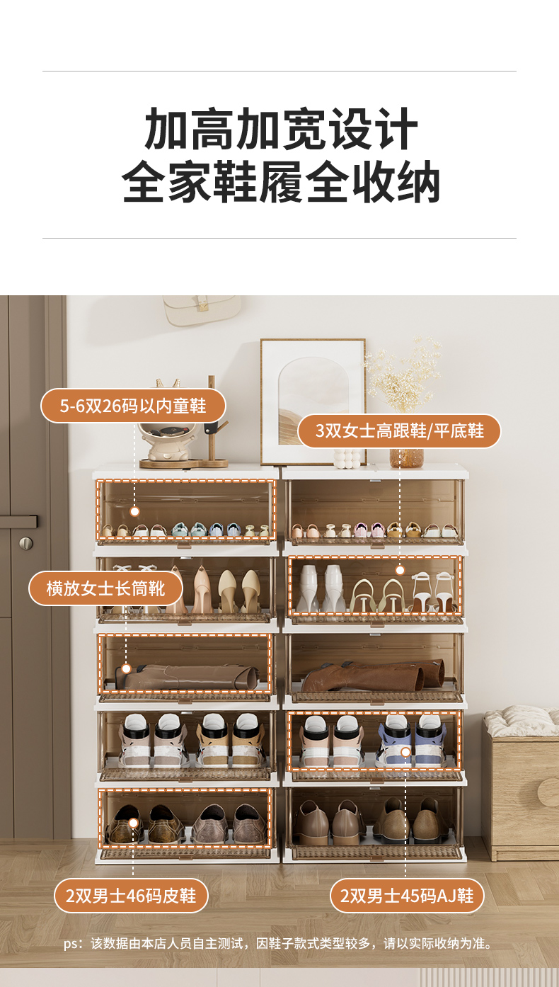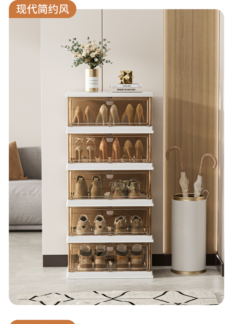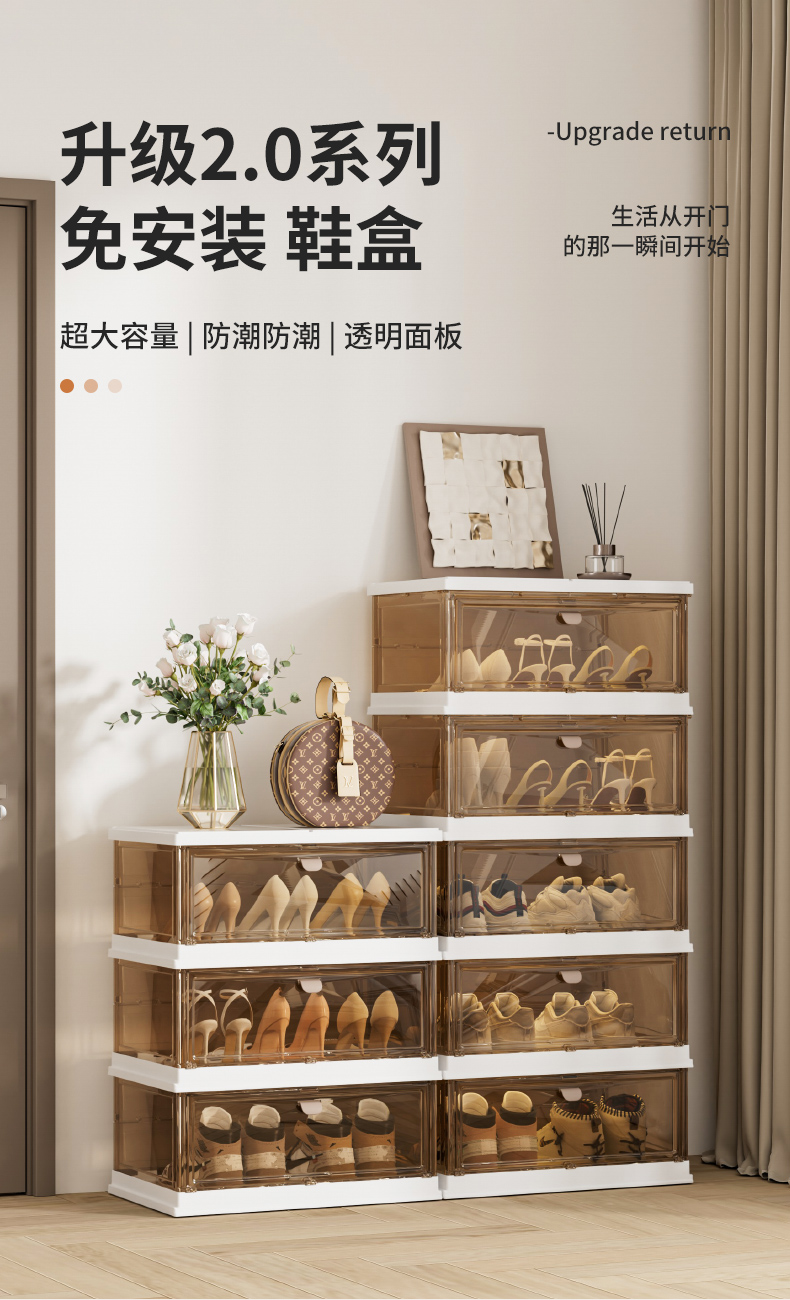 鞋盒收纳盒透明家用门口塑料鞋子收纳盒折叠鞋架一体式免安装鞋柜