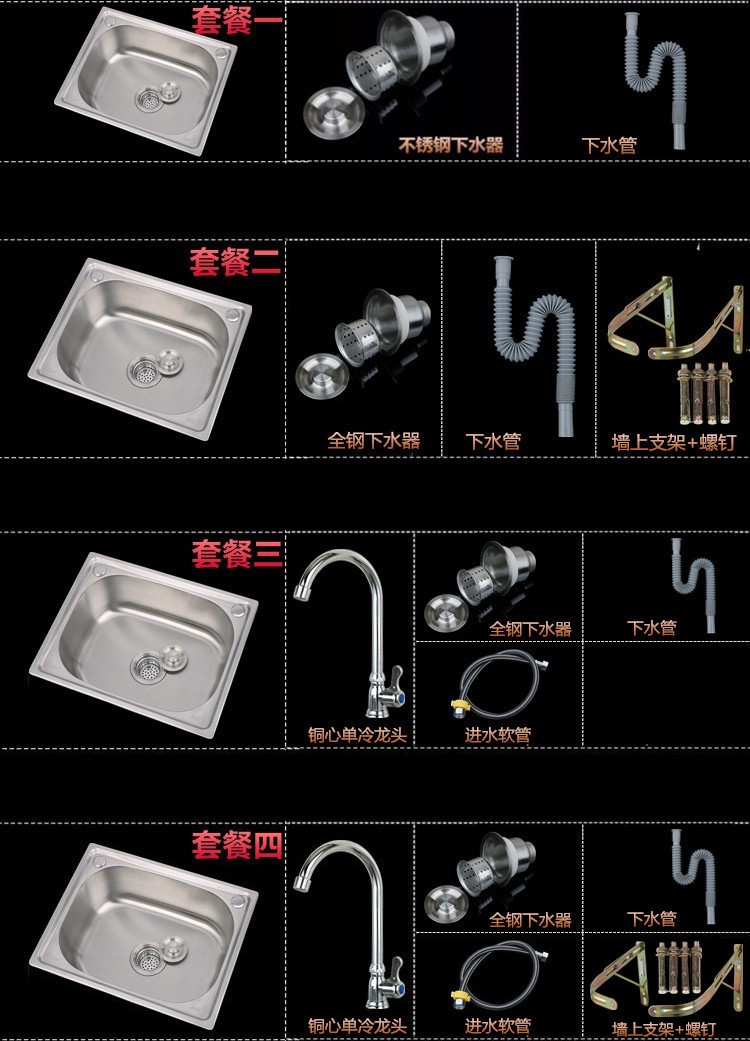 小单槽304不锈钢水槽 厨房洗菜盆洗碗池洗手盆一体水盆套餐包邮