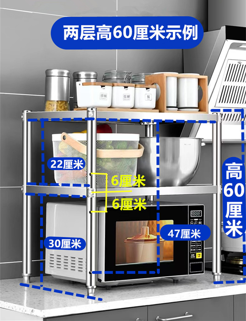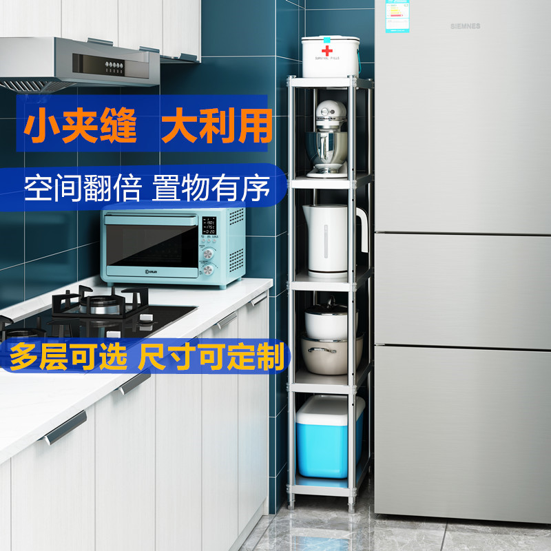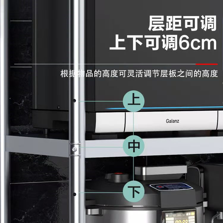 不锈钢厨房置物架落地家用货架多层微波炉储物架夹缝收纳电饭煲架