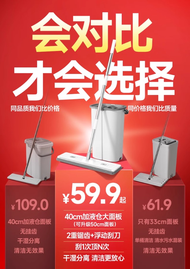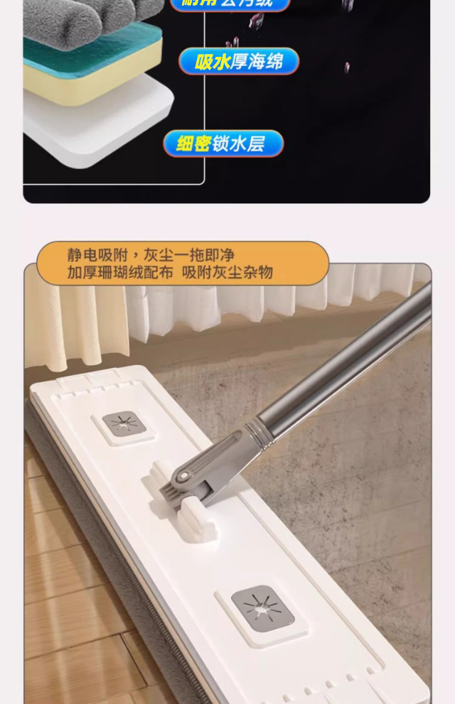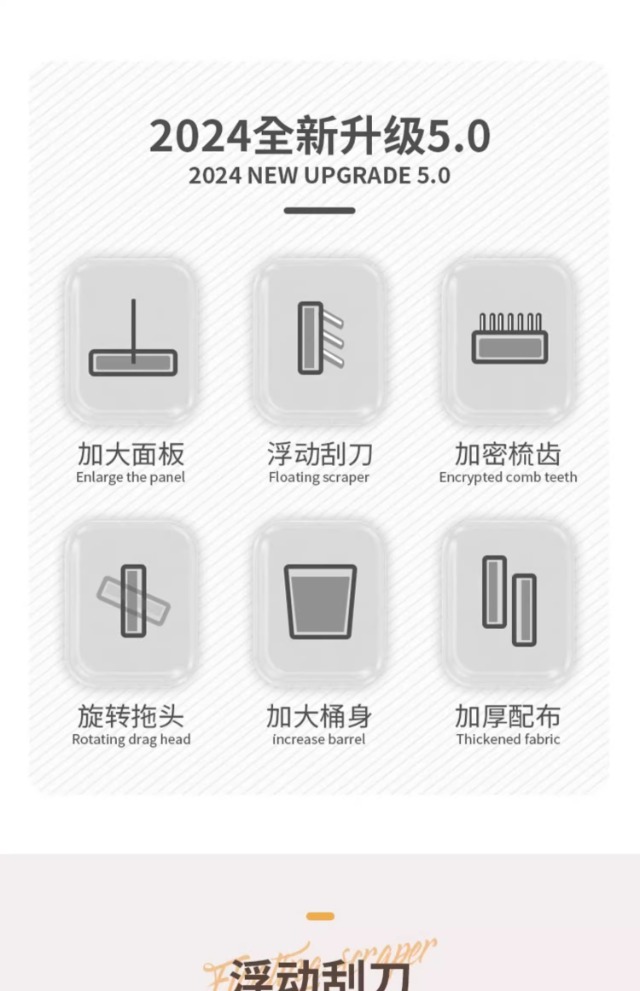 张记2024新款免手洗拖把拖净平板墩布刮刮乐拖地懒人神器