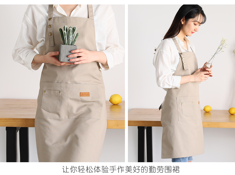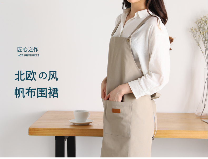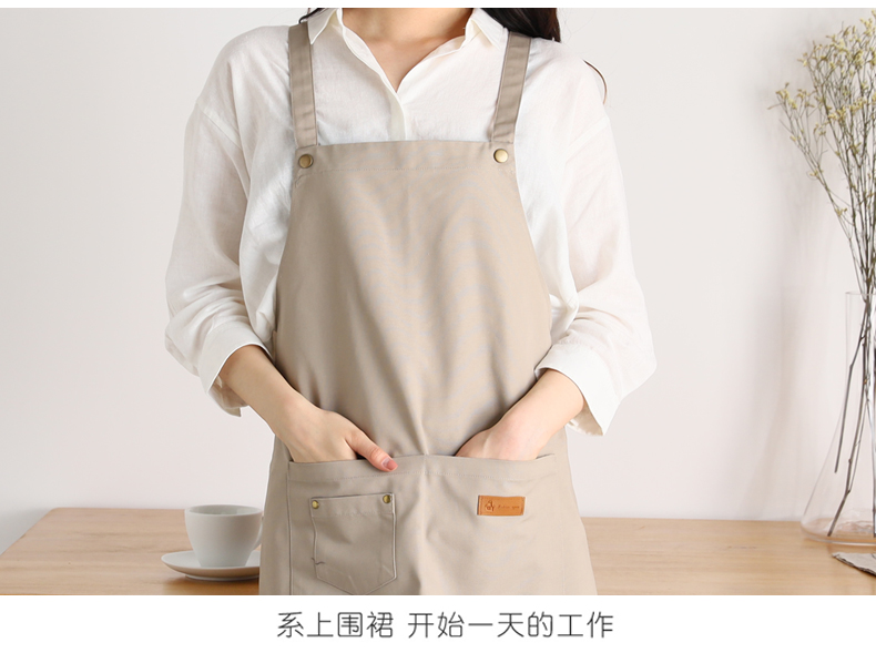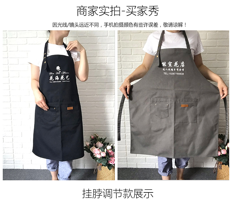高端围裙定制logo印字花艺美甲奶茶烘焙厨房餐饮专用帆布工作服女