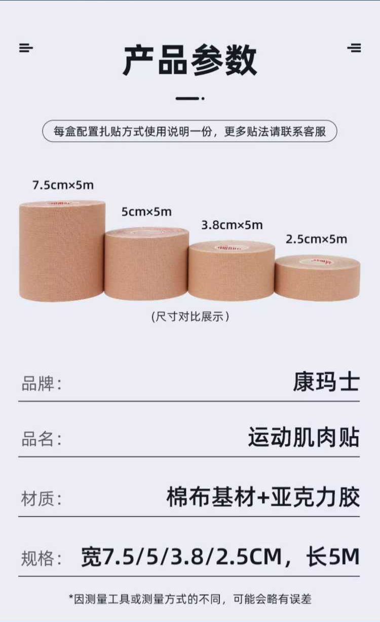 康玛士运动肌贴肌肉贴肌内效贴布膝盖绷带运动员专用肌肉拉伤胶带