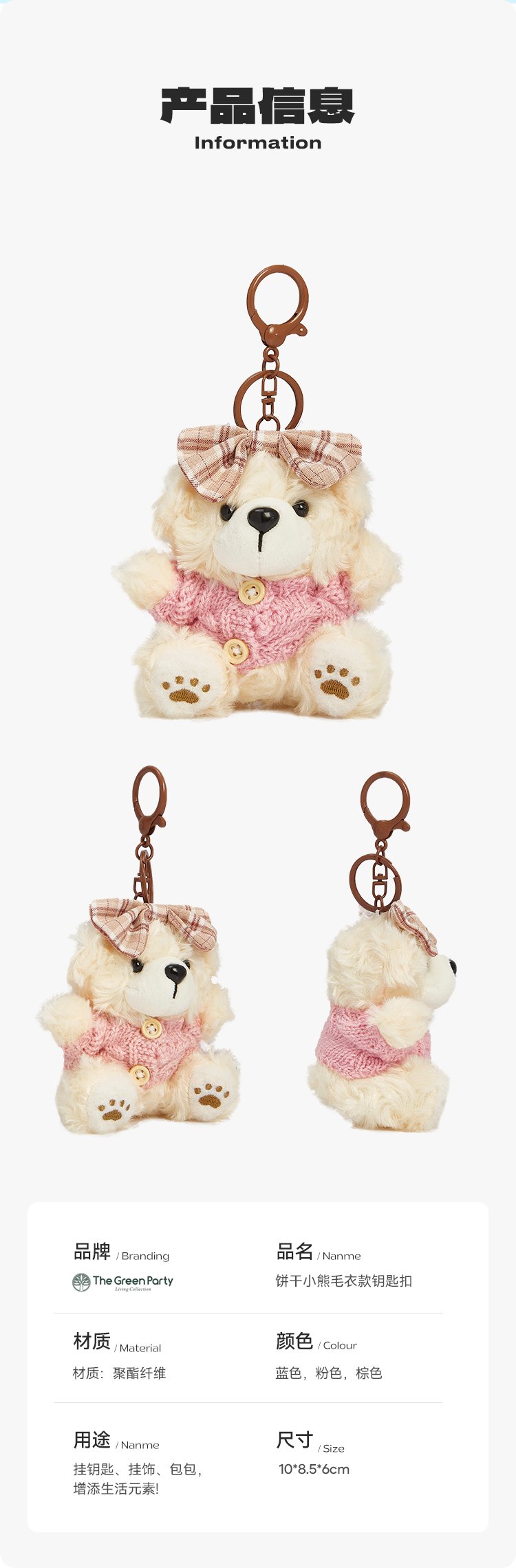 绿光派对饼干小熊挂件女学生书包挂饰伶俐可爱钥匙扣毛绒玩具