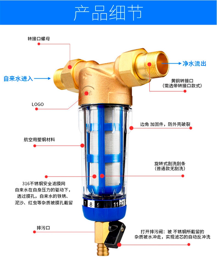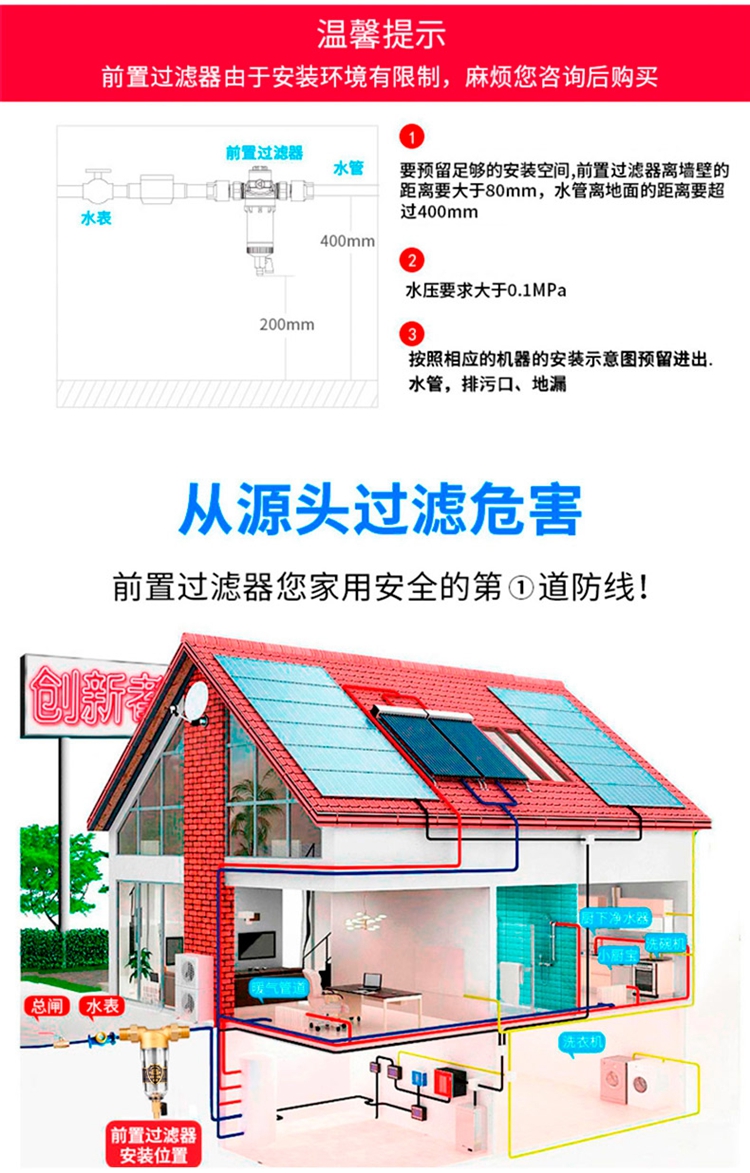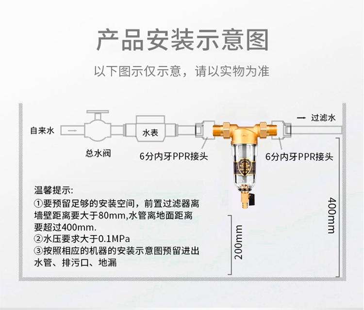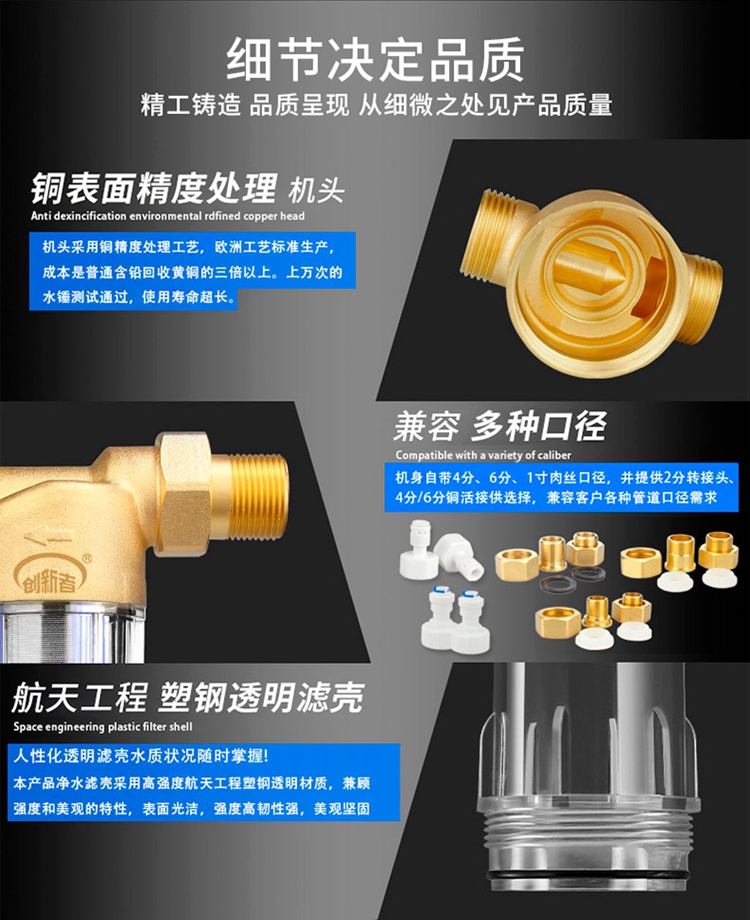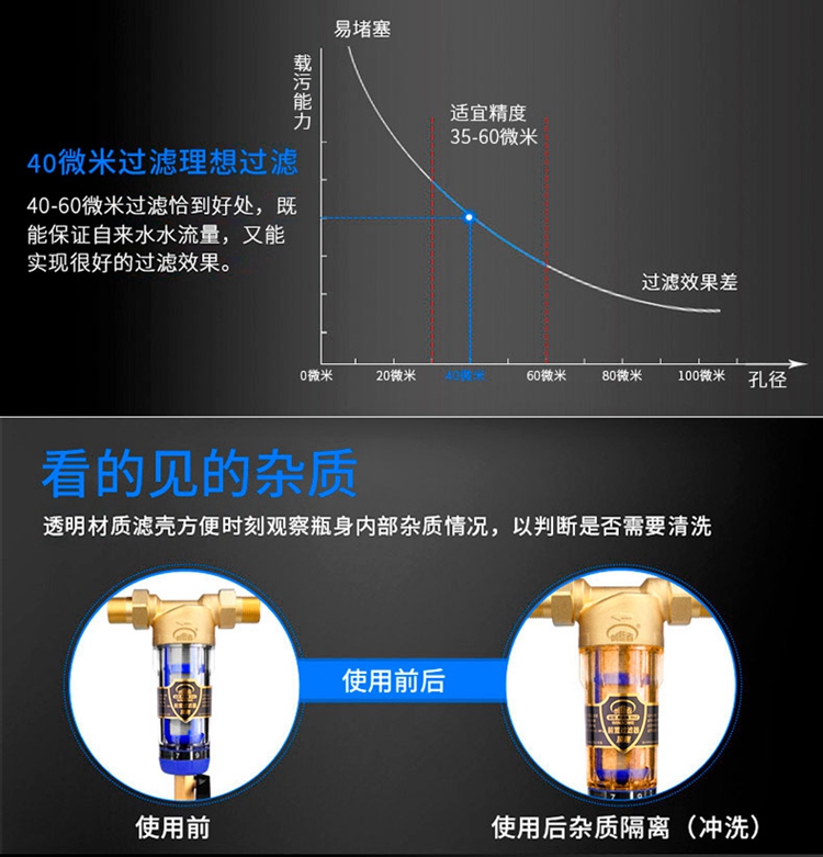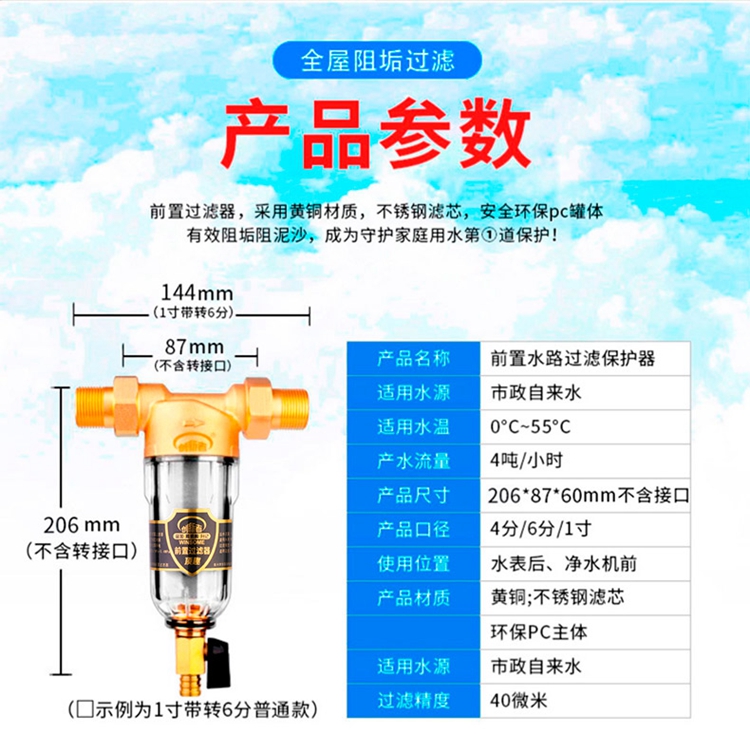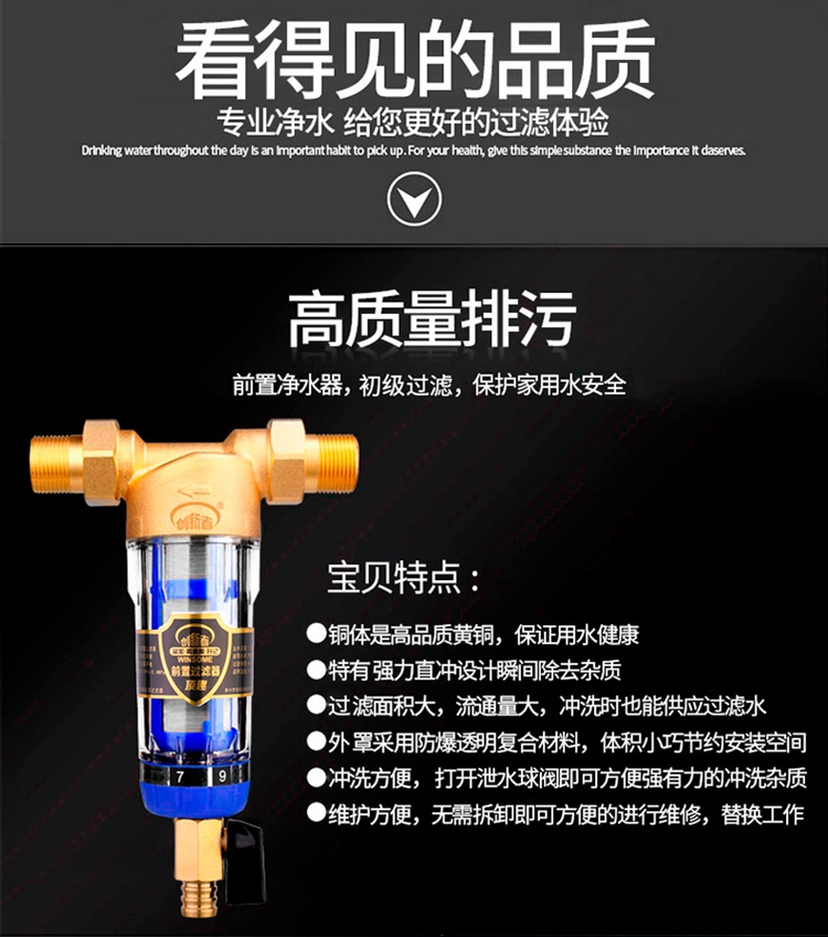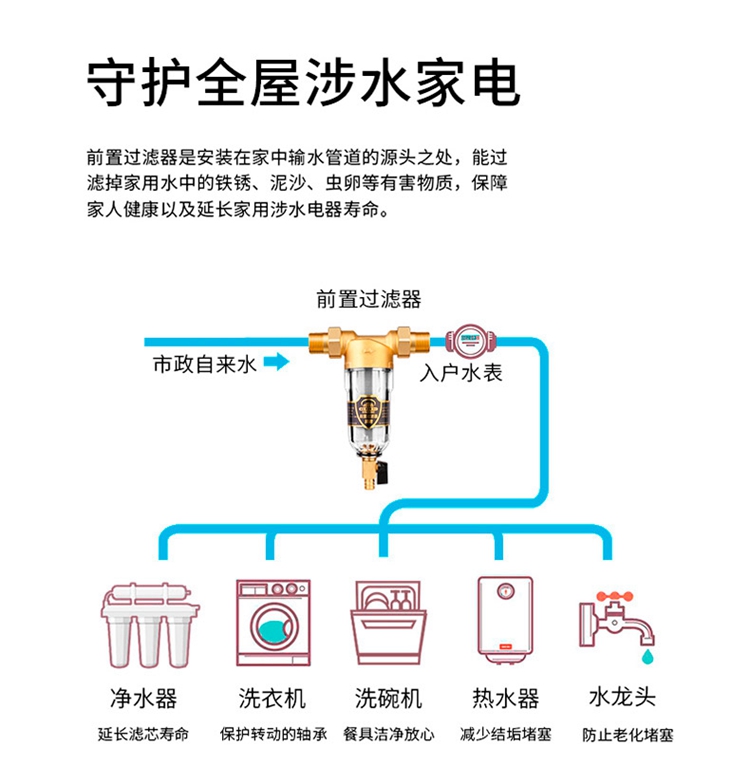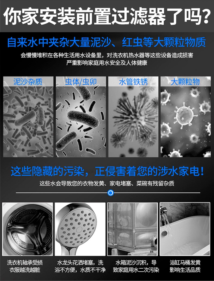 前置过滤器大流量自来水井水龙头净水器家用全屋中央管道滤水器