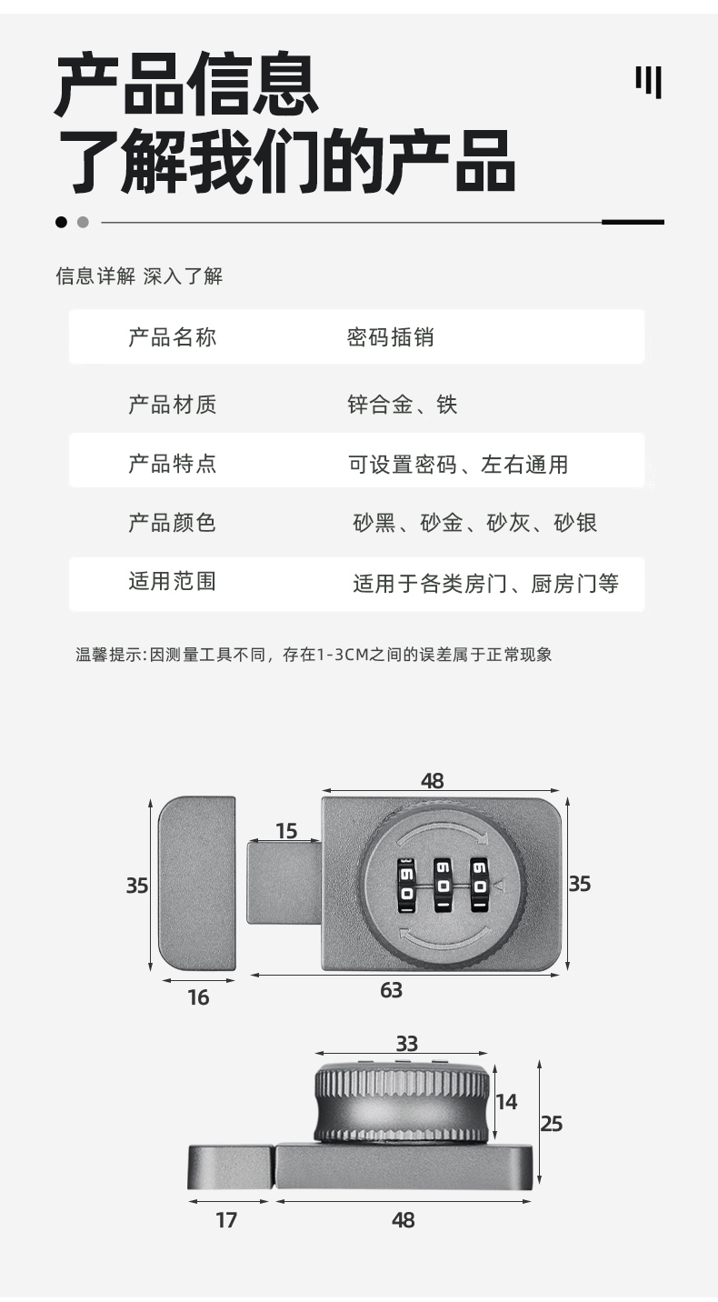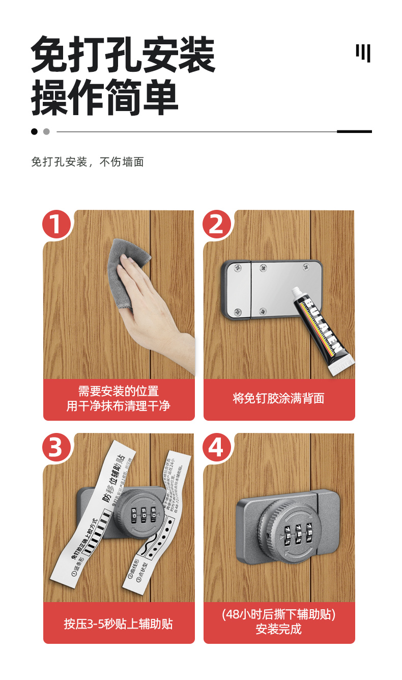 抽屉锁免打孔柜子锁柜门锁家用密码锁鞋柜抽屉文件柜储物柜专用锁