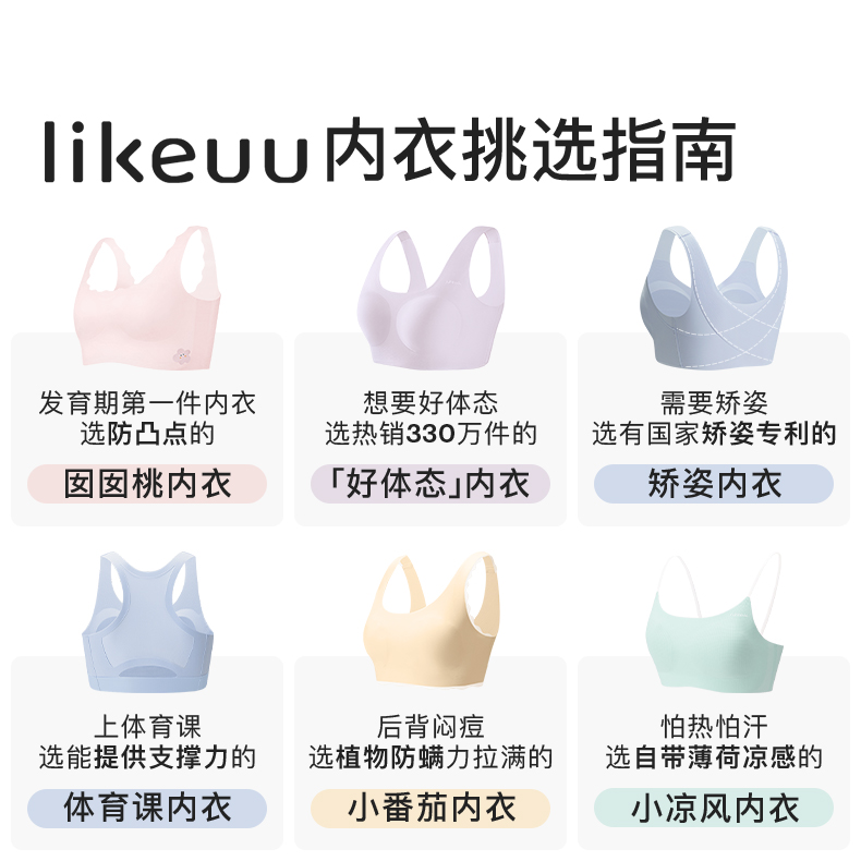 likeuu儿童内衣学生初中女大童青春发育期高中少女文胸小背心薄