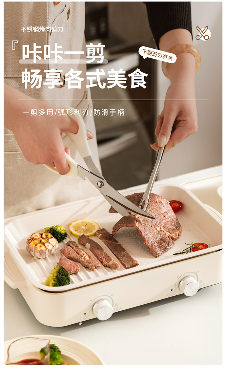 摩登主妇烧烤必备工具三件套烤肉剪刀夹子套装厨房专用牛排剪肉刀