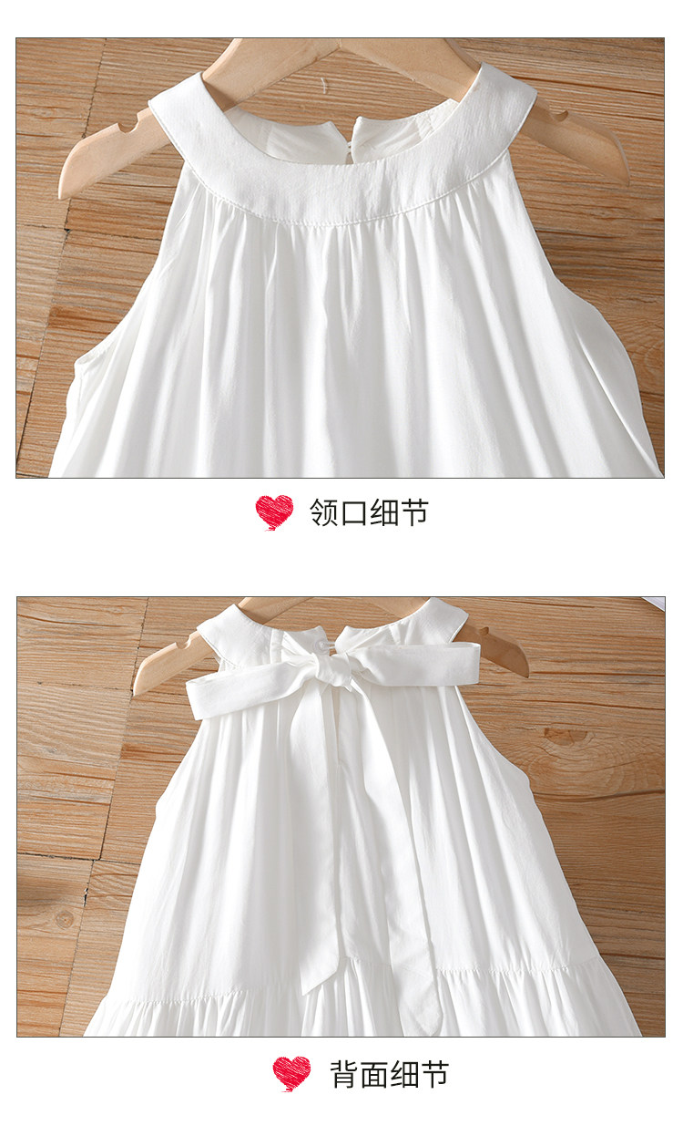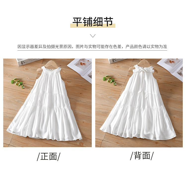 法式茶歇气质亲子装母女夏季挂脖沙滩裙海边度假可扎染白色连衣裙