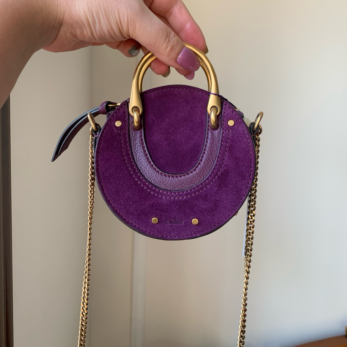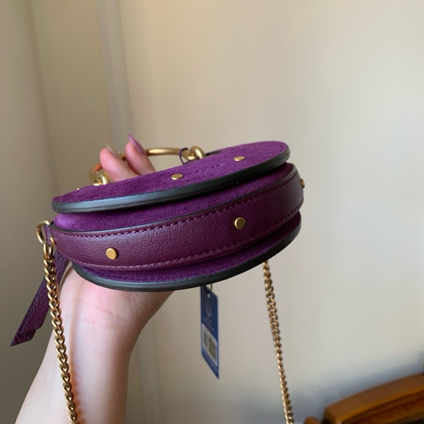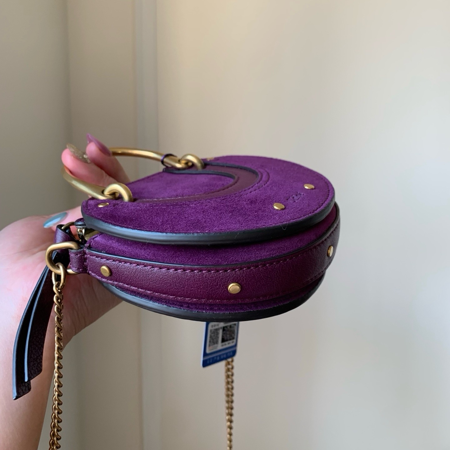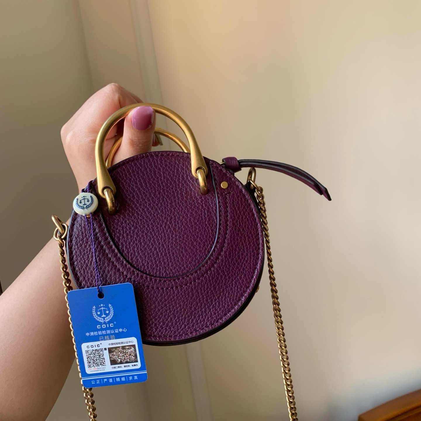 99新克洛伊mini紫色牛皮金扣斜挎圆饼包直径12cm