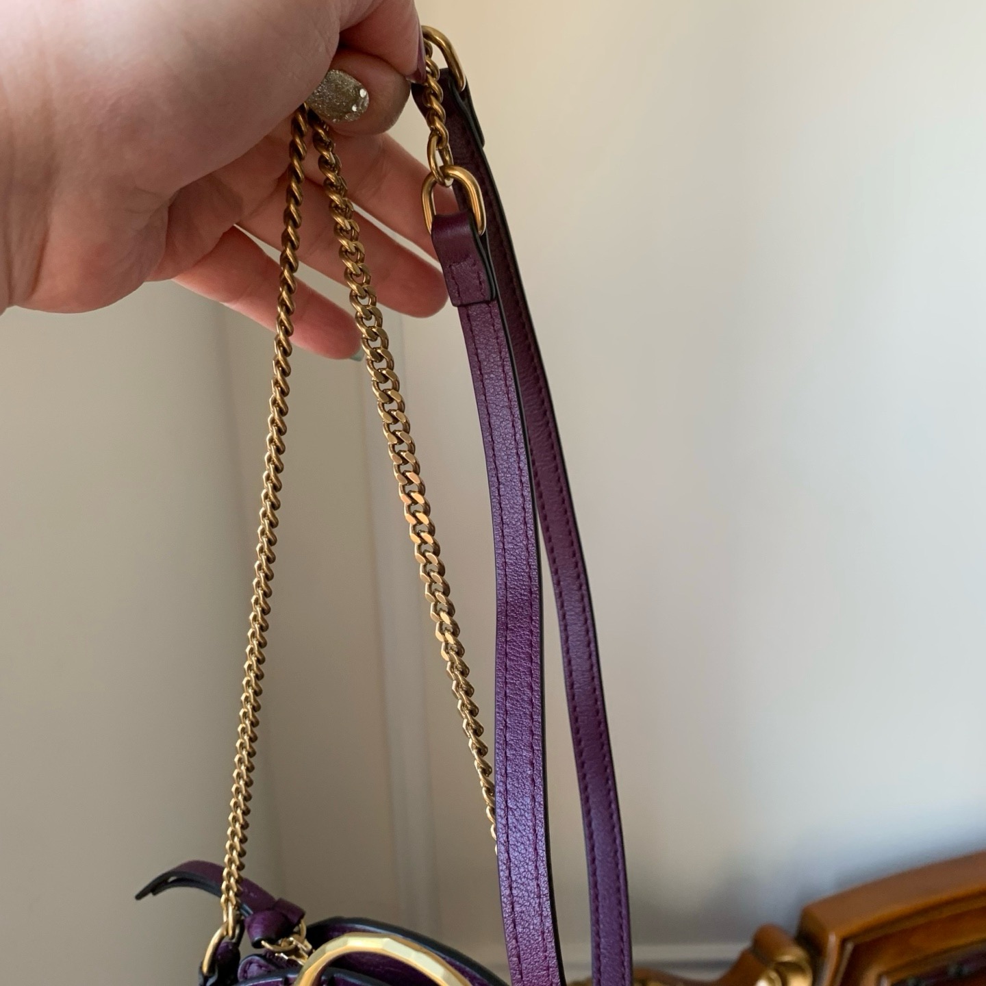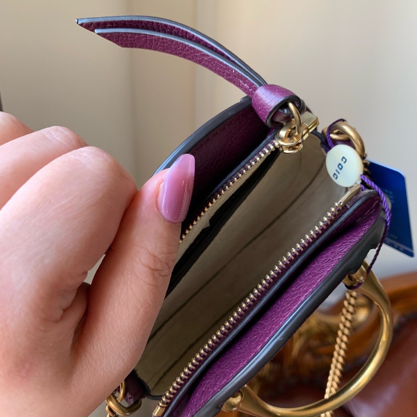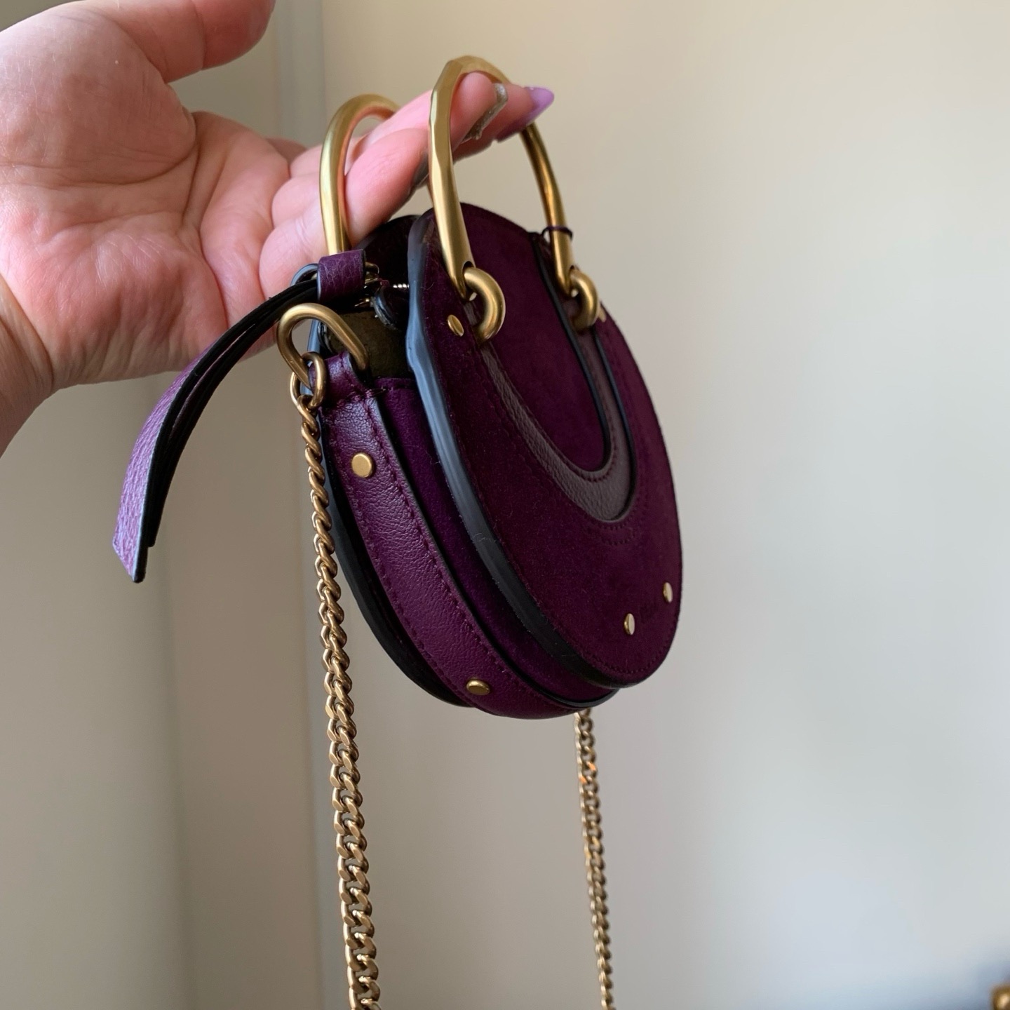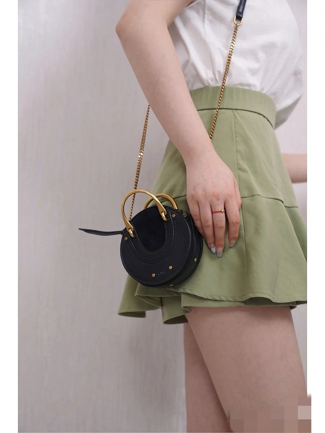 99新克洛伊mini紫色牛皮金扣斜挎圆饼包直径12cm