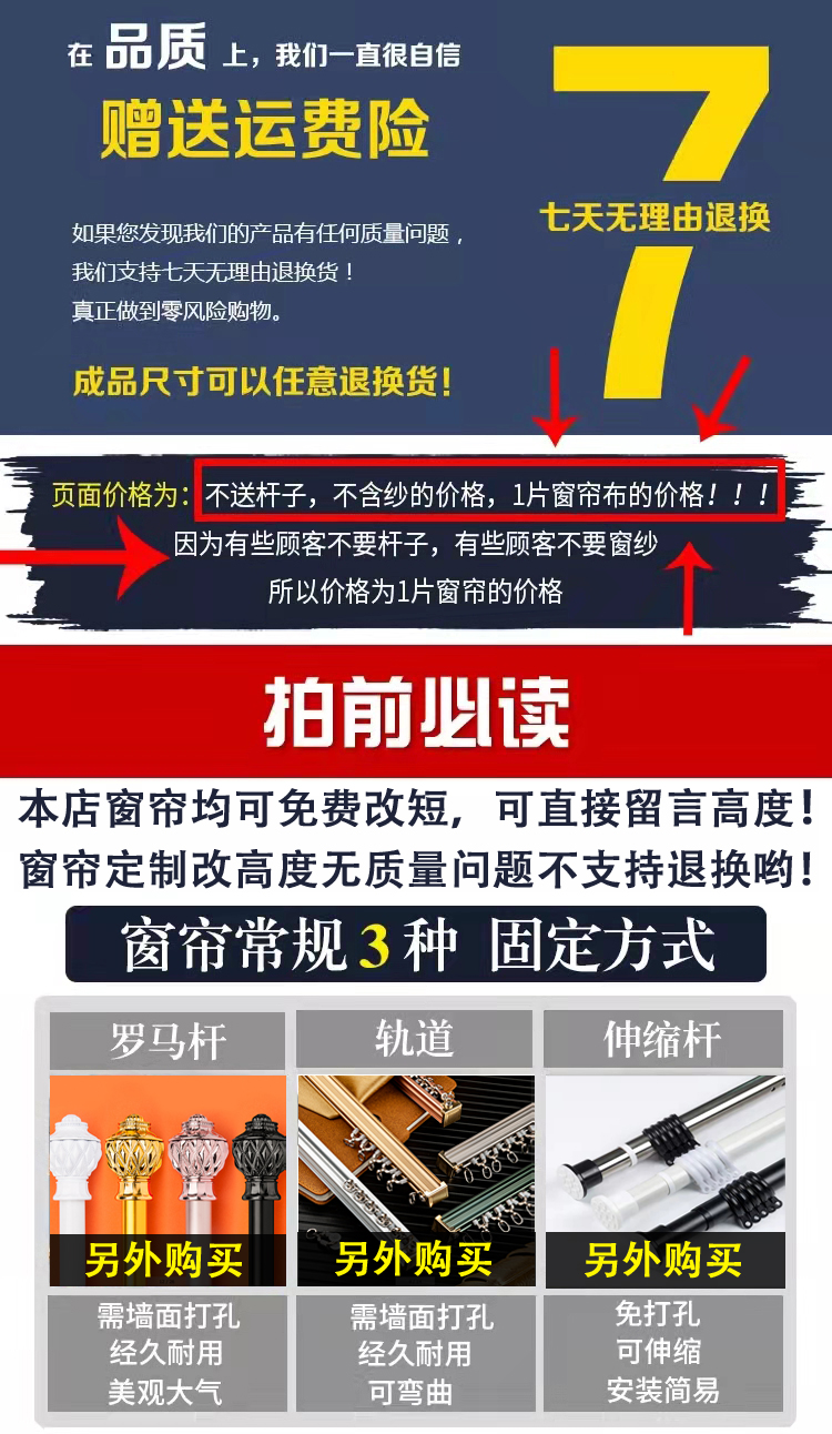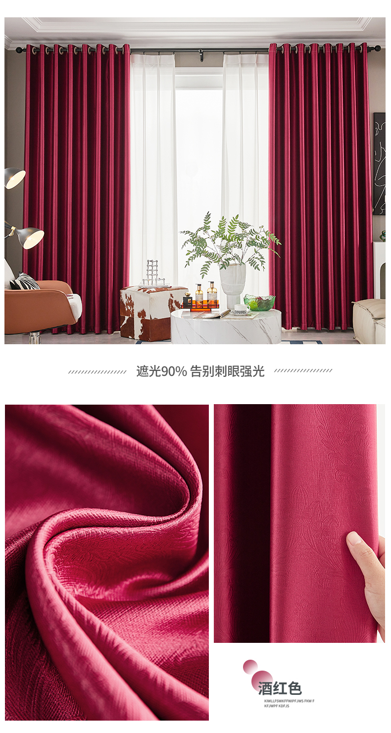 窗帘遮光2025新款卧室客厅阳台飘窗遮阳隔热防晒窗帘布加高挂钩式