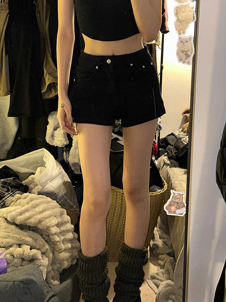 美式y2k辣妹千禧风热裤女大码复古高腰修身显瘦刺绣a字牛仔短裤潮