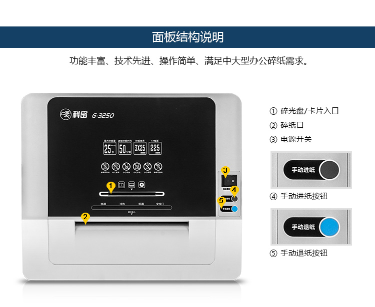 科密G-3250 45L大吞吐 大容量 25张碎纸 高端商务办公碎纸机3685/3350/100k/3450