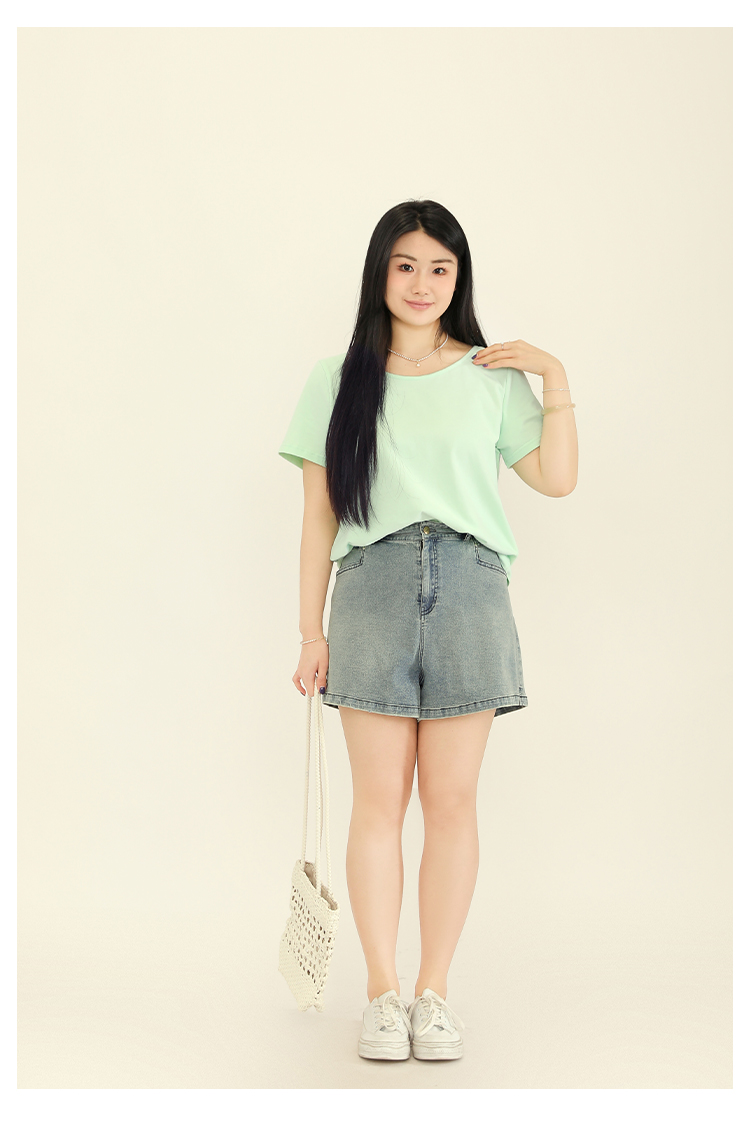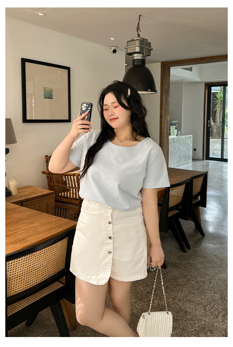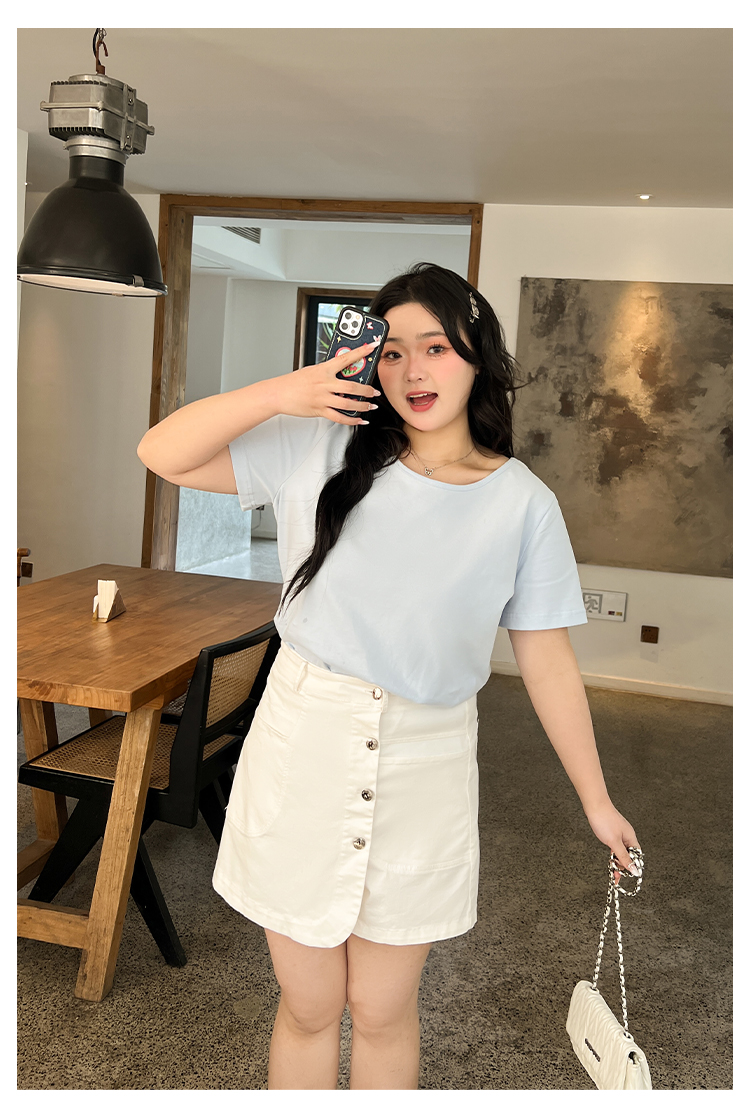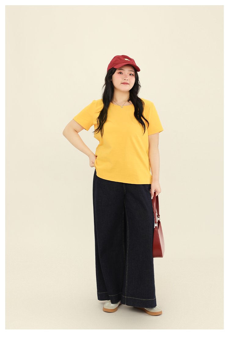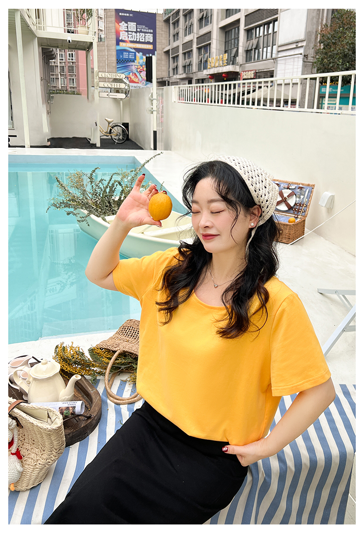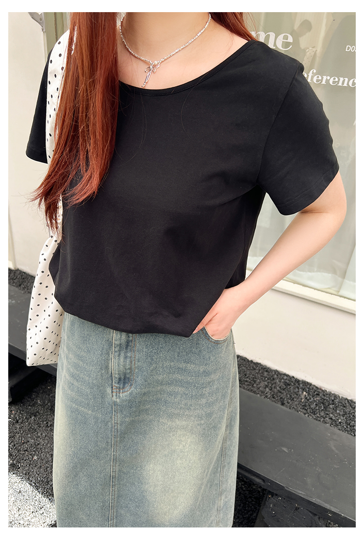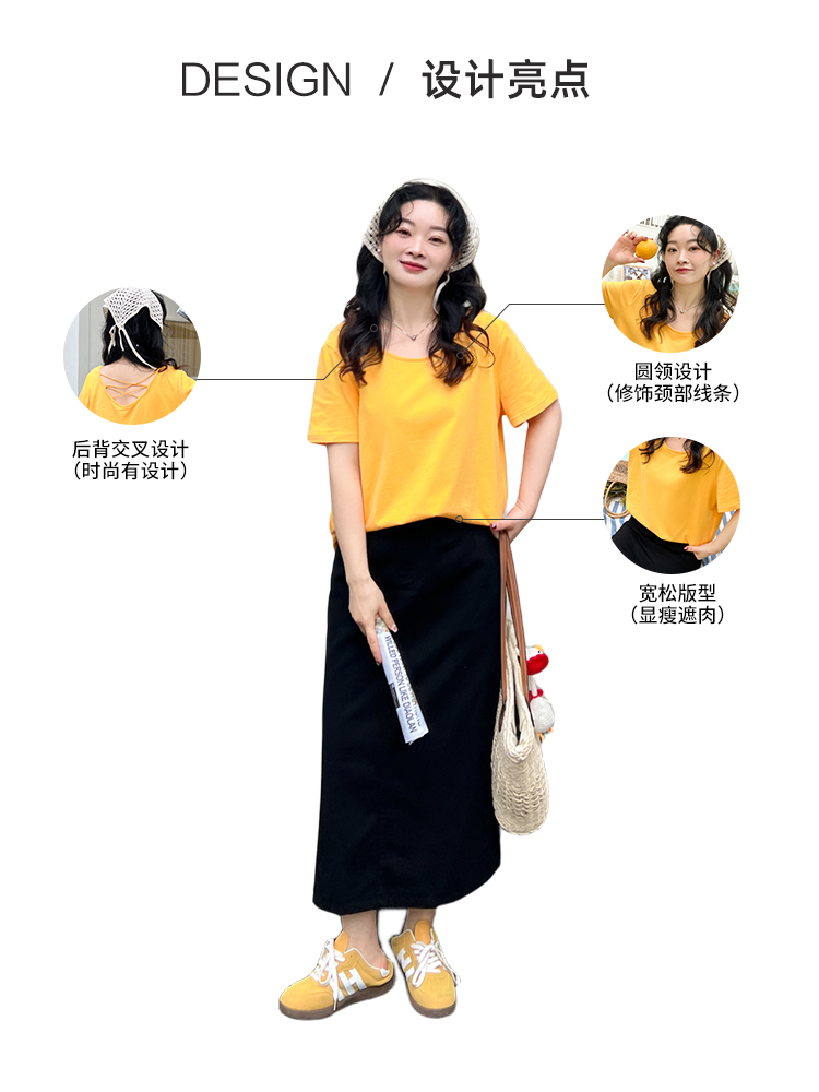 DM100大码百分百2025夏新款女装休闲打底多色宽松上衣正肩短袖T恤