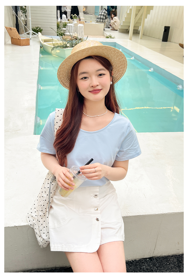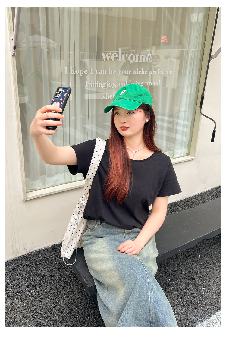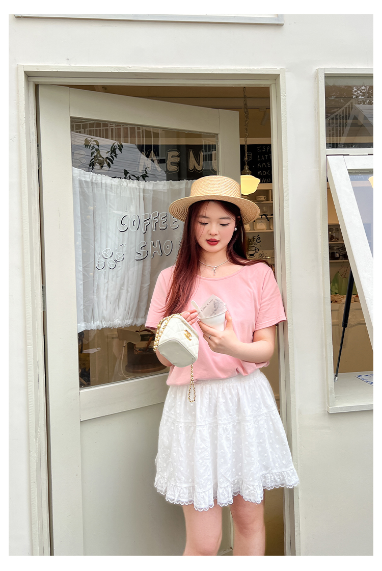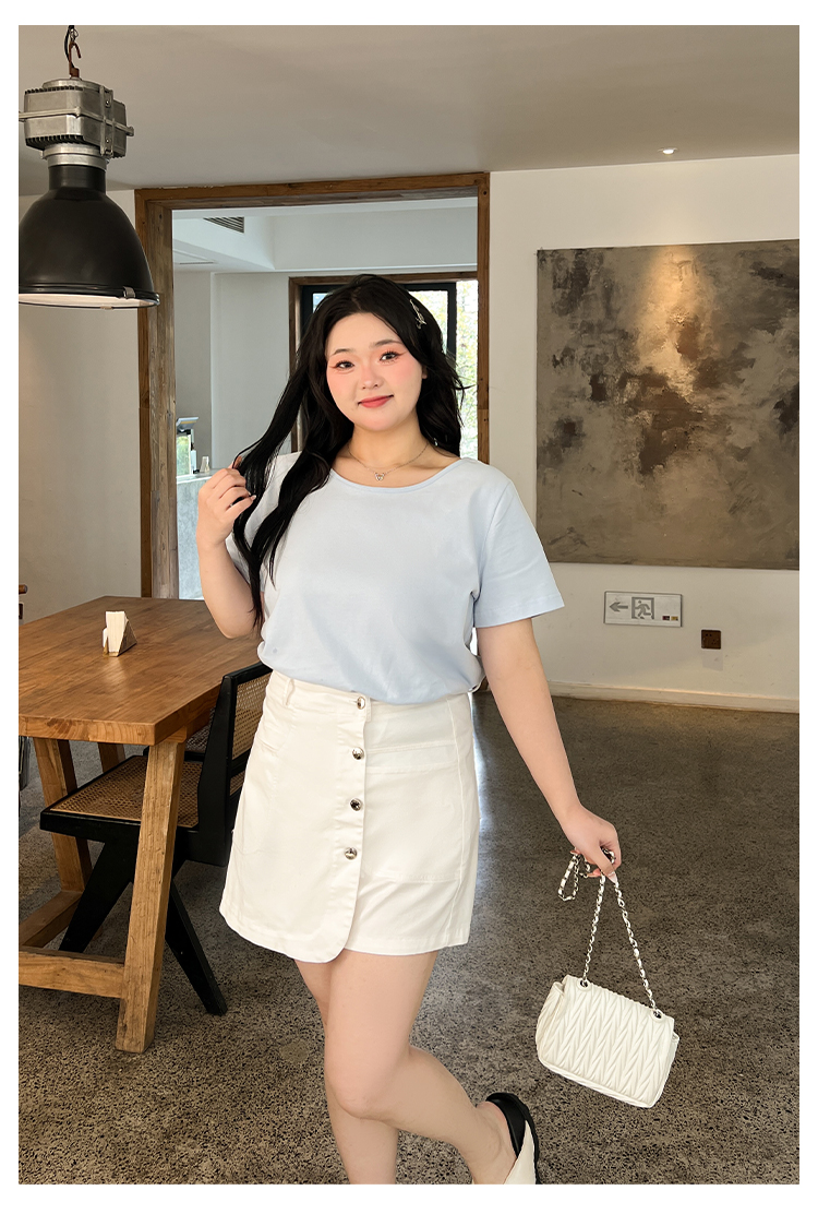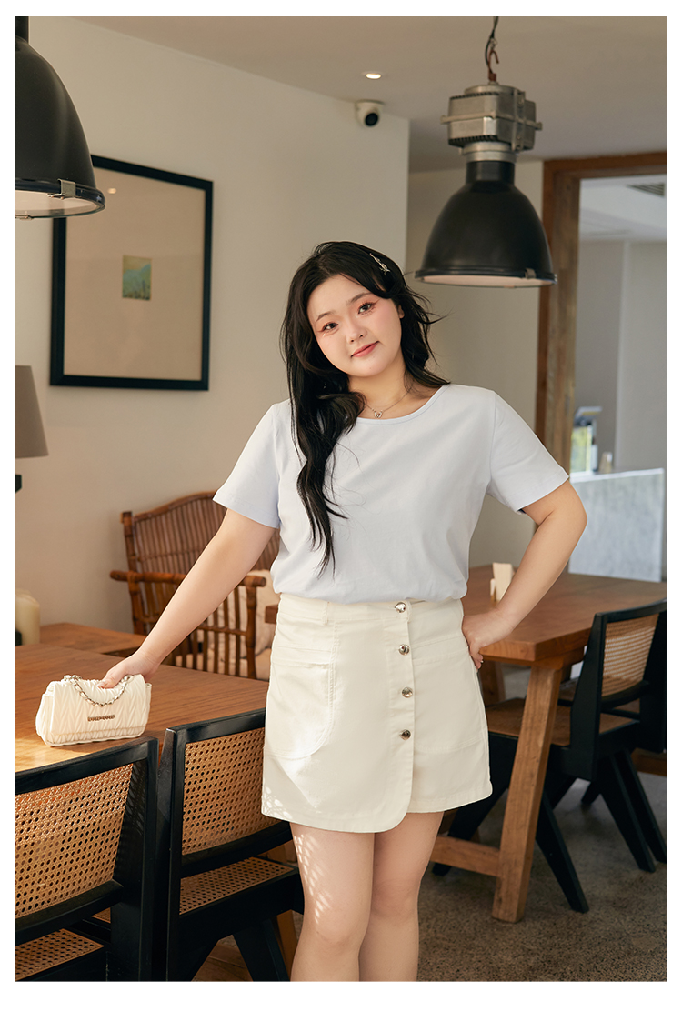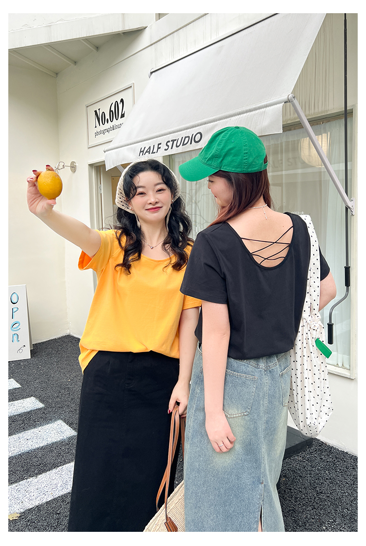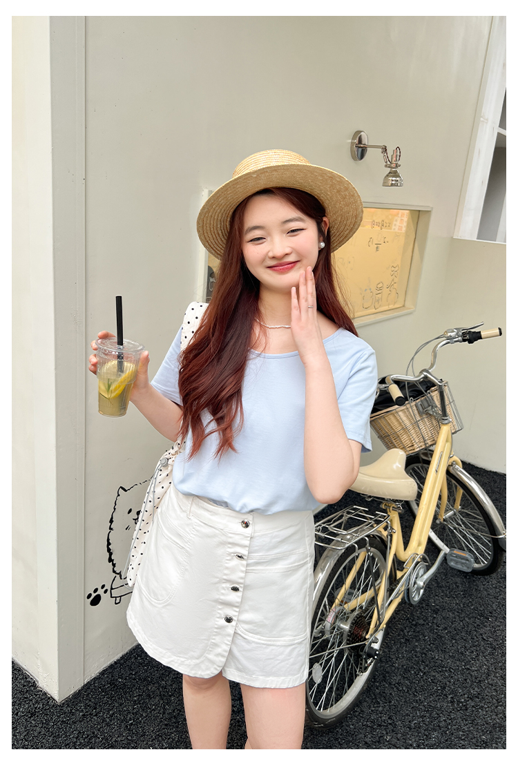 DM100大码百分百2025夏新款女装休闲打底多色宽松上衣正肩短袖T恤