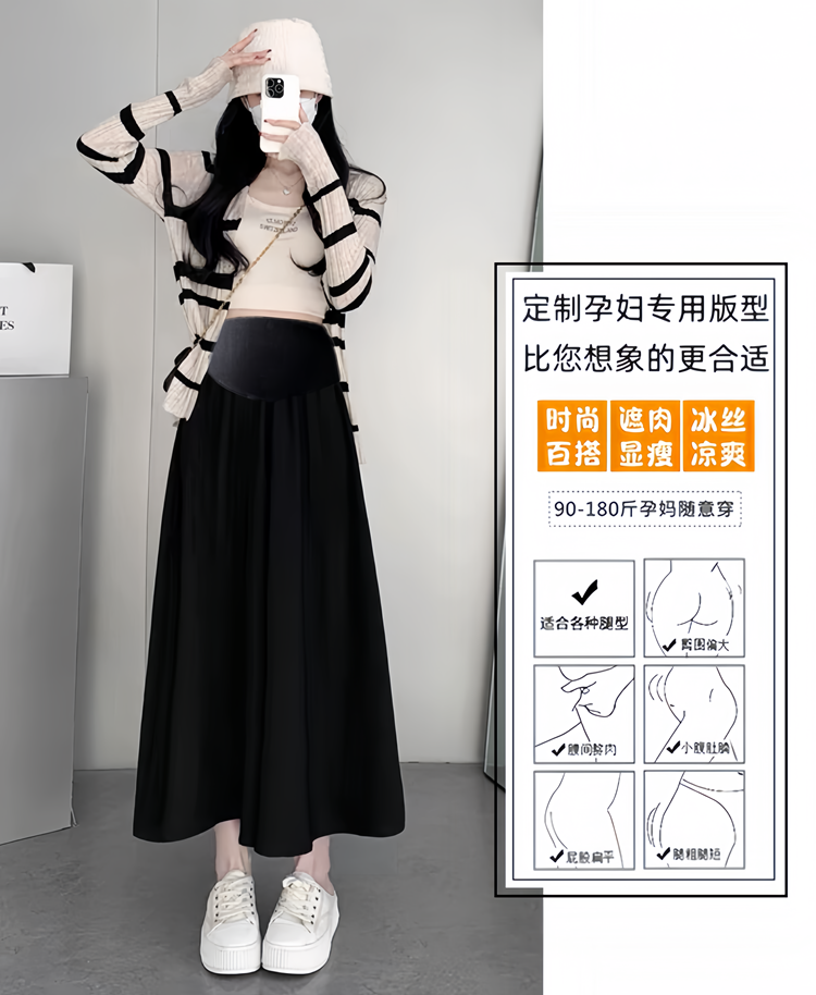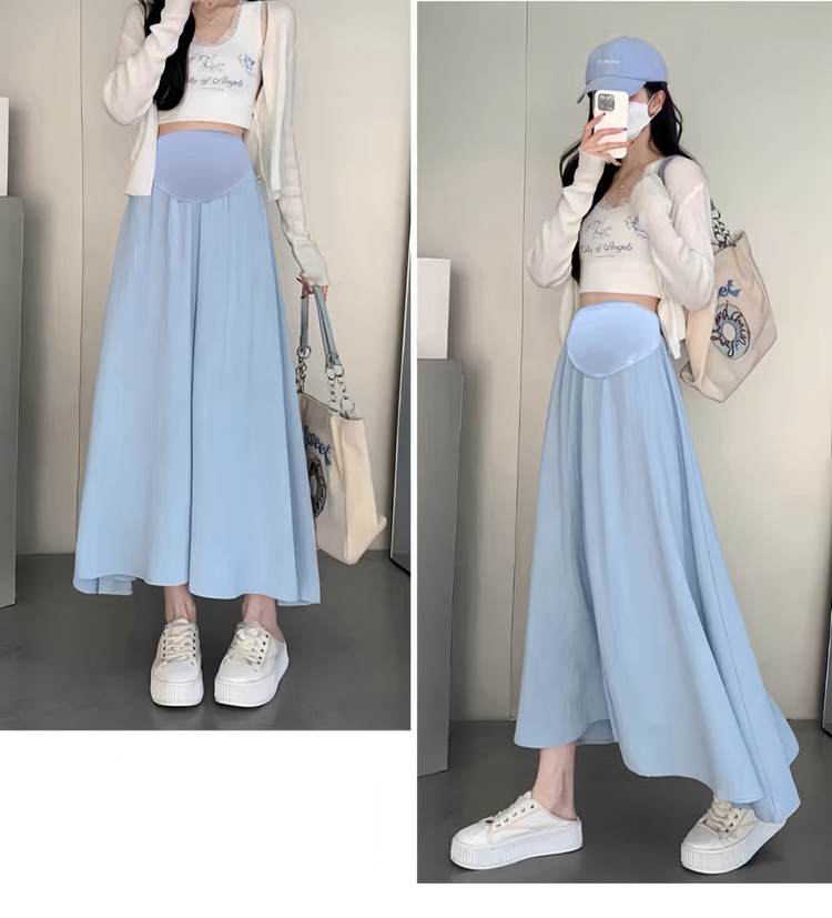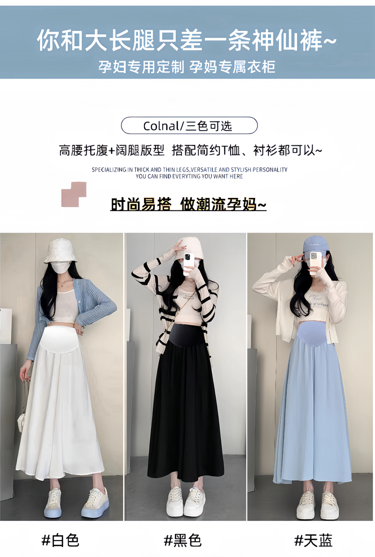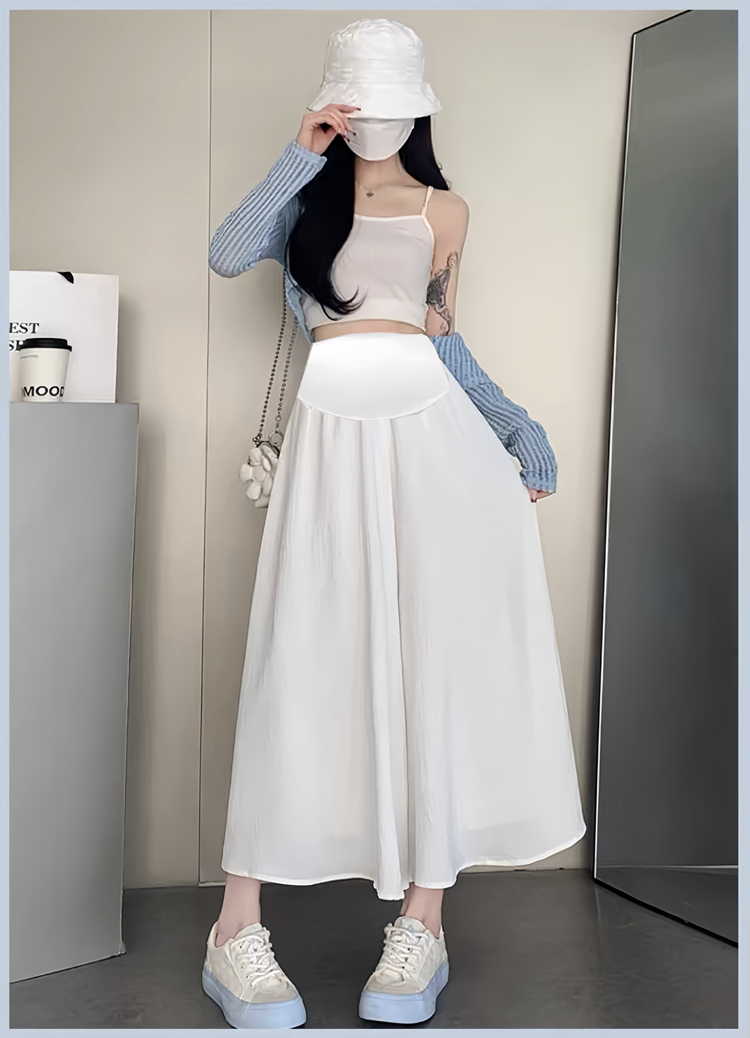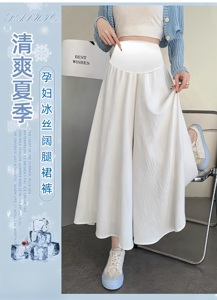 孕妇裤子女夏季薄款外穿白色2025新款九分裤冰丝小个子阔腿裤夏装