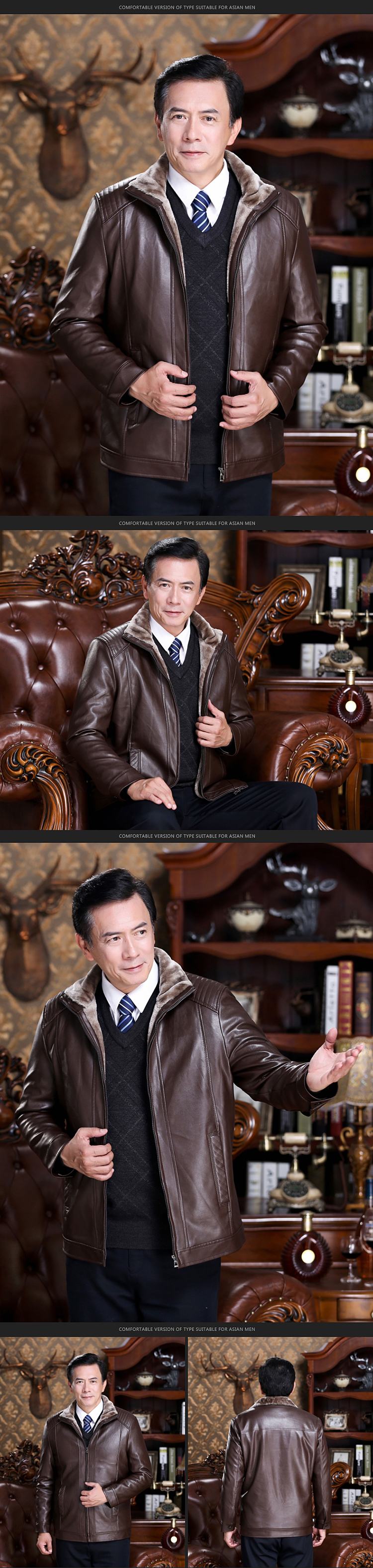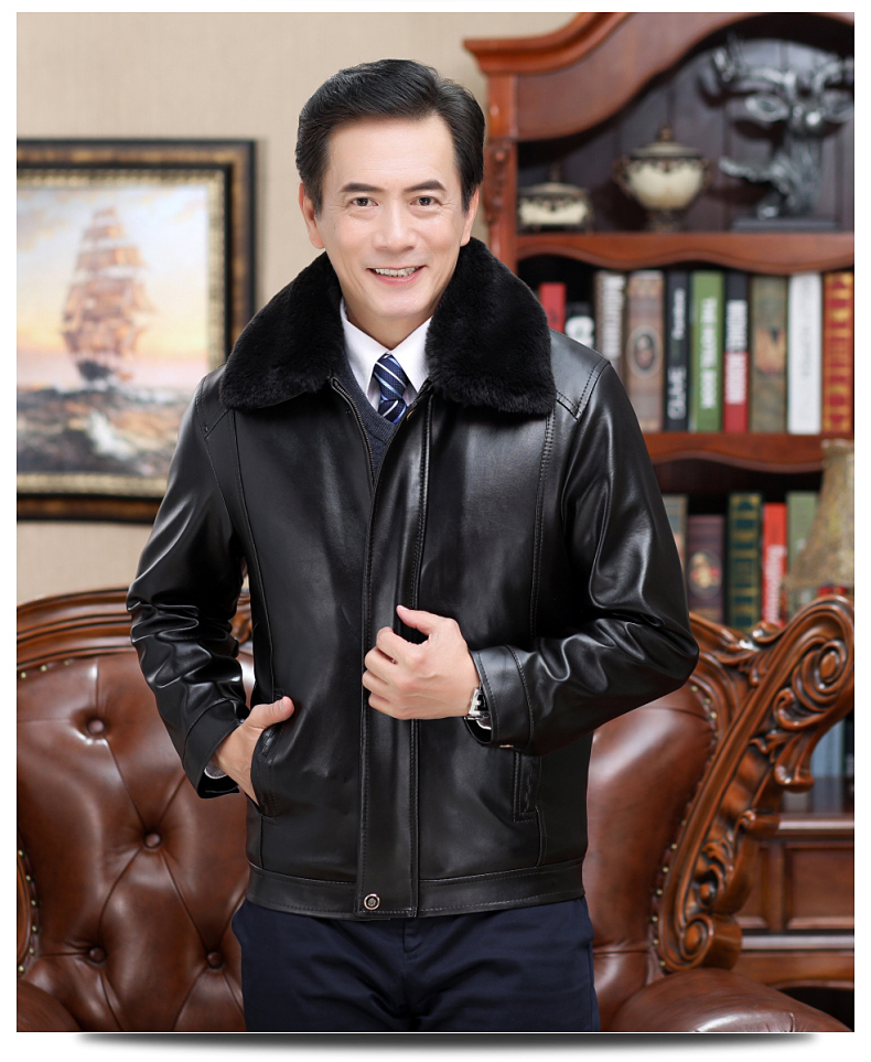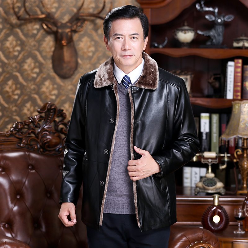 中老年皮衣男加绒加厚爸爸装秋冬装外套40岁50父亲中年男士皮夹克