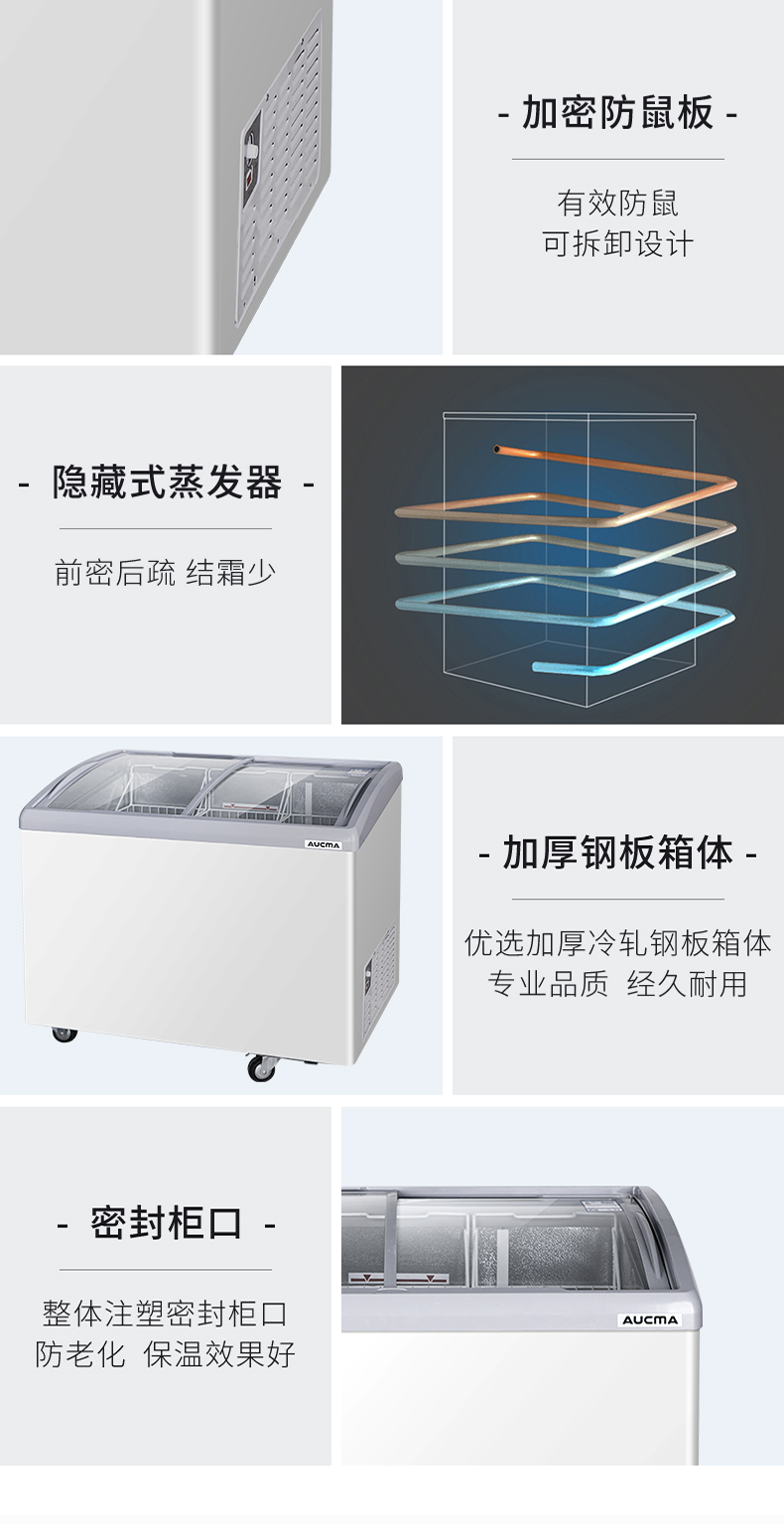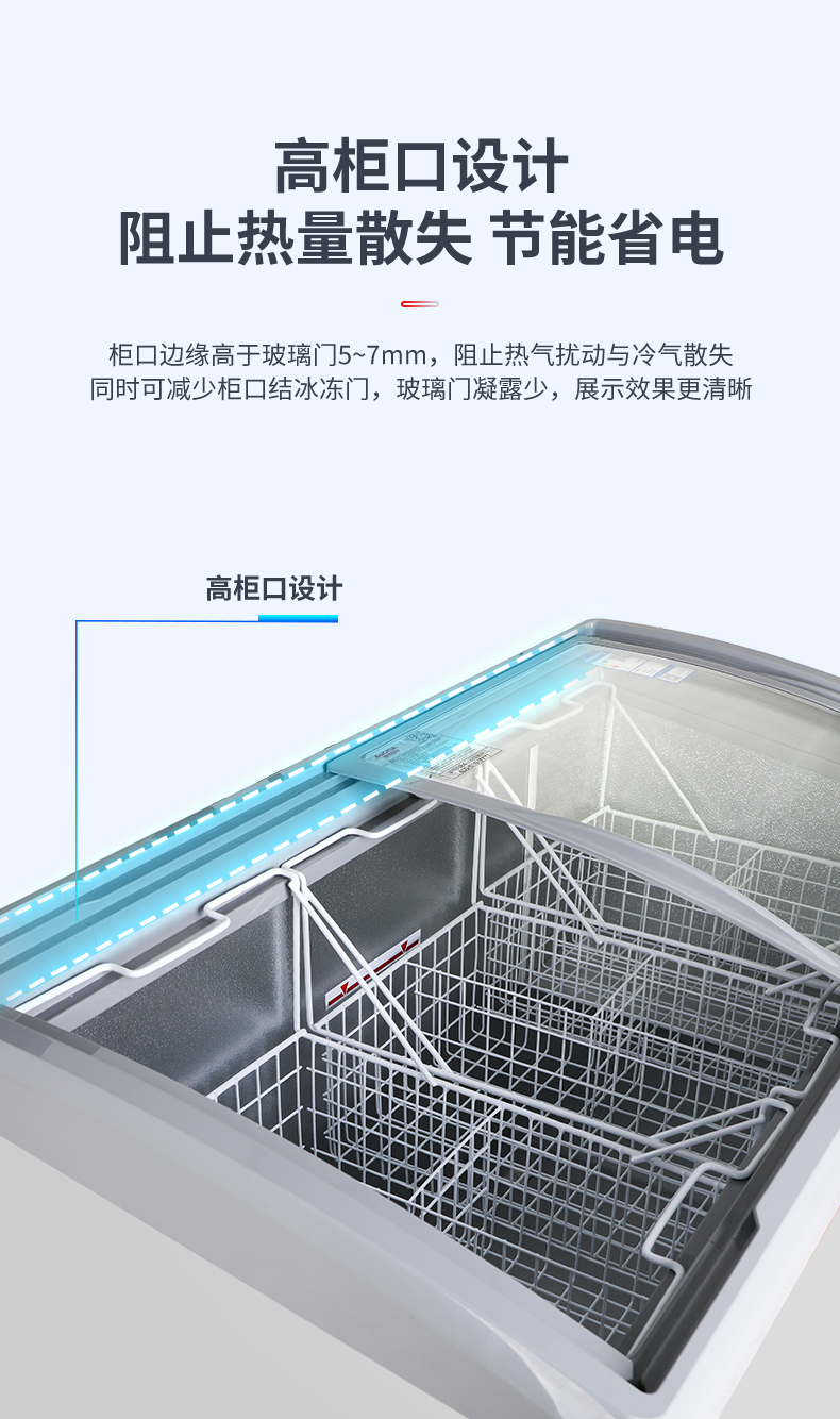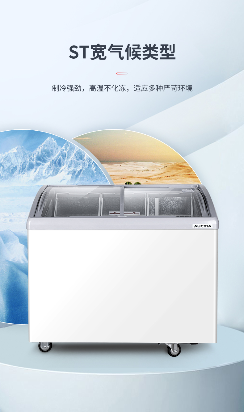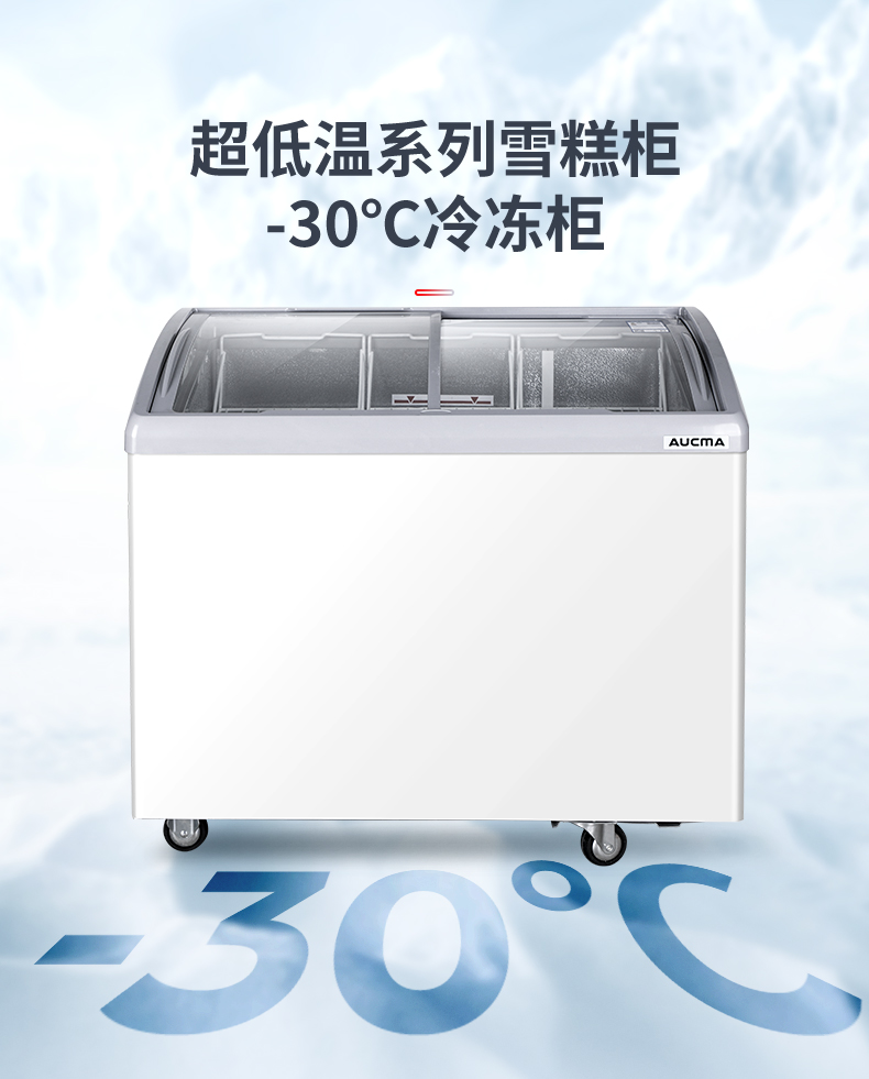 澳柯玛280升雪糕柜超市商用冷柜冰柜岛柜冰淇淋弧形玻璃保鲜柜