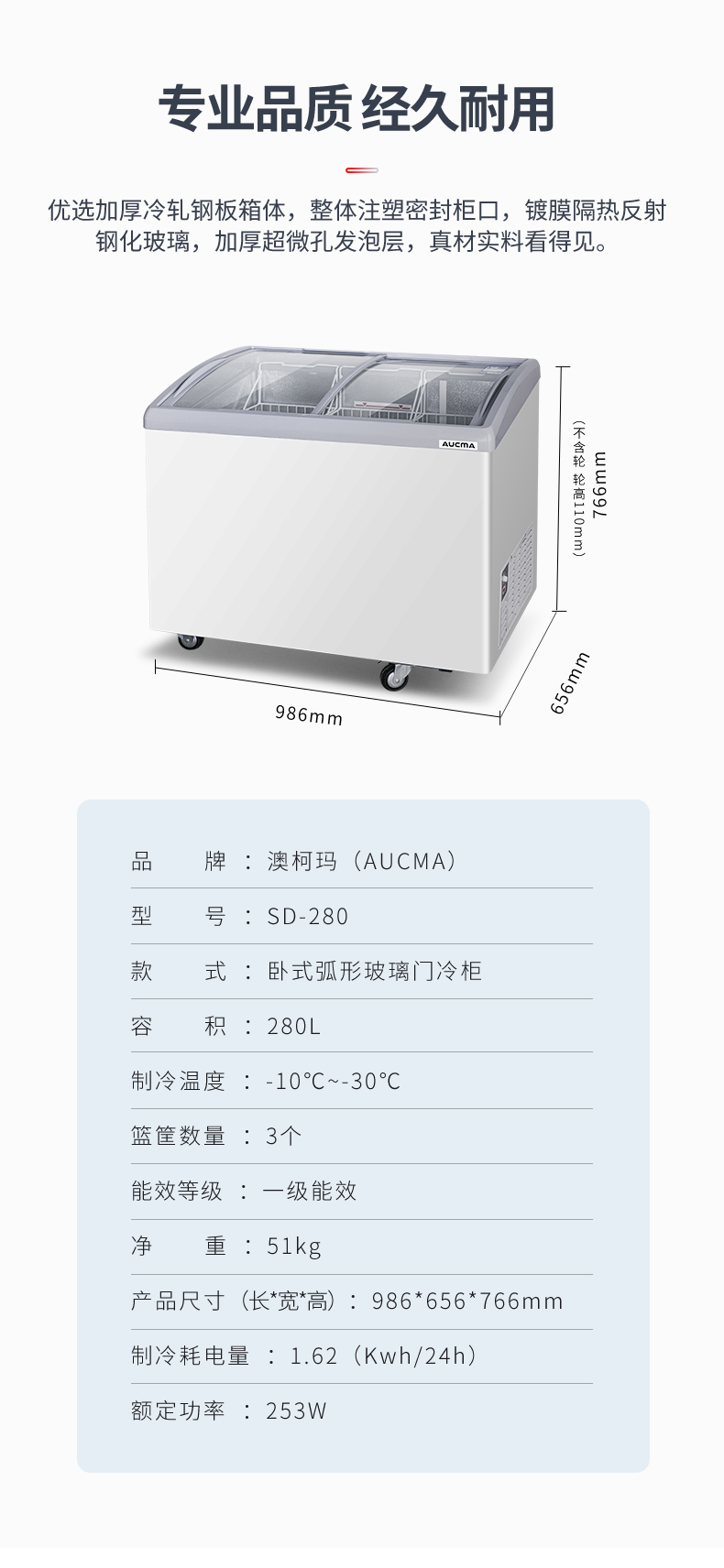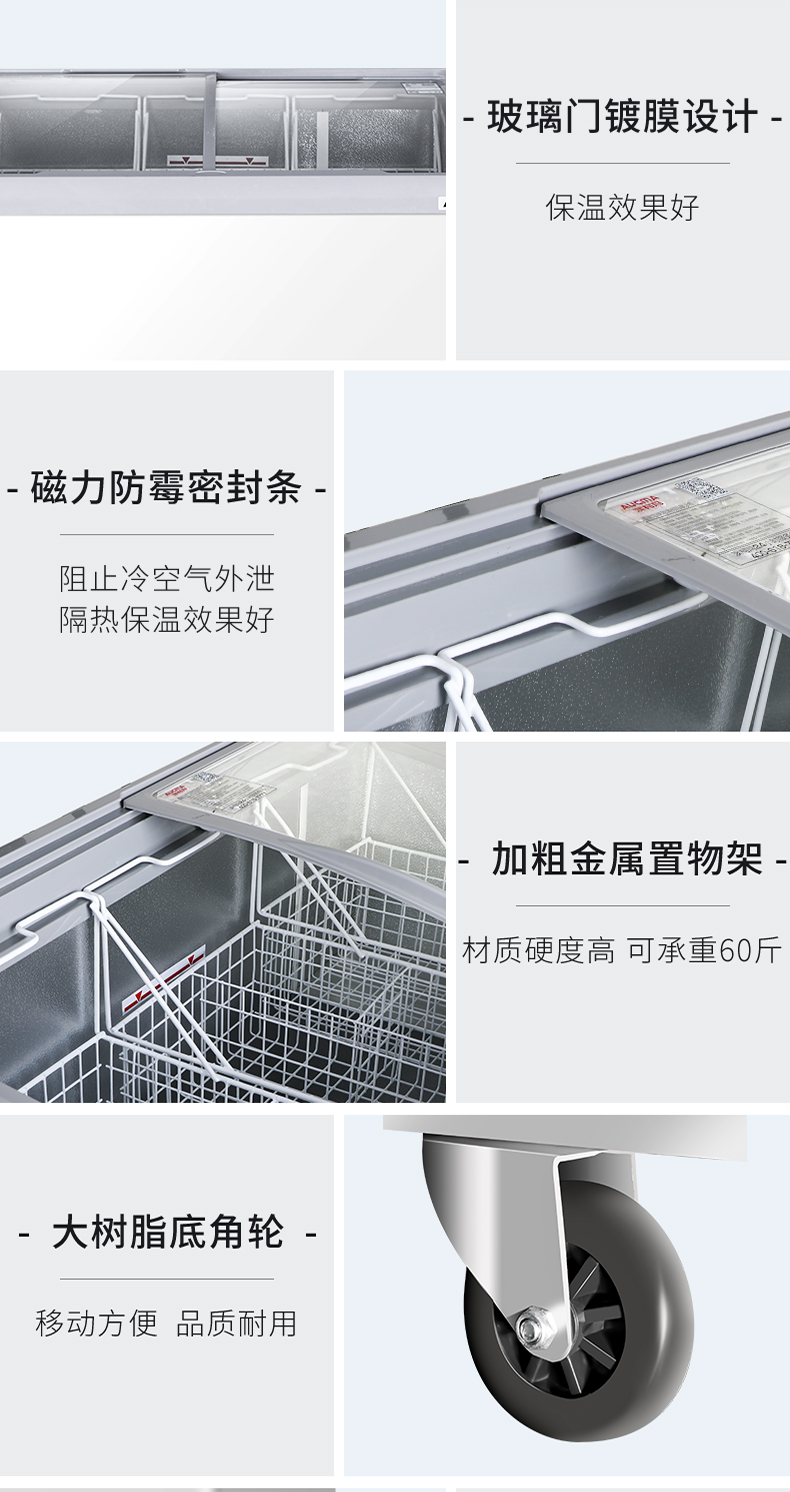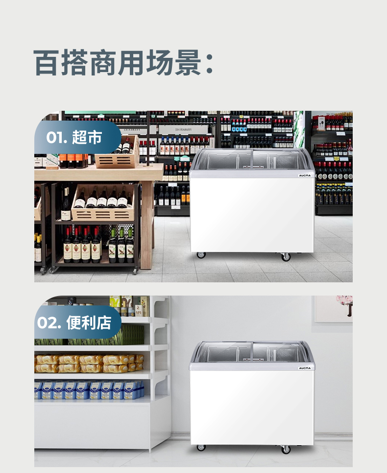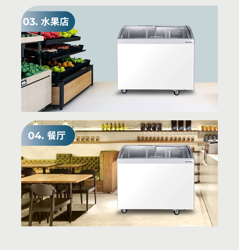 澳柯玛280升雪糕柜超市商用冷柜冰柜岛柜冰淇淋弧形玻璃保鲜柜